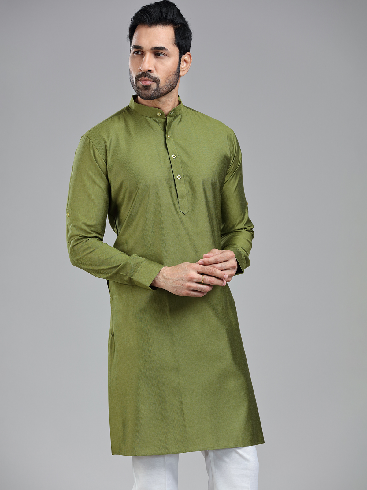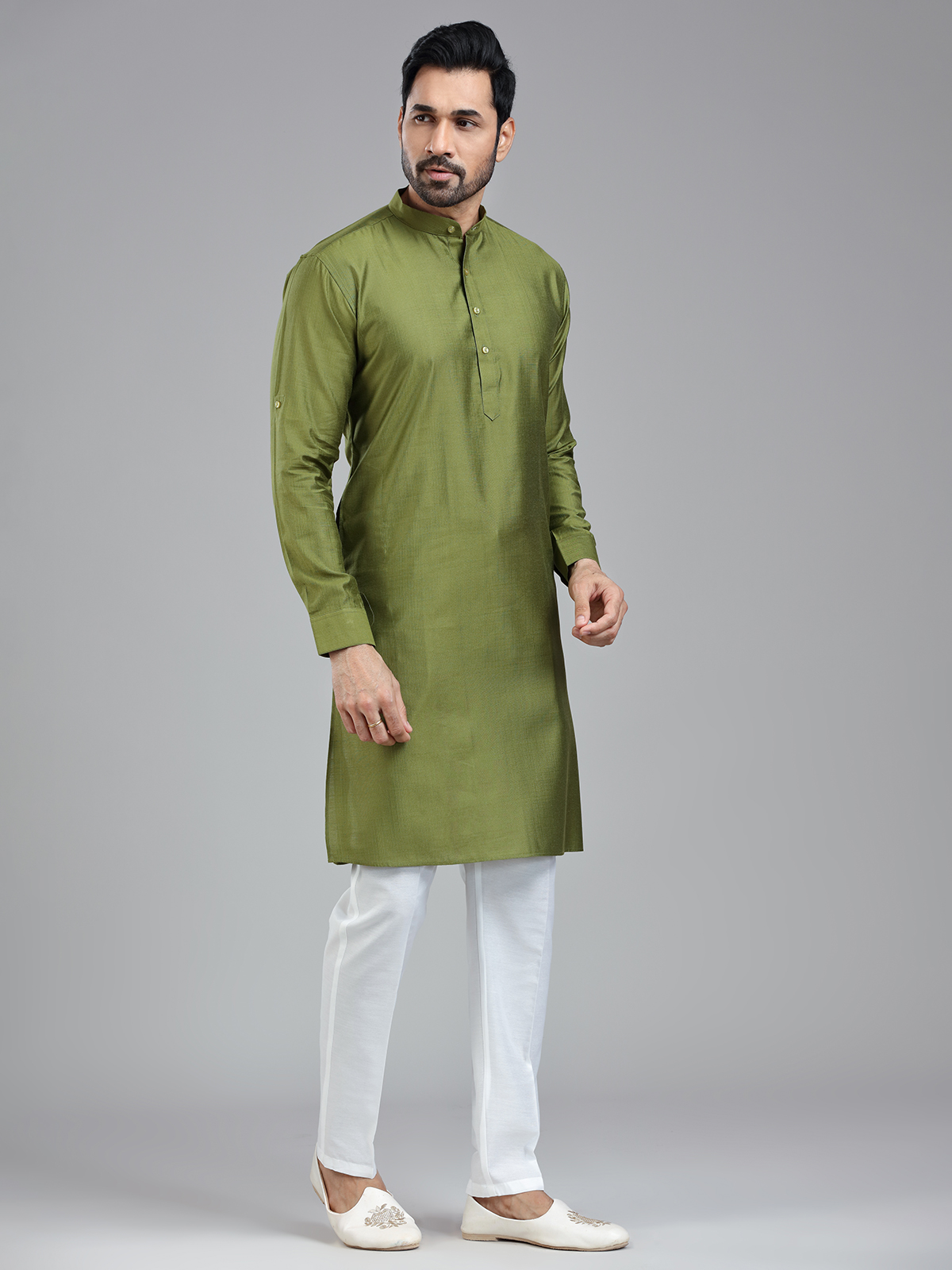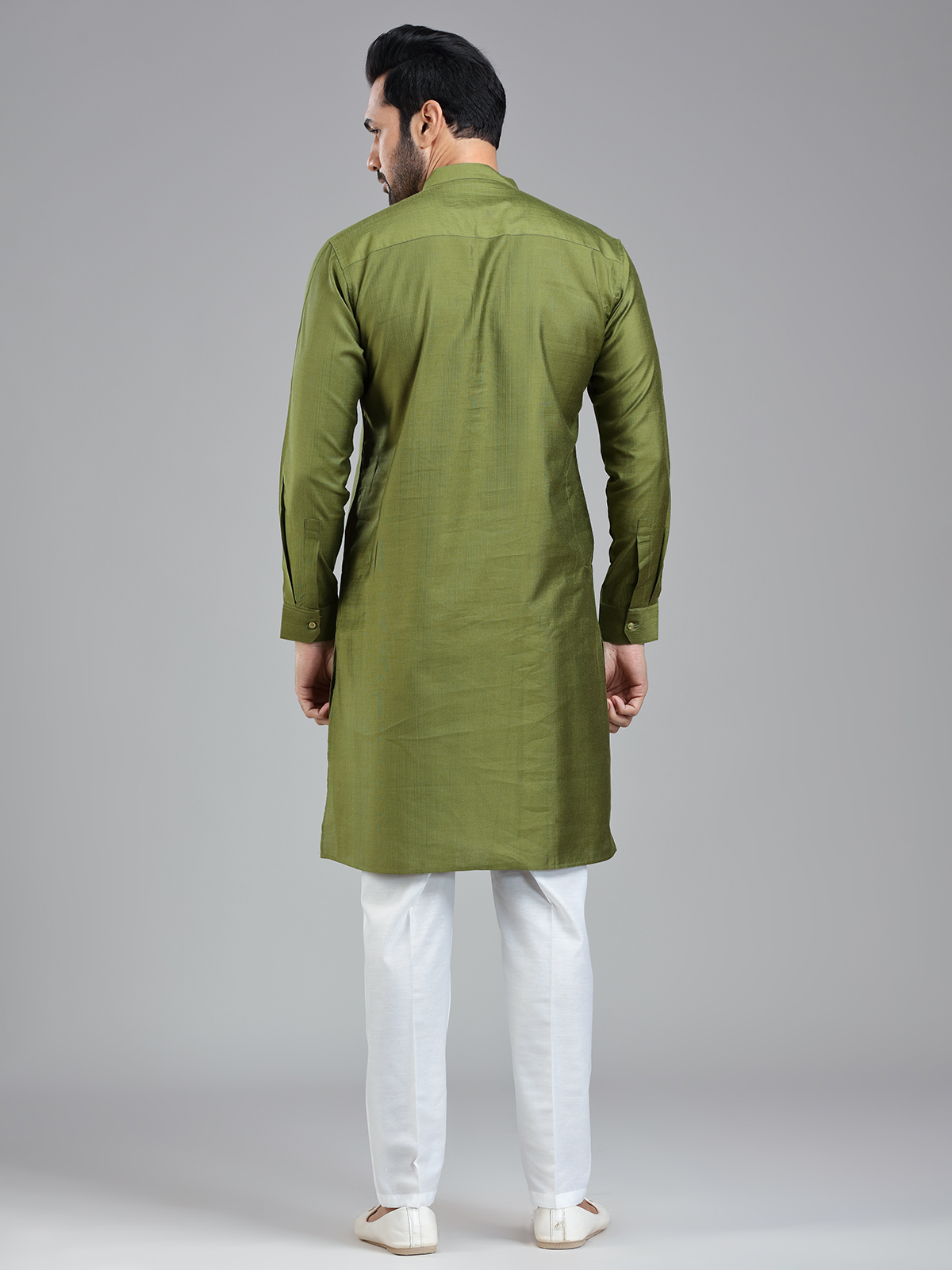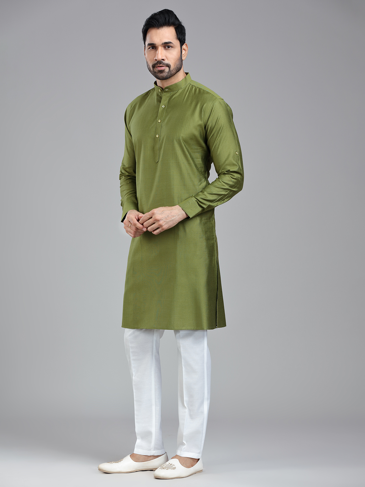 Wondeful Dark Olive Simple Festive Wear Kurta With Pajama For Men