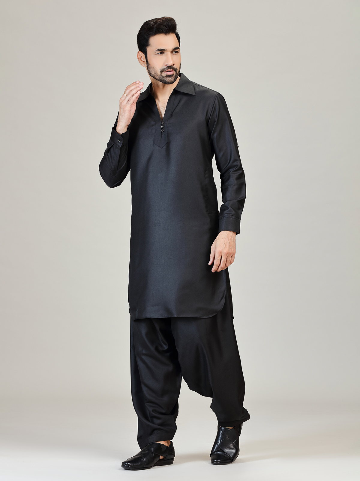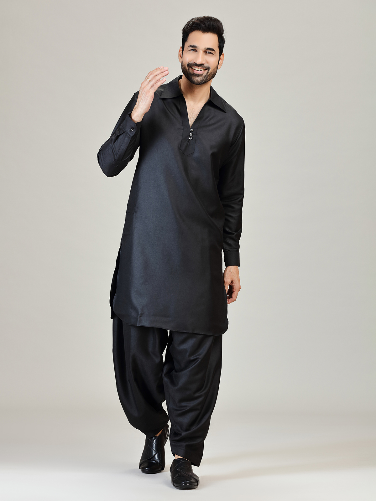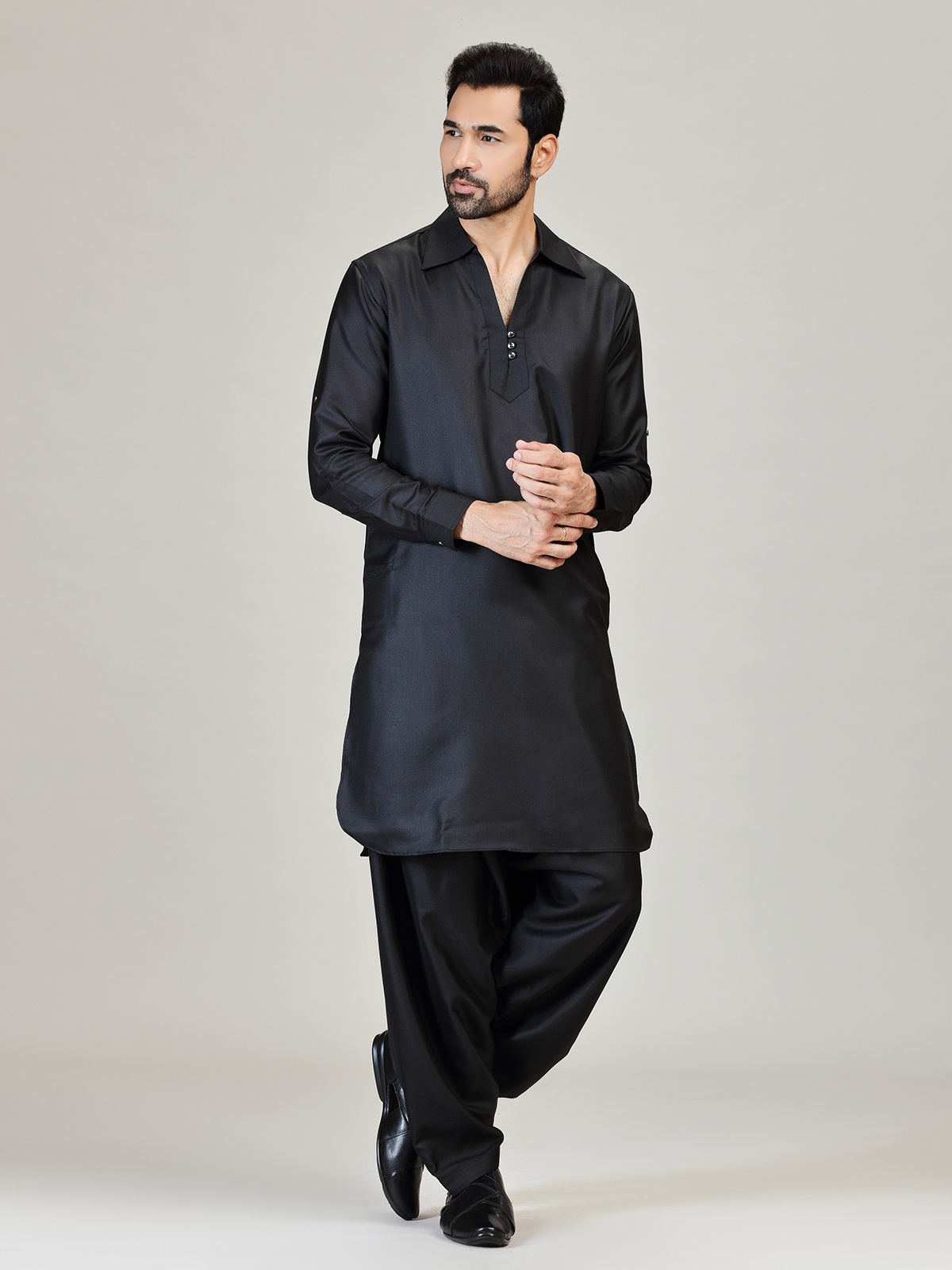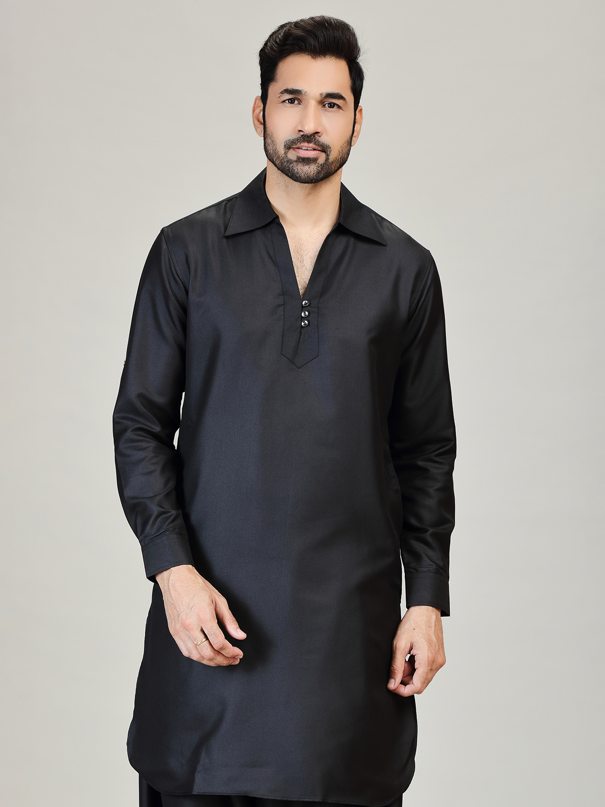 Black Plain Pathani Kurta Suit For Men