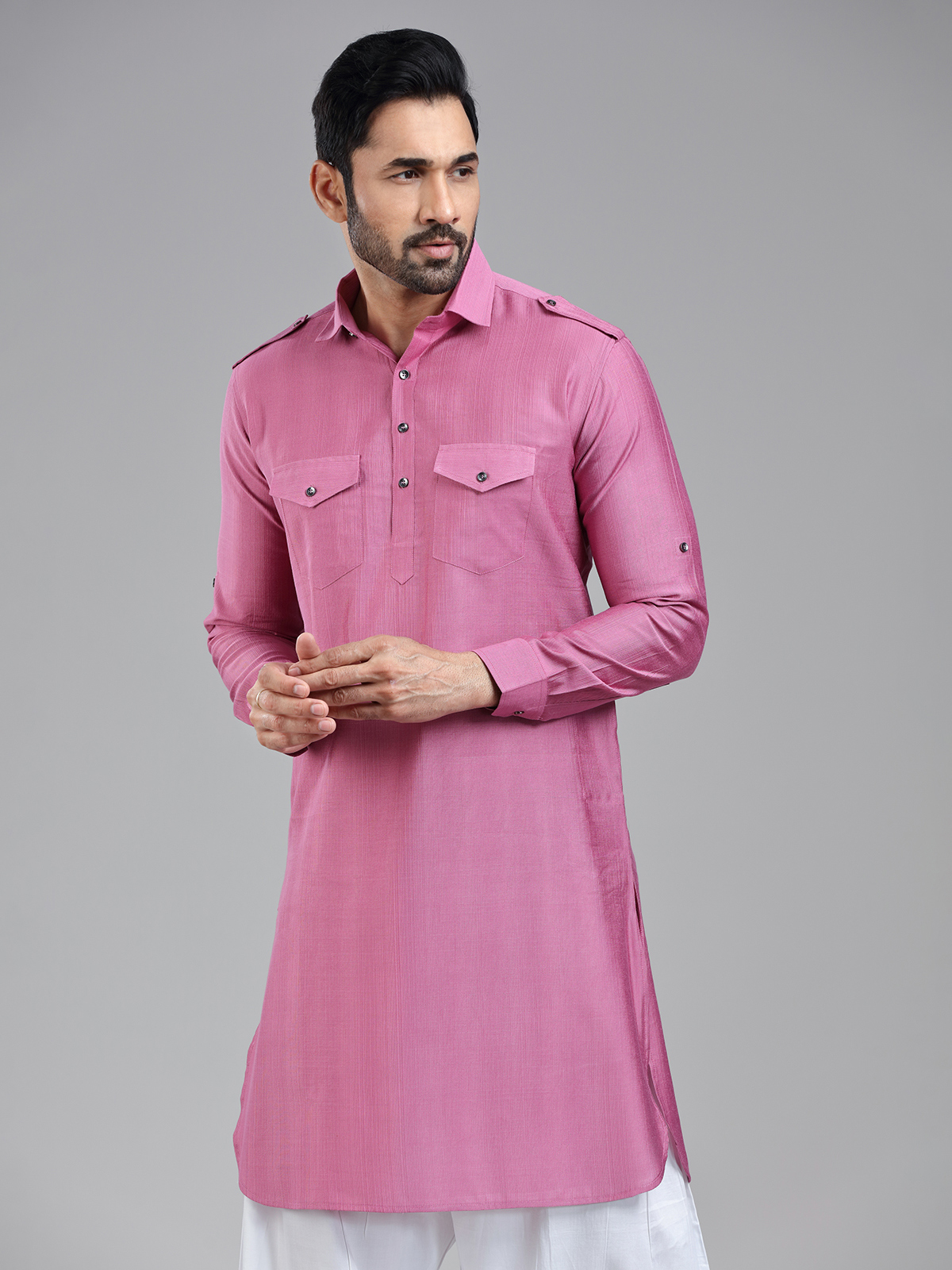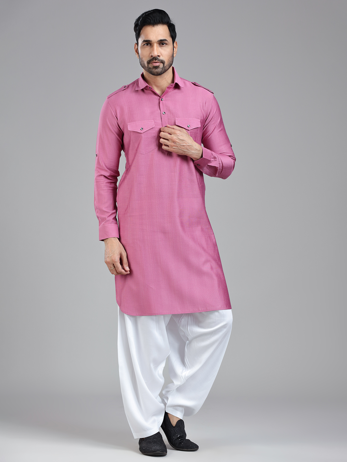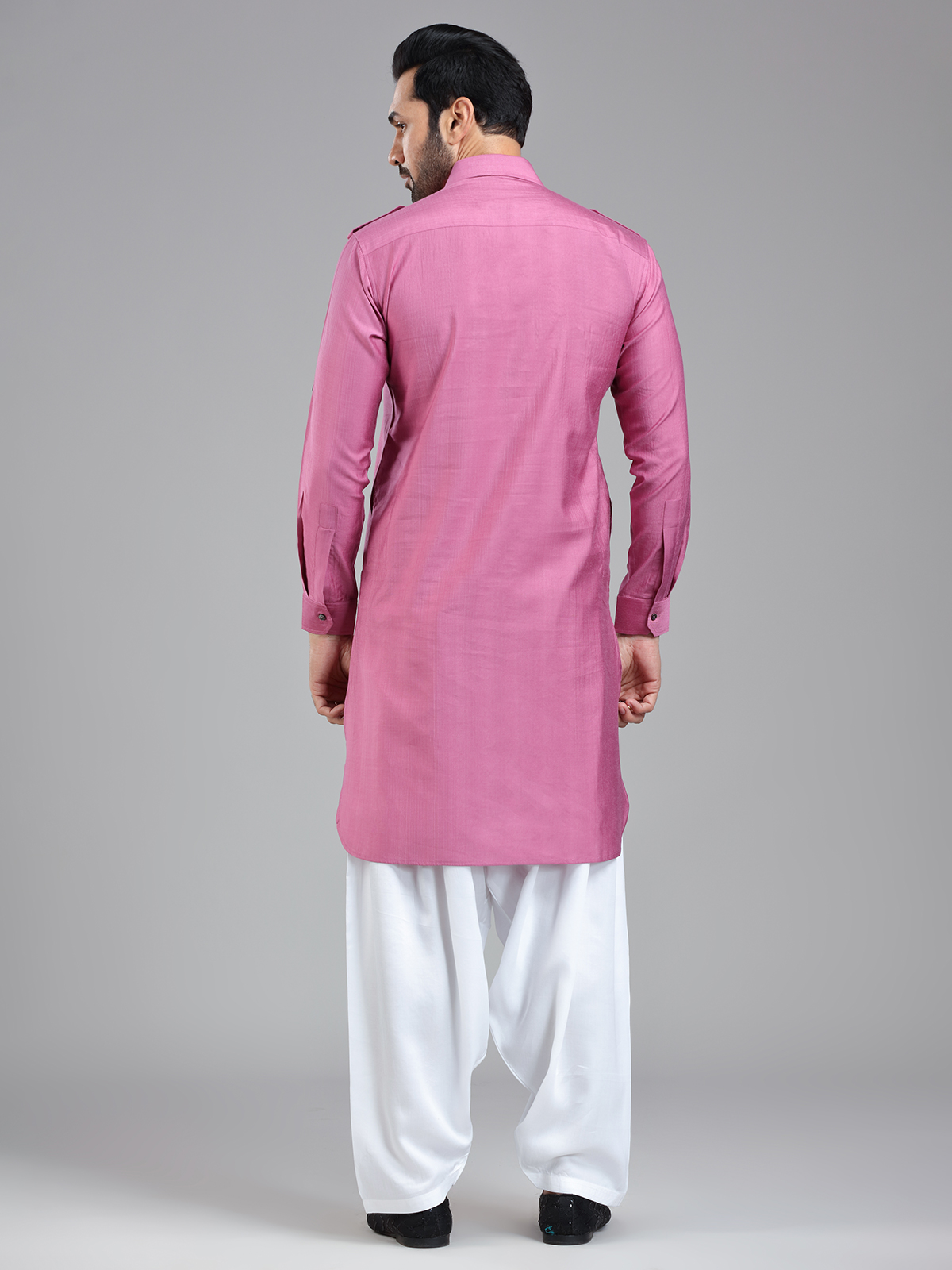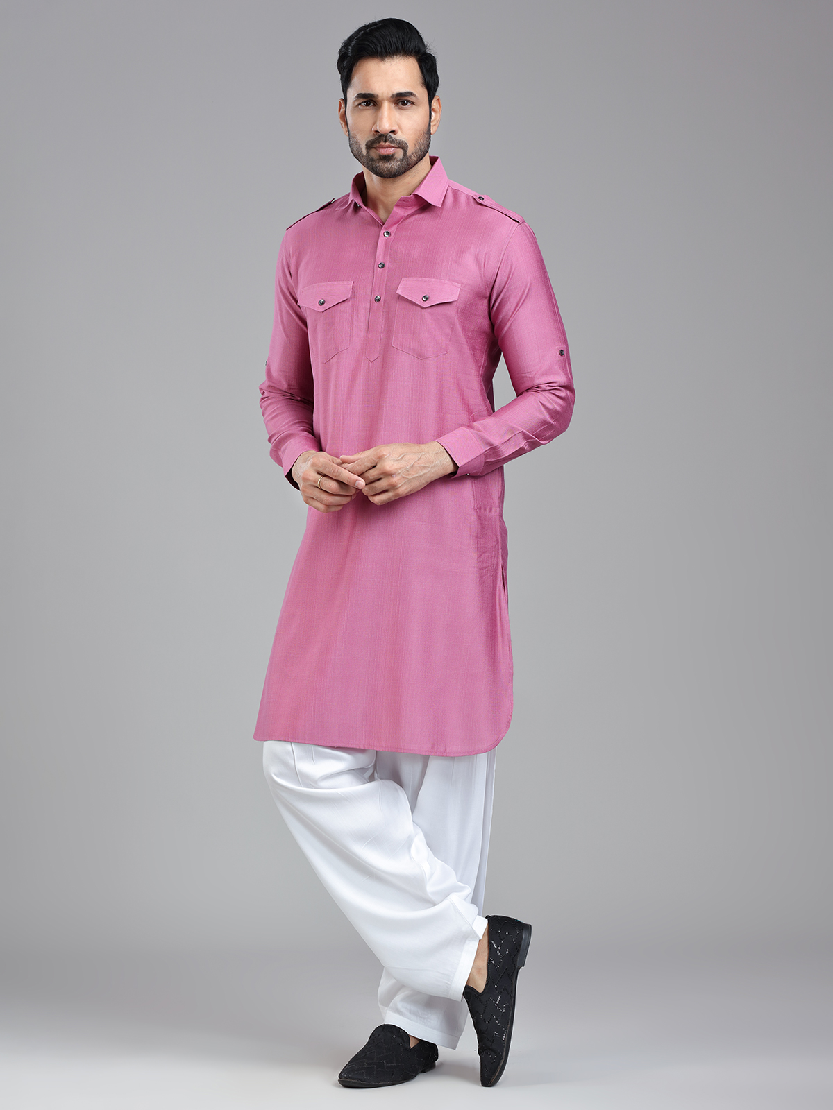Bold And Refined Dark Pink Pathani Kurta Set For Men
