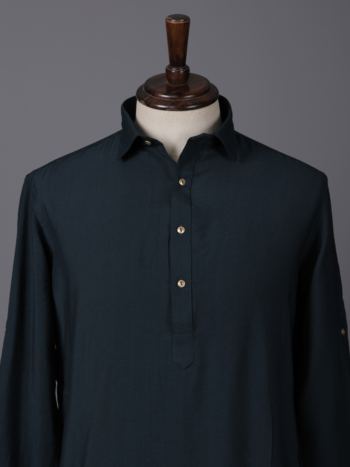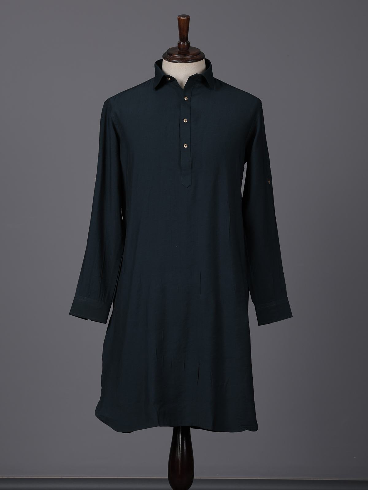 Rich dark green tones define the elegance of this silk pathani suit crafted for festive and eid celebrations. Designed in a solid pattern. It reflects timeless simplicity with a refined appeal. The collar neckline and full sleeves enhance its structured look. While the smooth silk fabric ensures comfort. Paired with a traditional salwar. This ensemble creates a graceful and sophisticated ethnic statement.