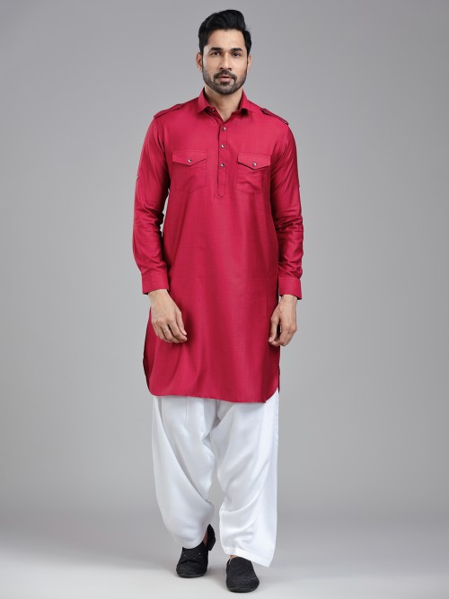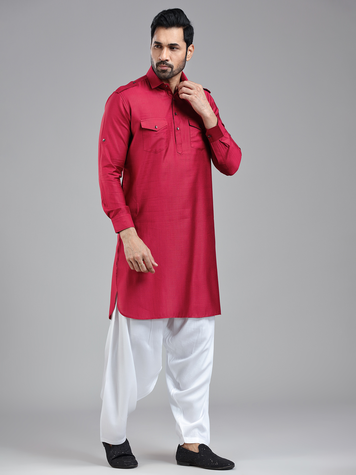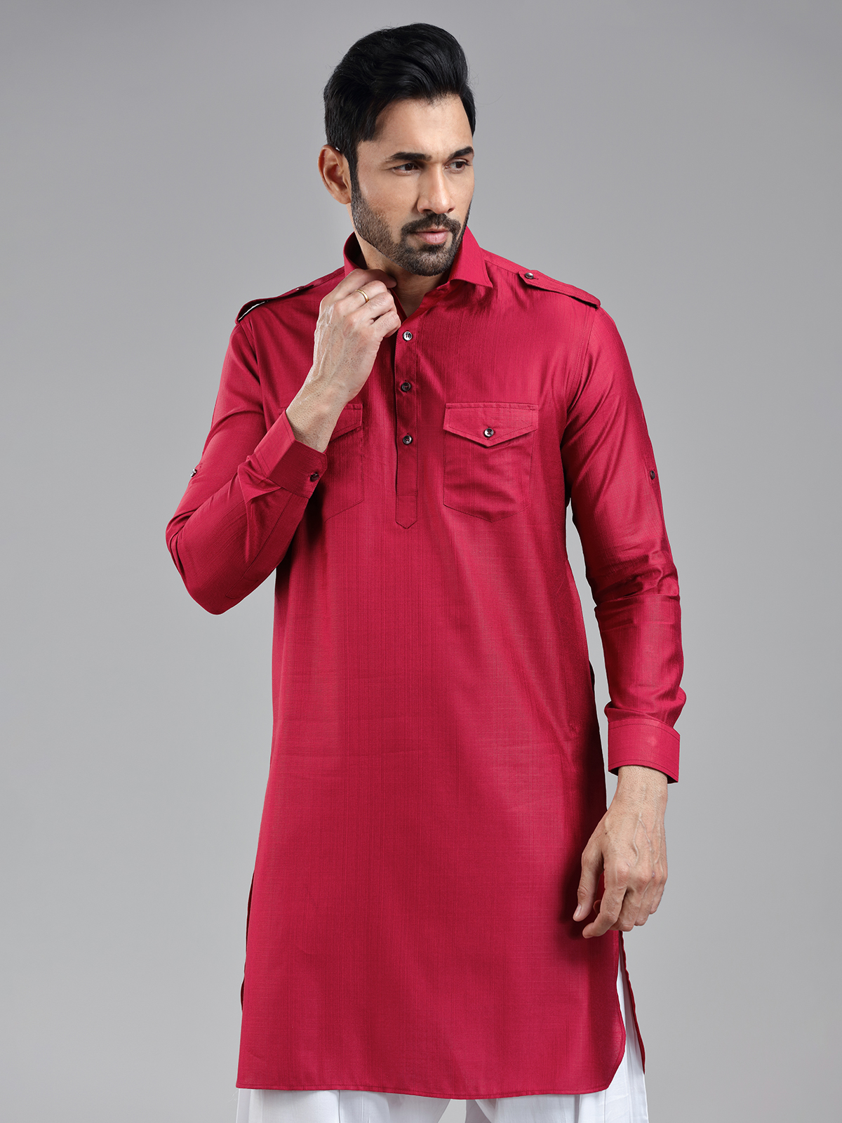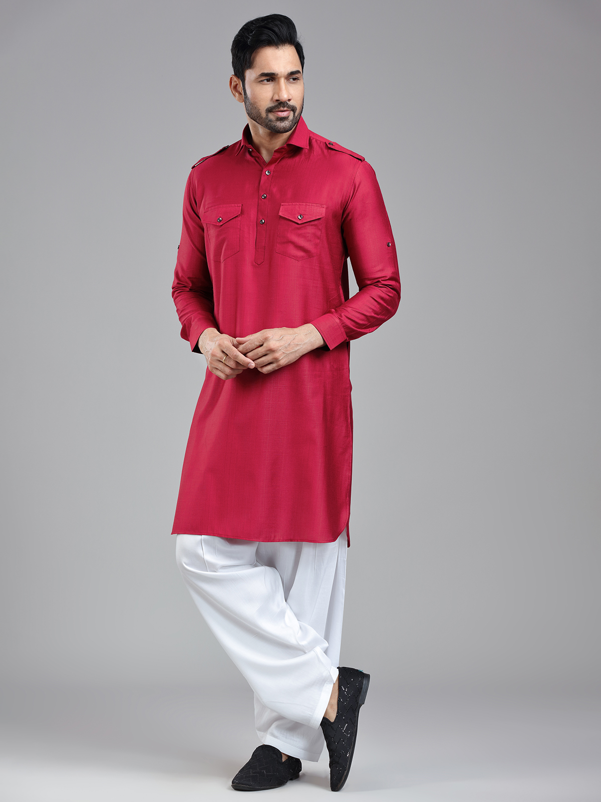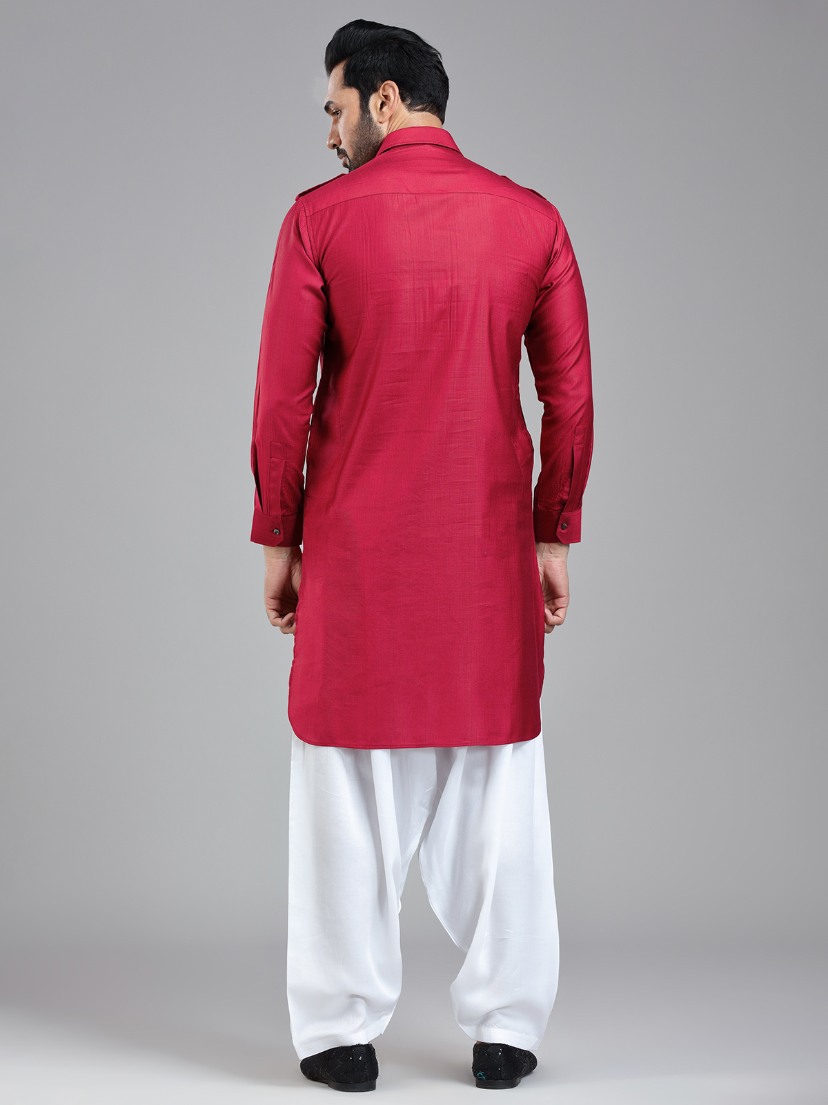 Rich Dark Red Pathani Kurta Suit For An Elegant Statement
