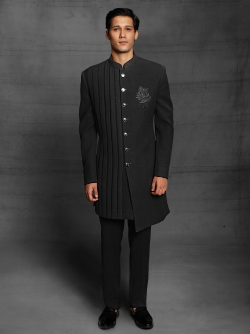 Black Terry Rayon Indowestern For Weddings