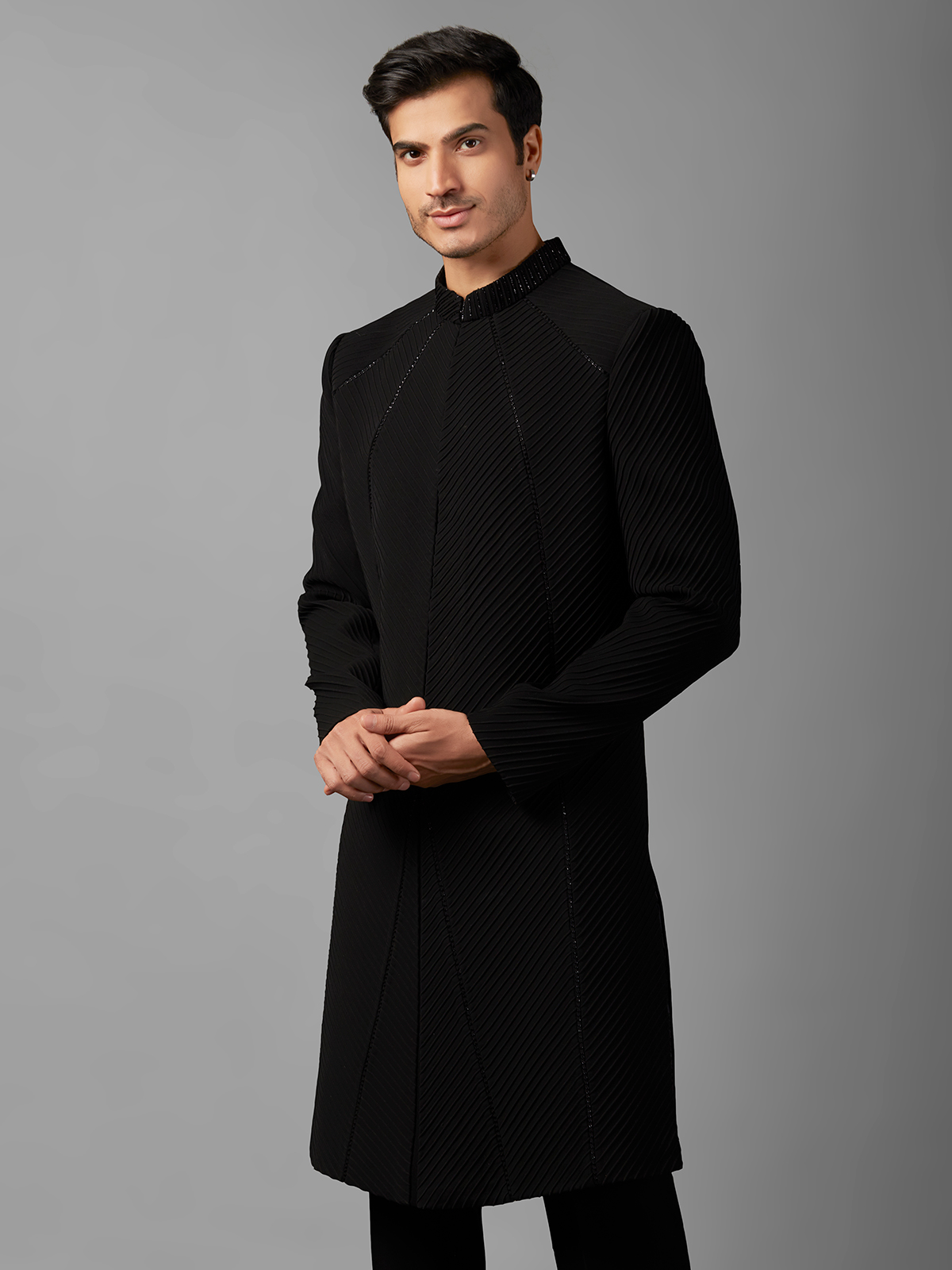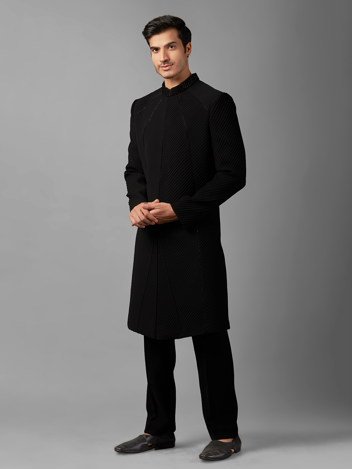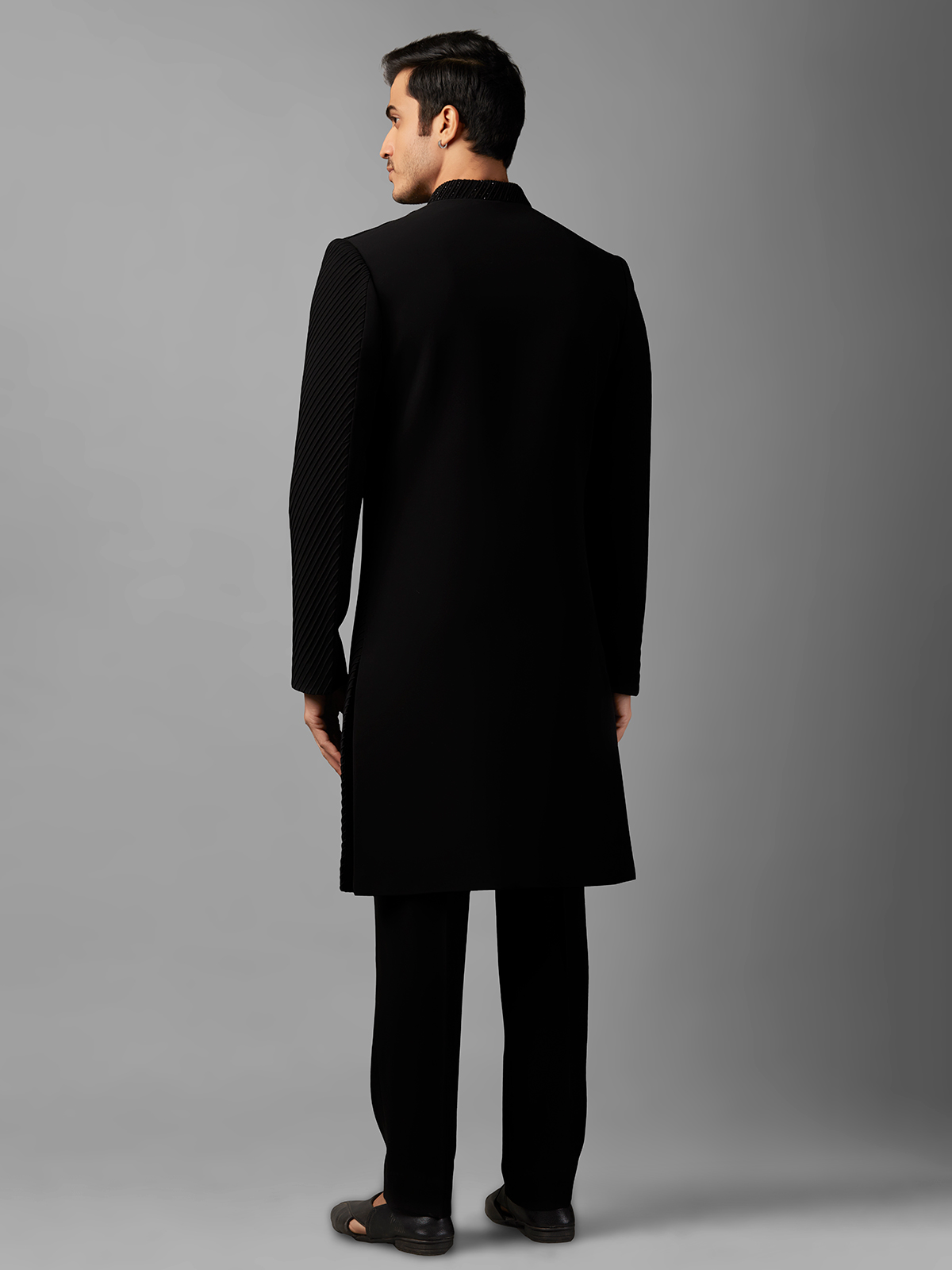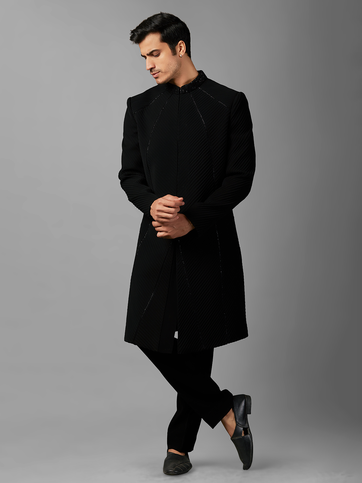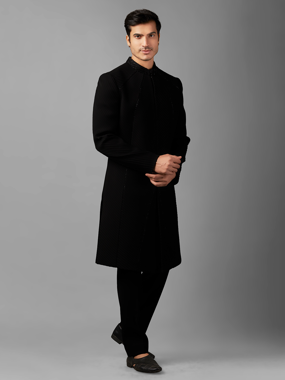 Black Texture Terry Rayon Indowestern