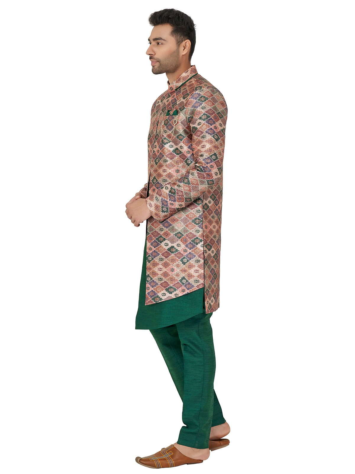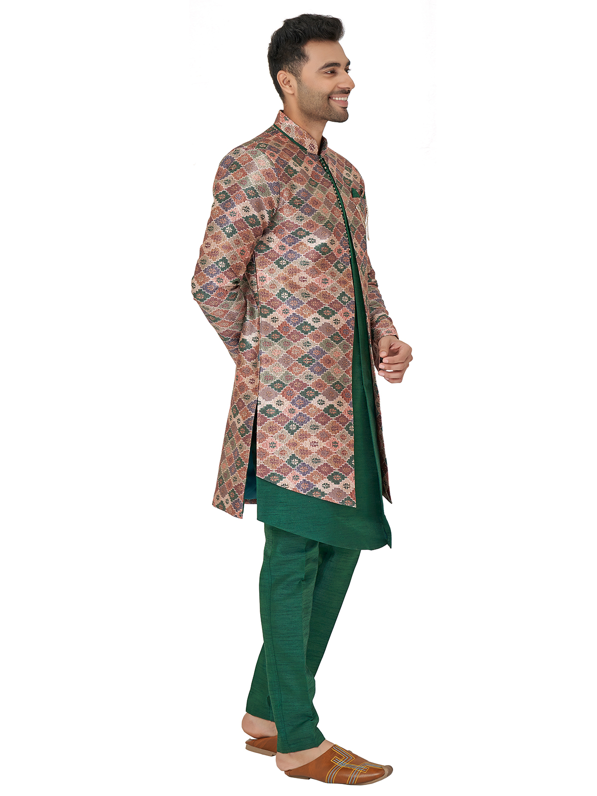 Bottle Green Silk Indowestern For Weddings