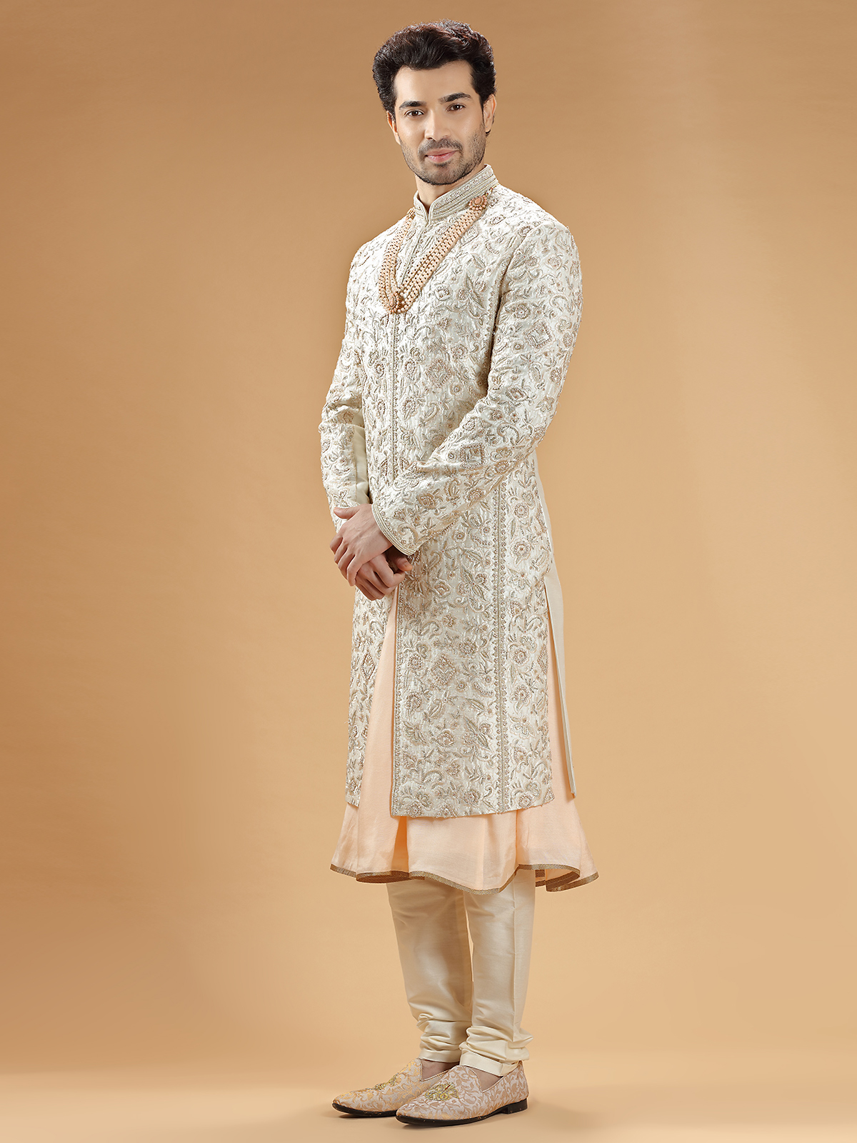 Cream Raw Silk Groom Stunning Sherwani