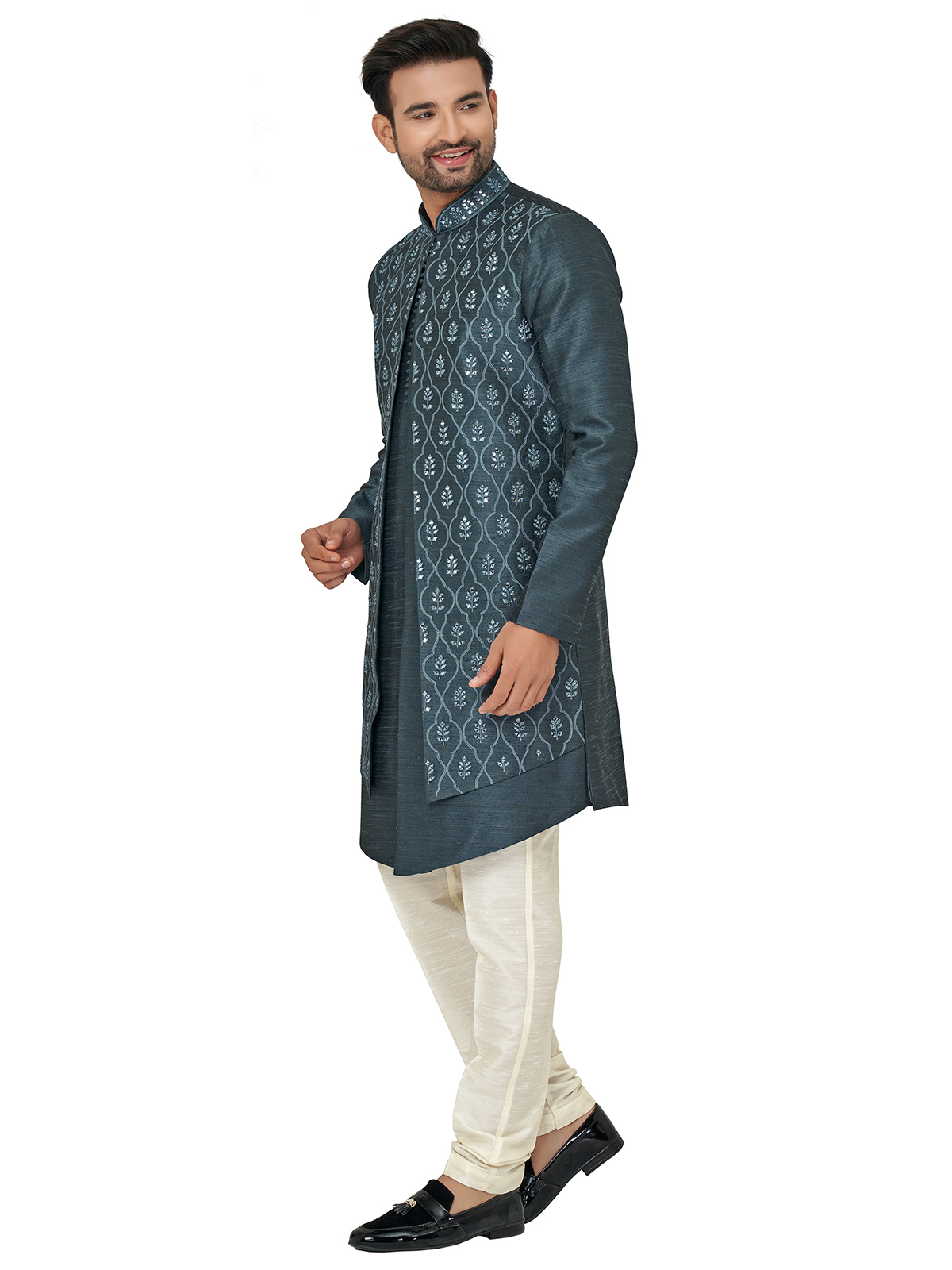 Dark Grey Silk Wedding Indowestern