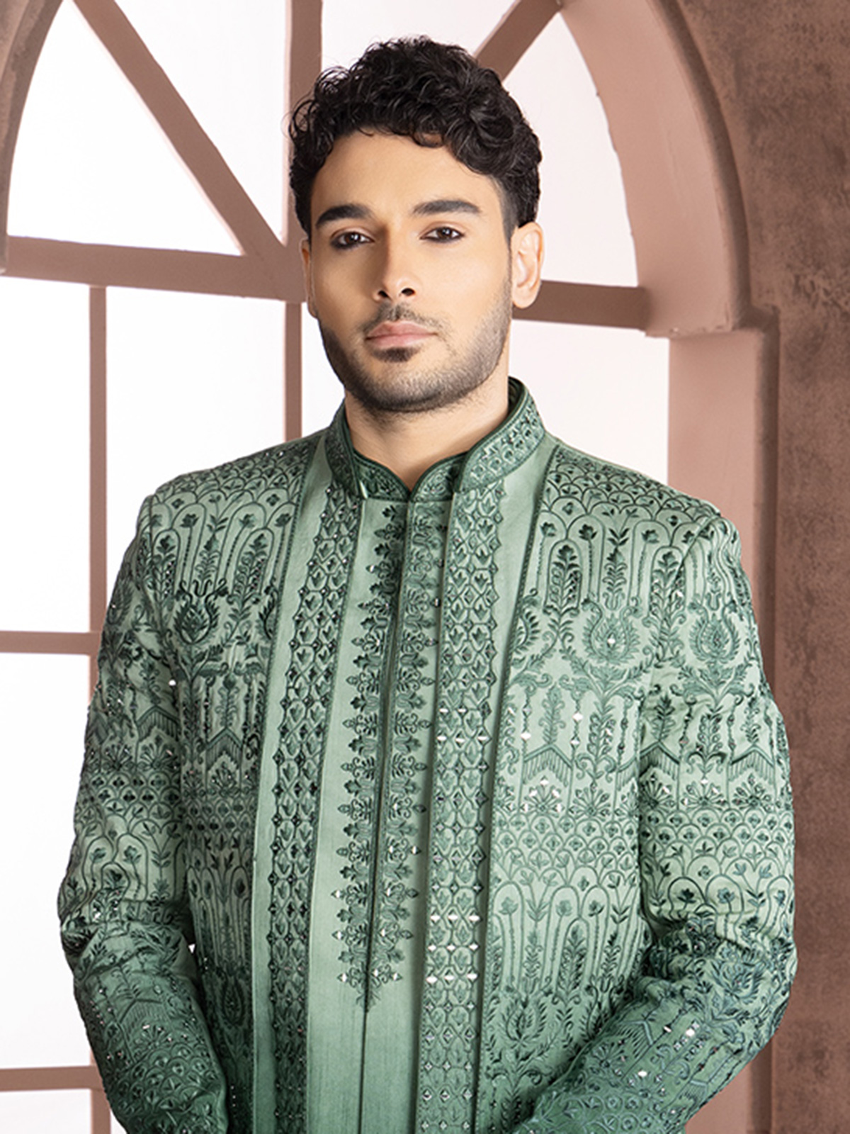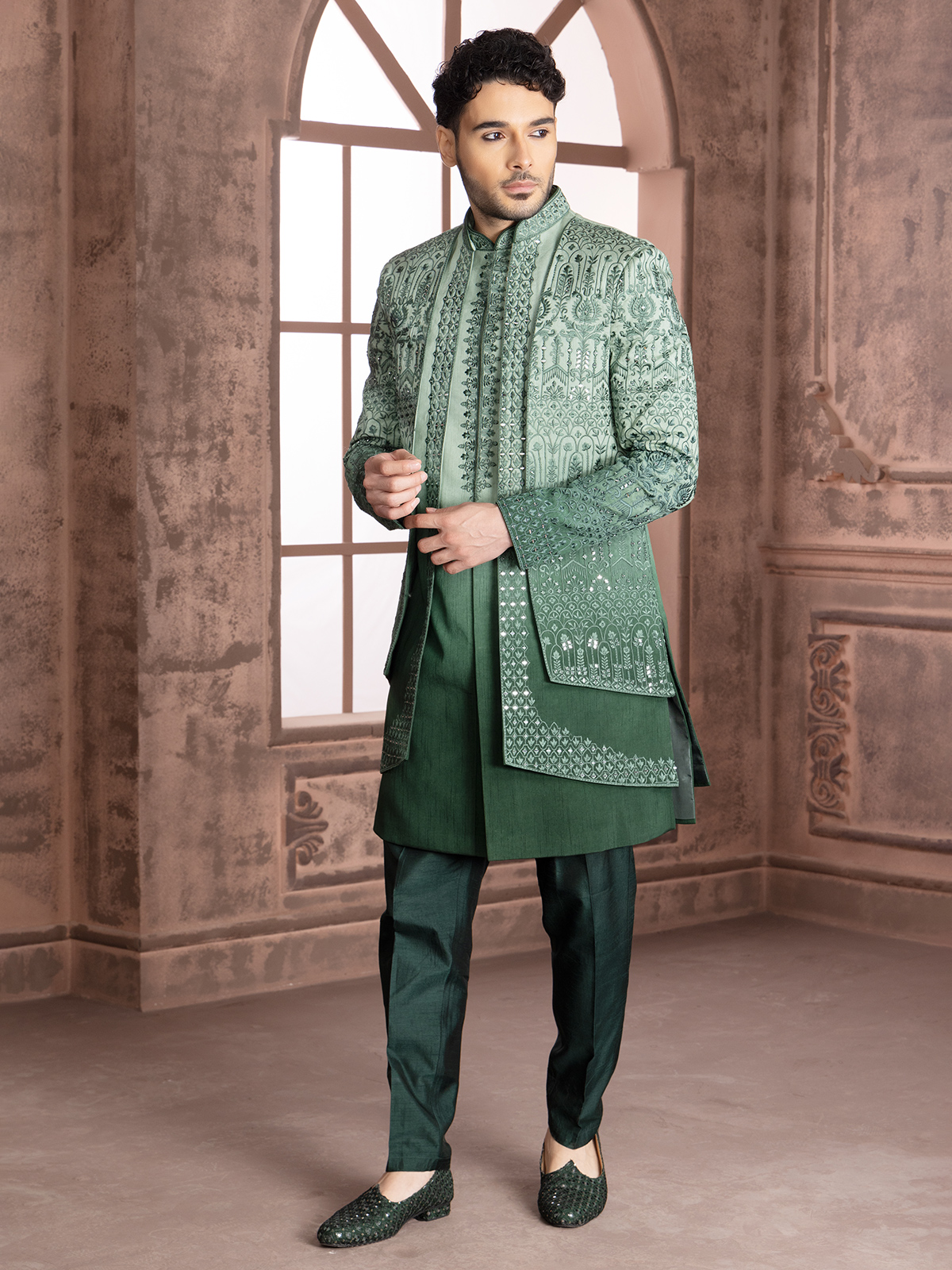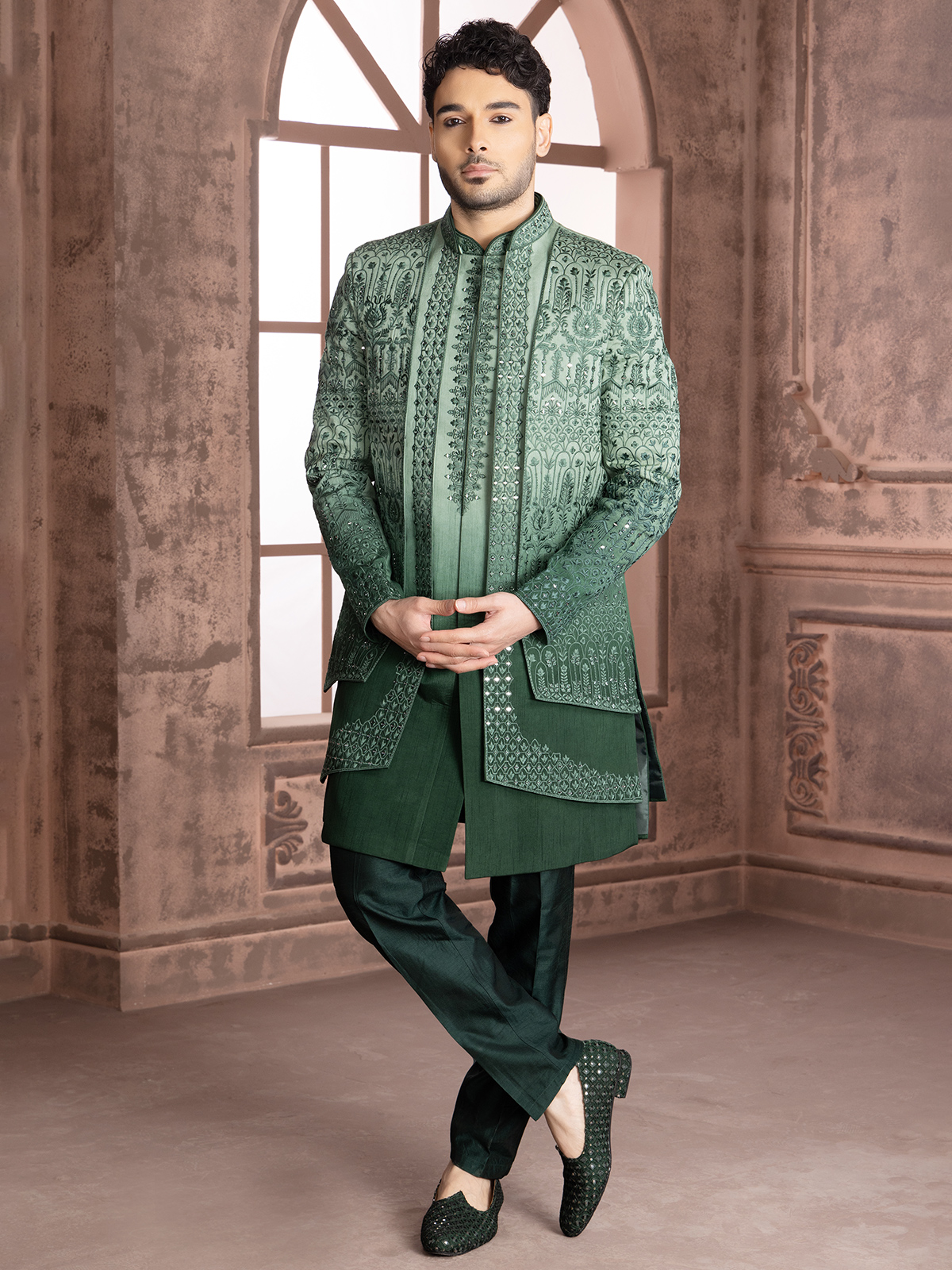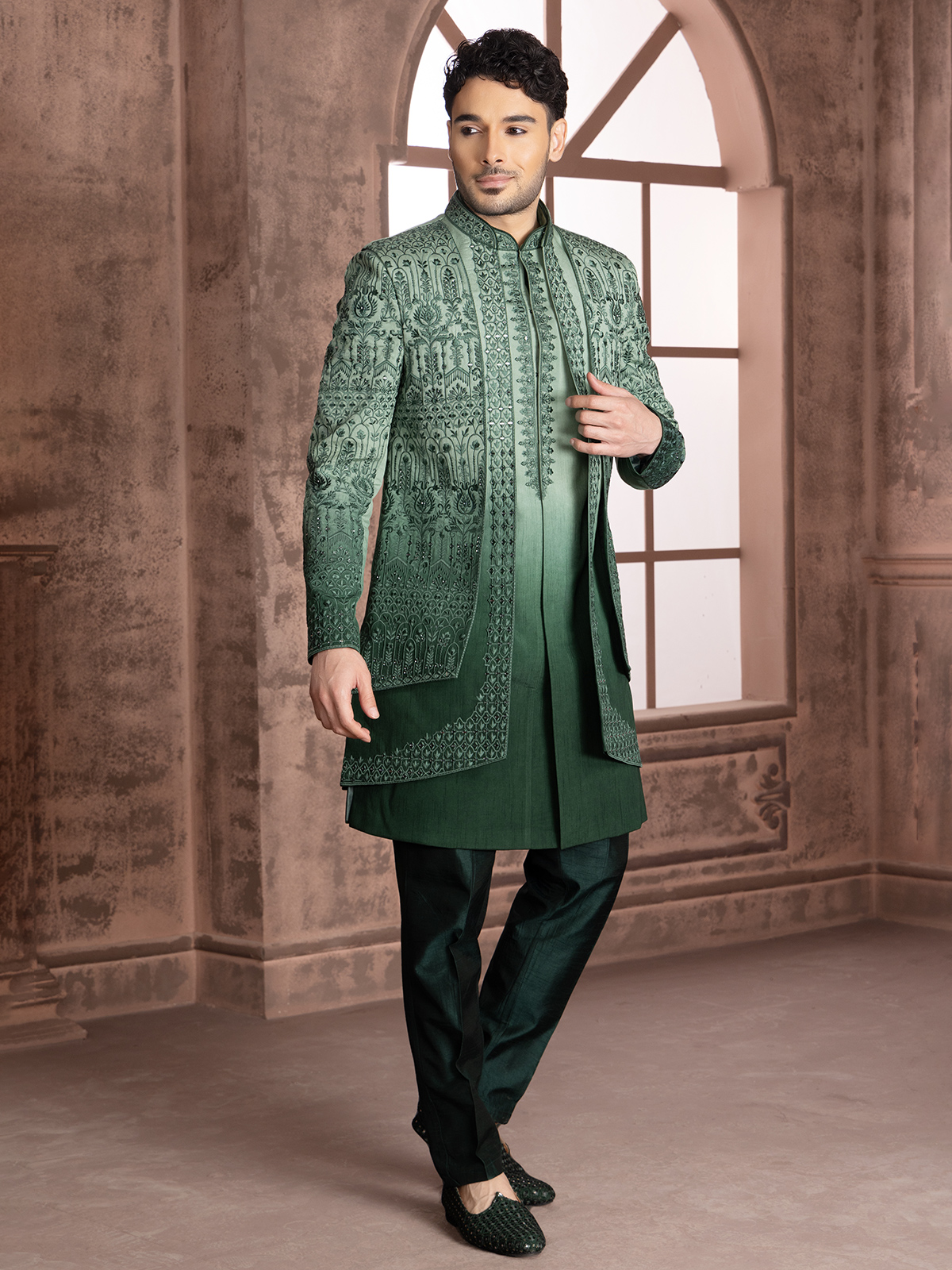 Green Shded Silk Indowestern