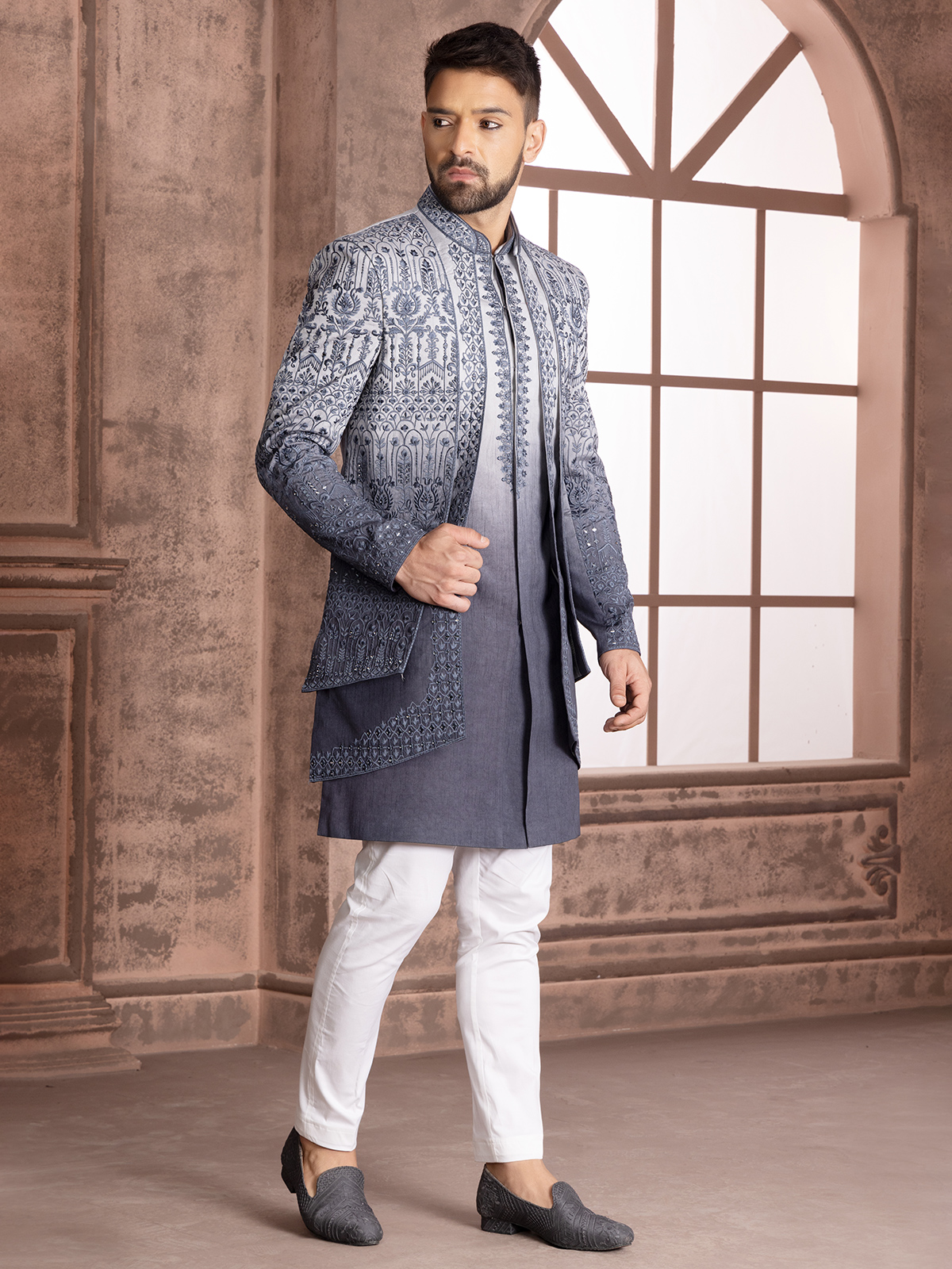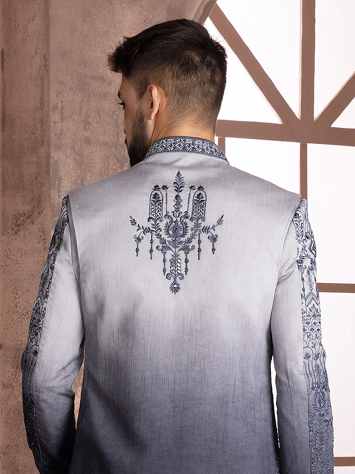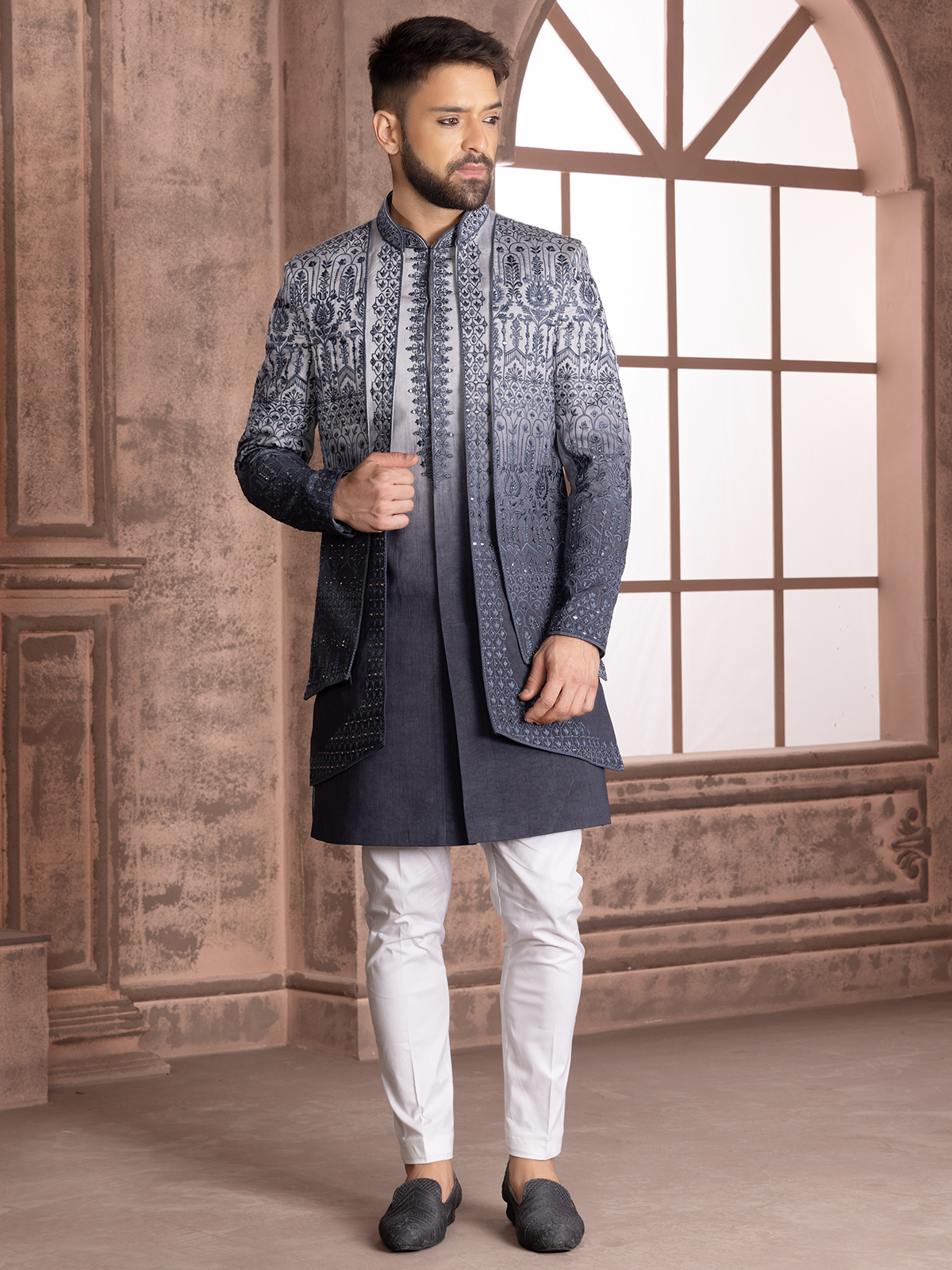 Grey Shaded Silk Wedding Indowestern