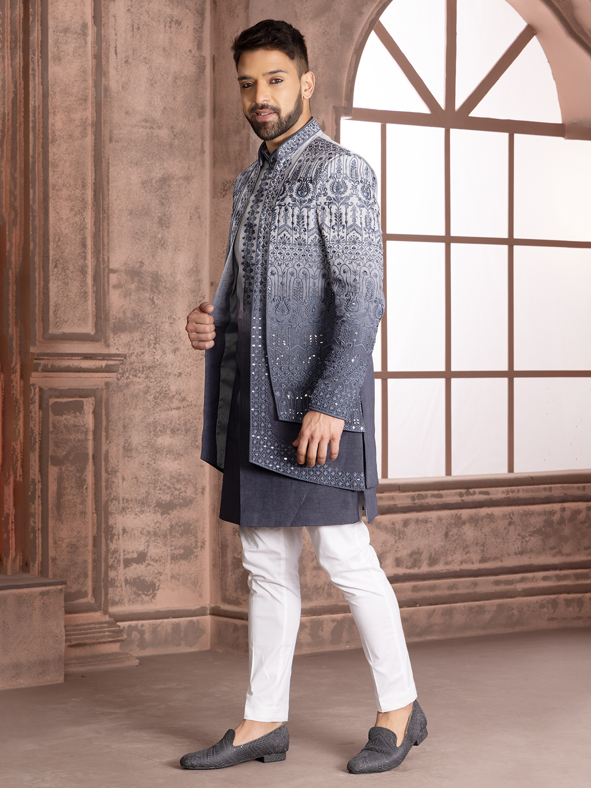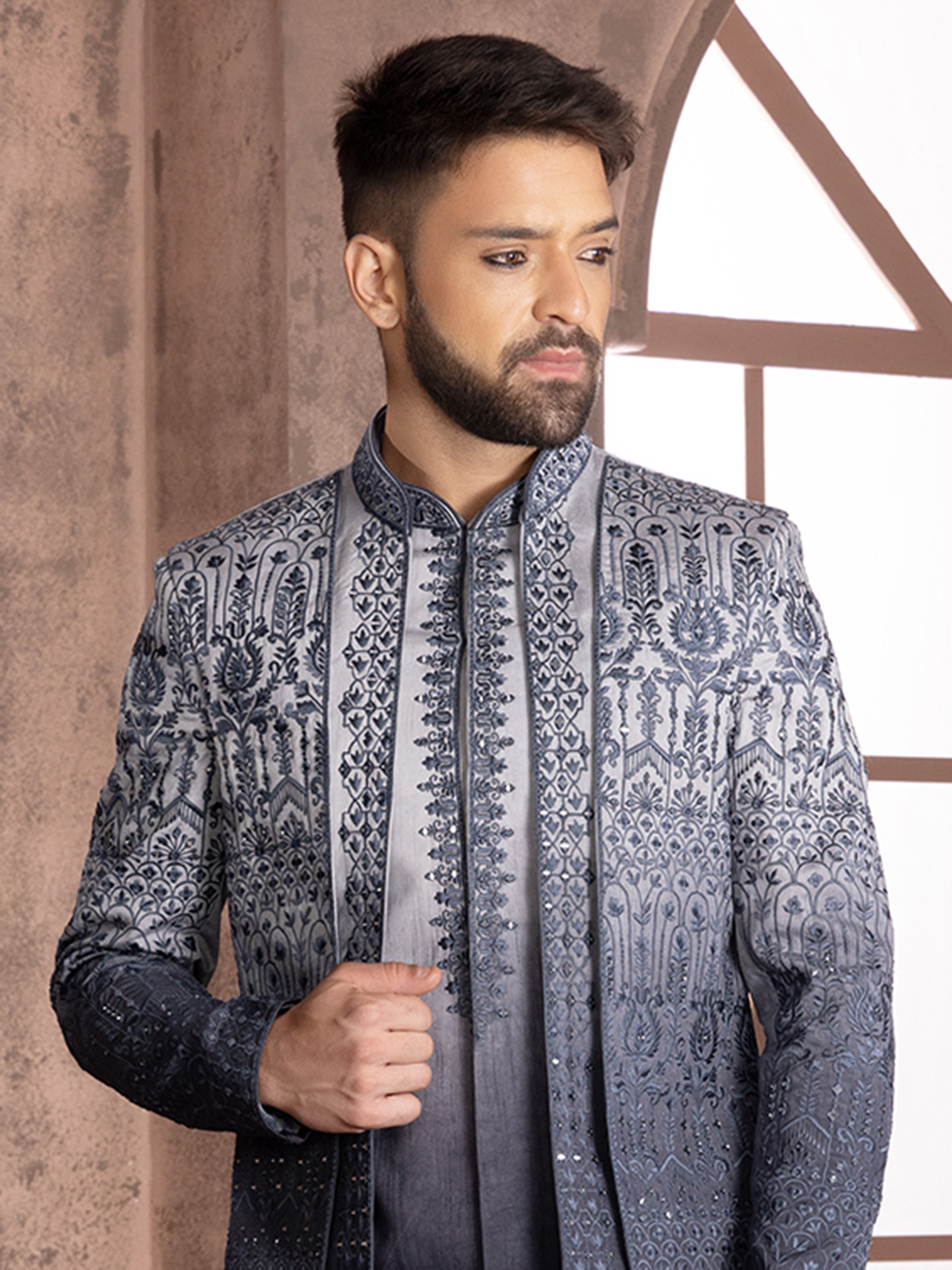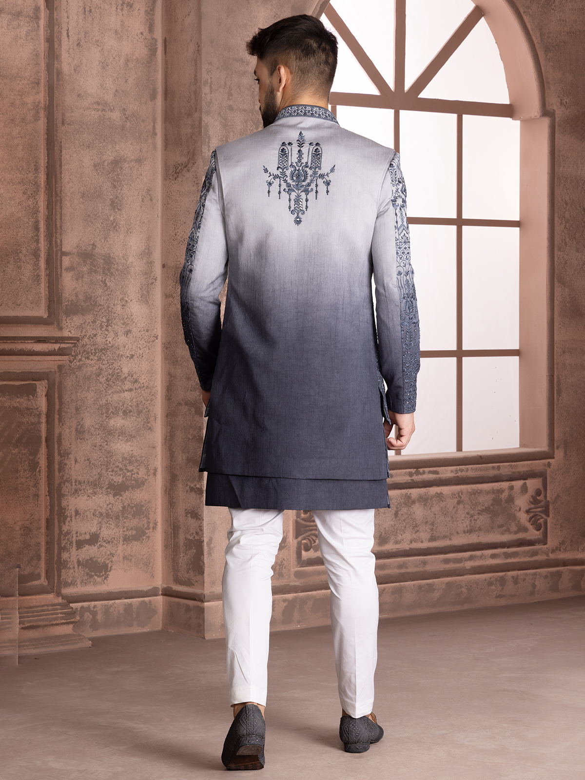 Grey Shaded Silk Wedding Indowestern