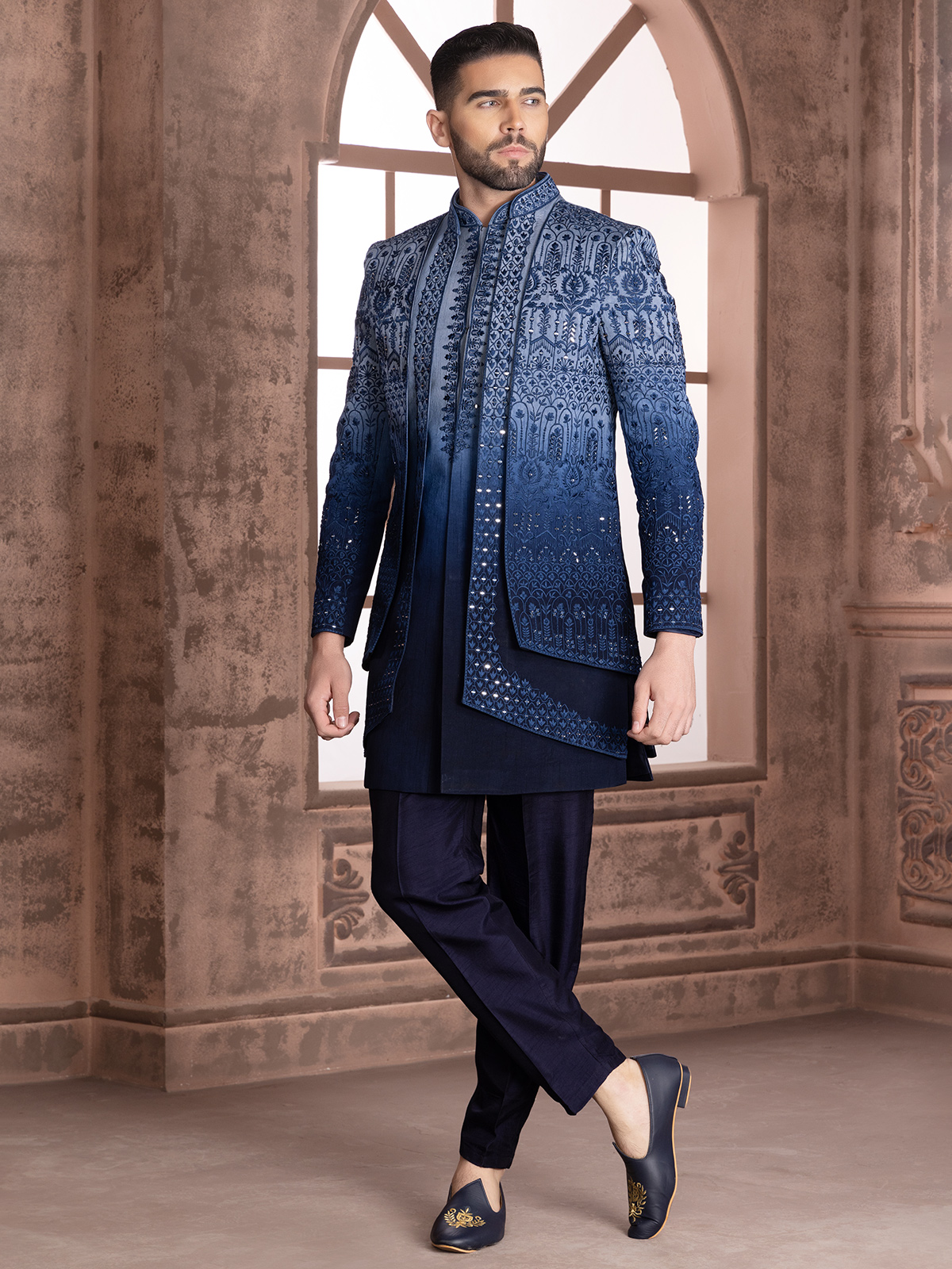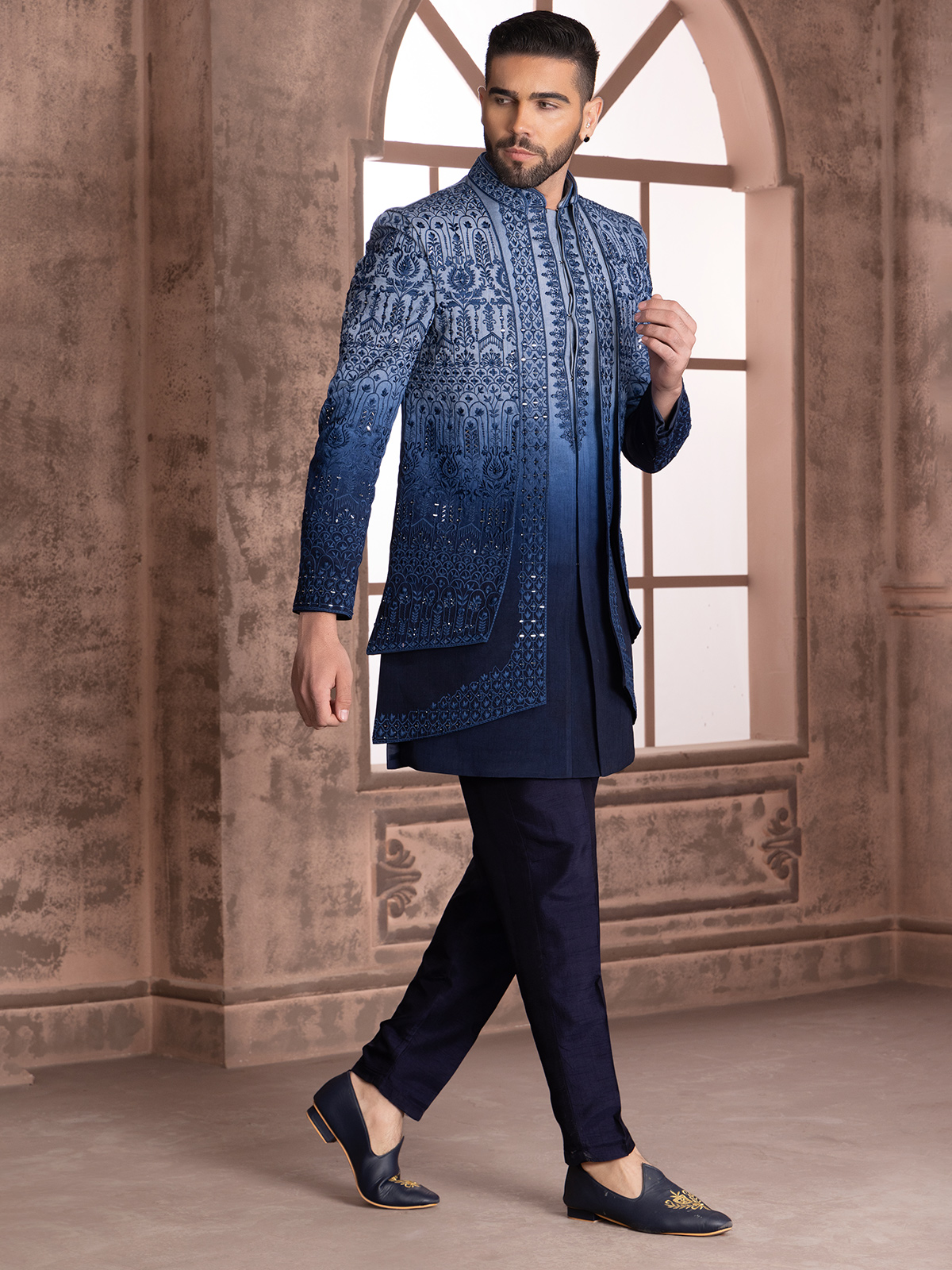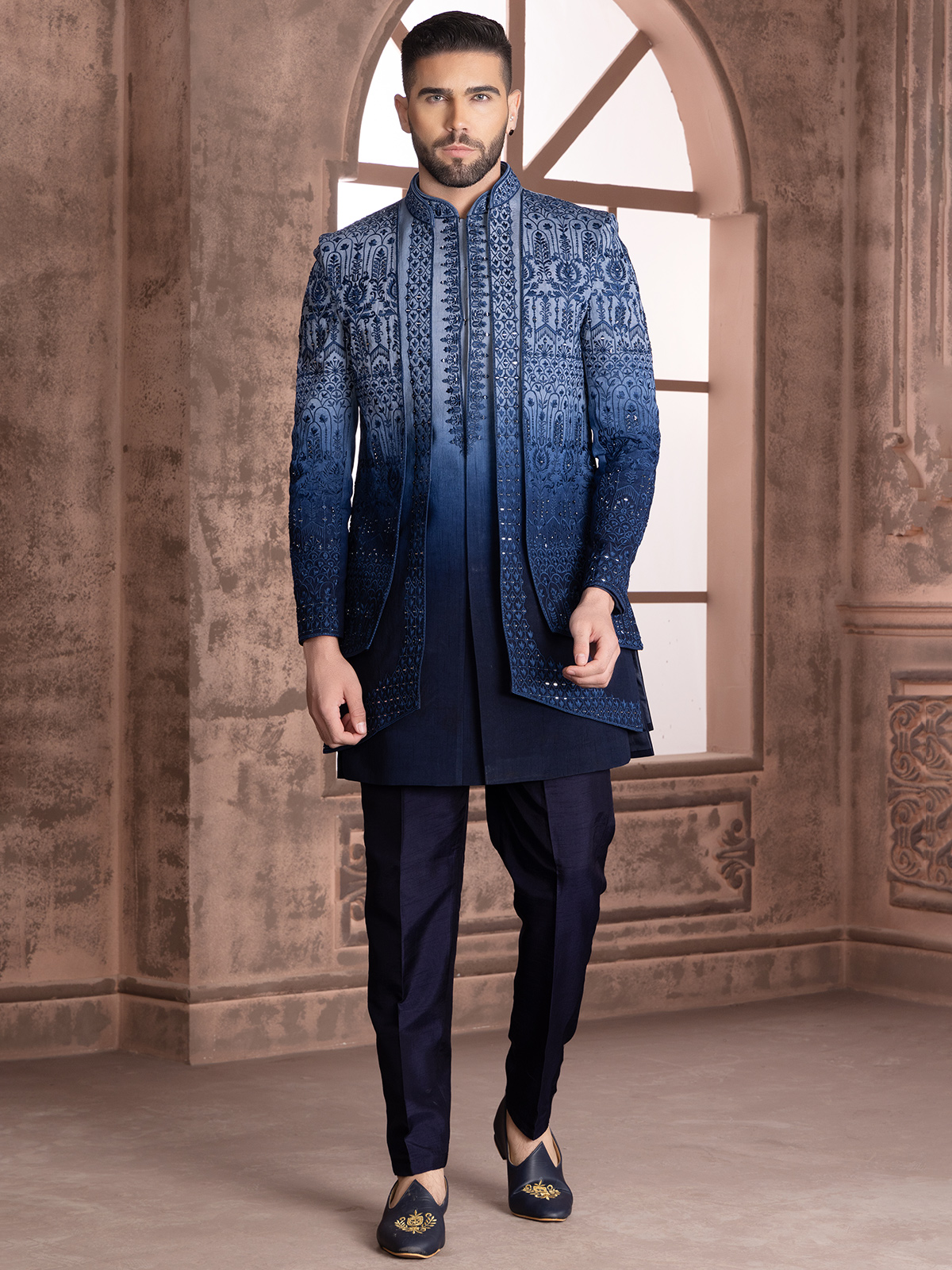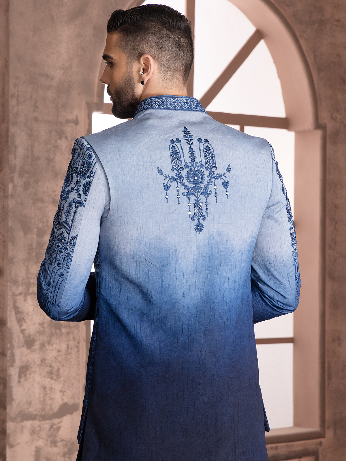 Latest Blue Shaded Silk Indowestern