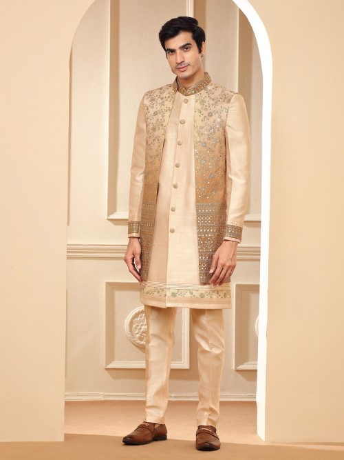 Latest Cream Indowestern In Silk