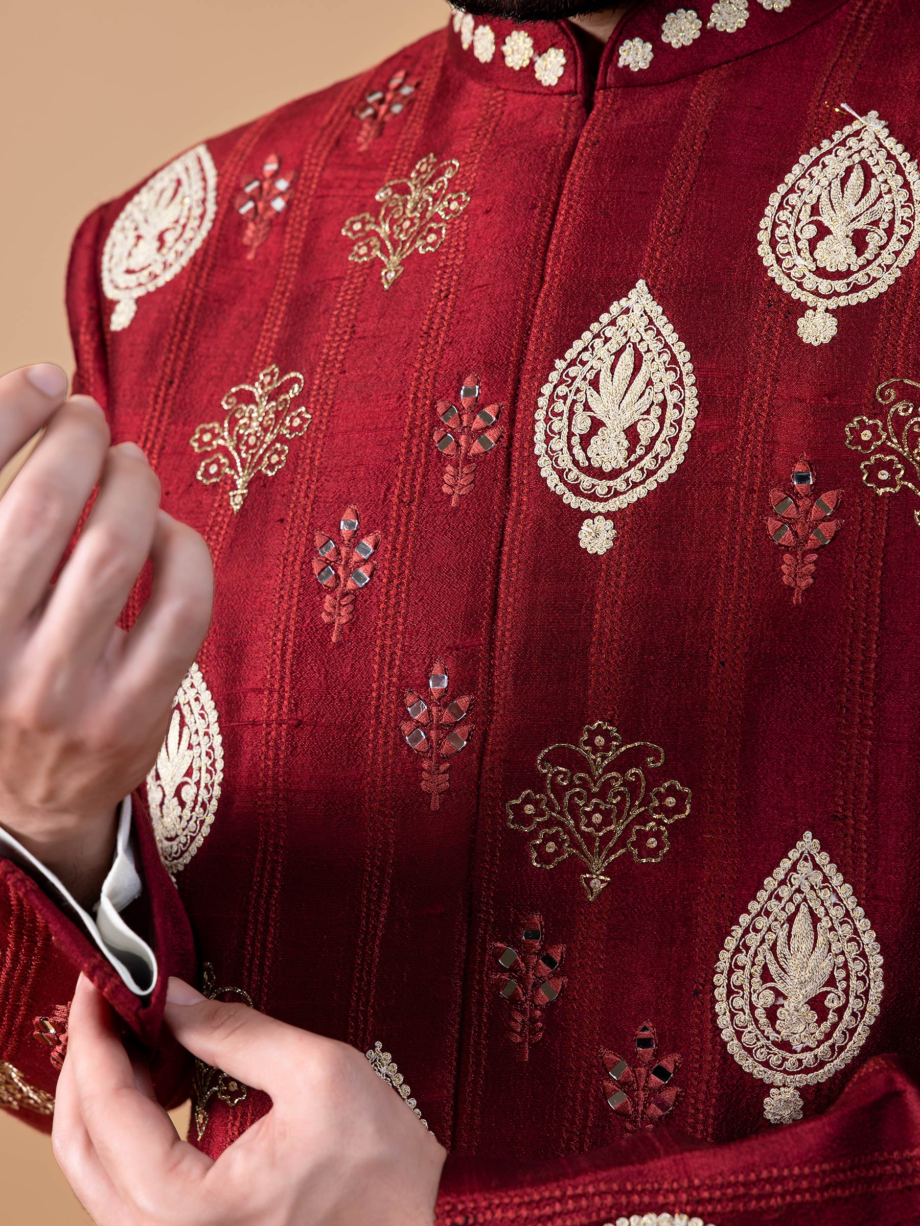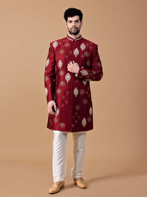 Maroon Raw Silk Indowestern