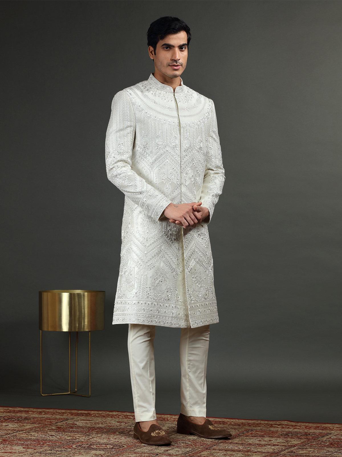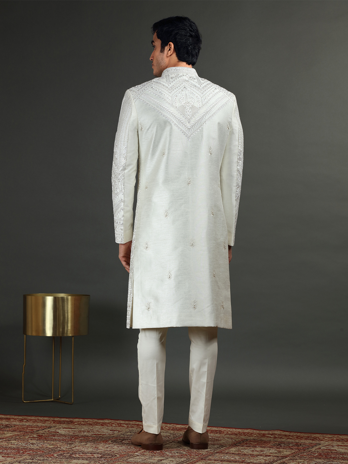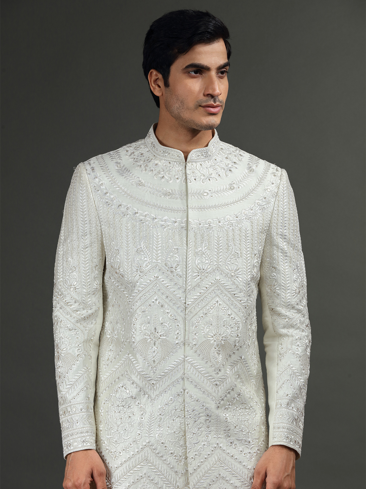 Off White Silk Embroidery Sherwani