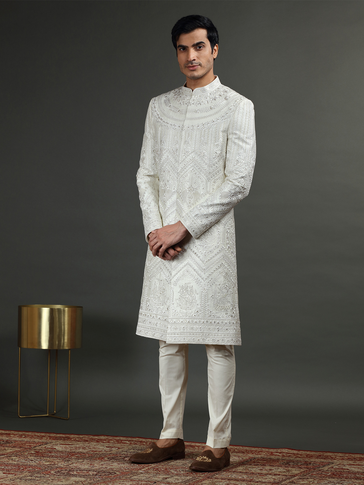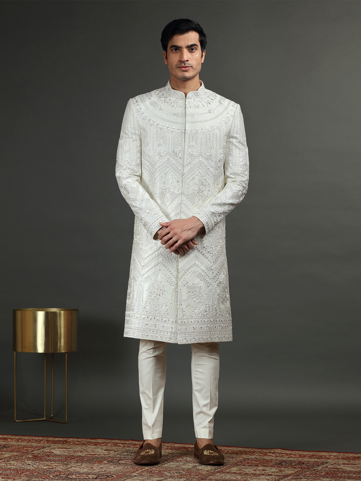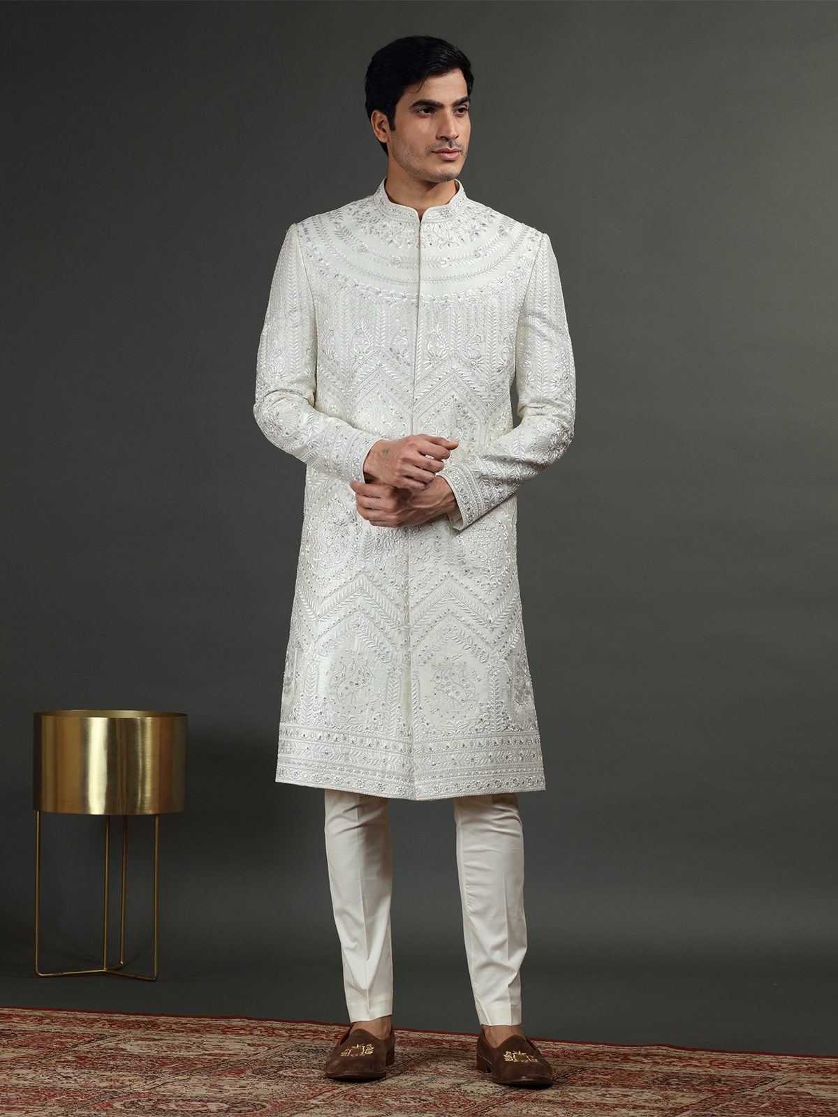 Off White Silk Embroidery Sherwani