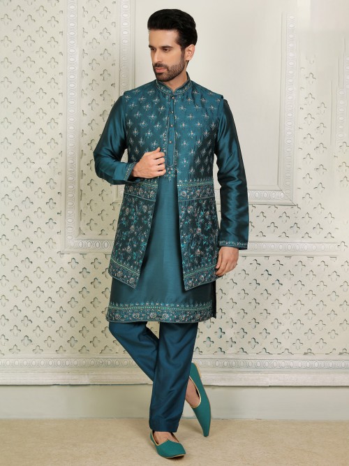 Rama Green Silk Indowestern For Wedding
