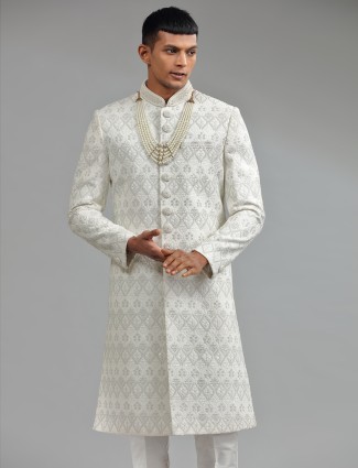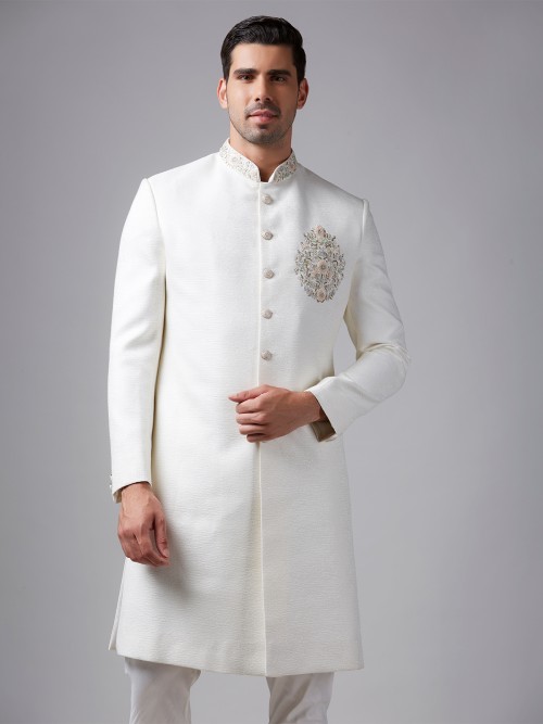 Stunning Off-white Raw Silk Indowestern