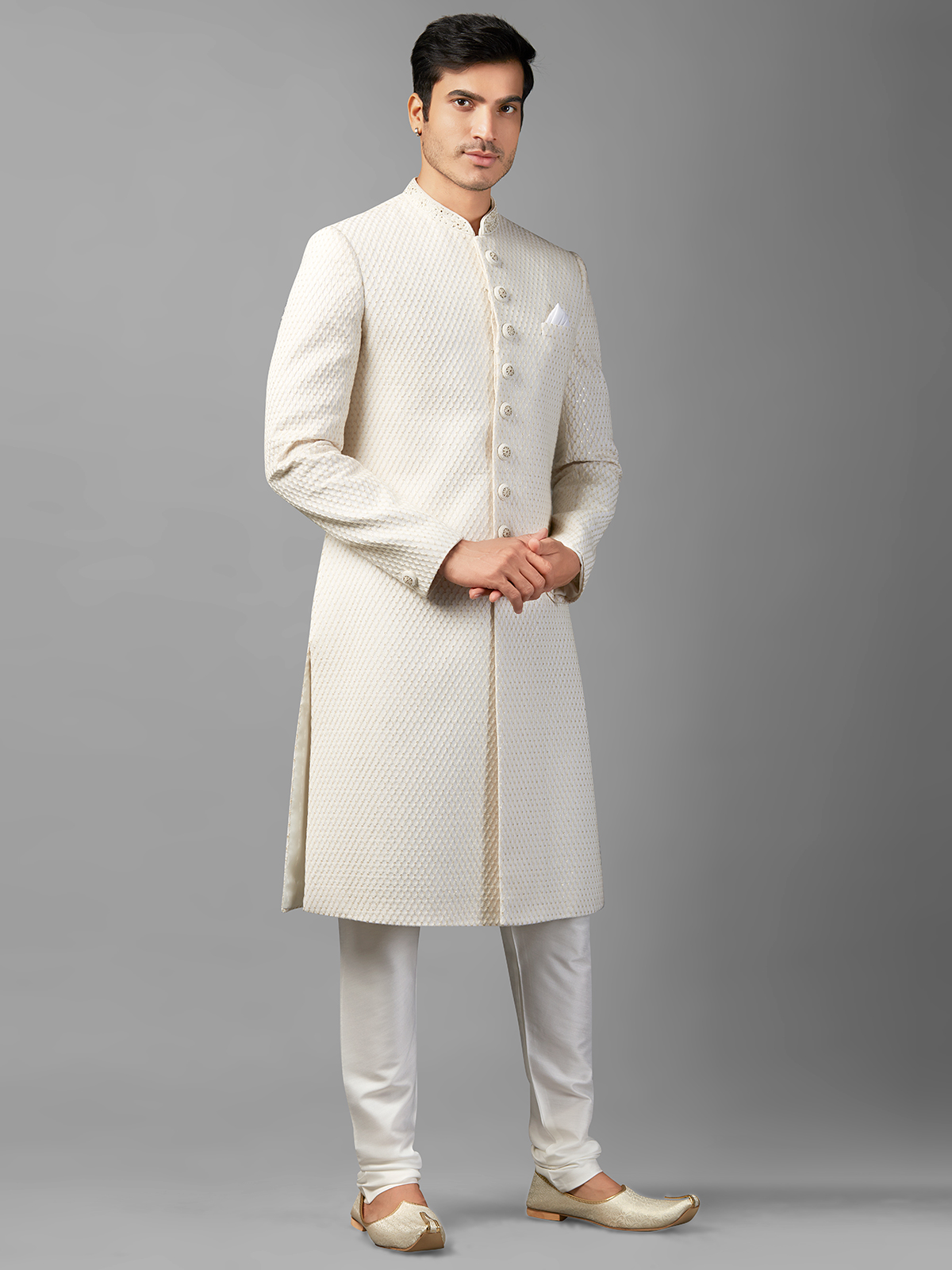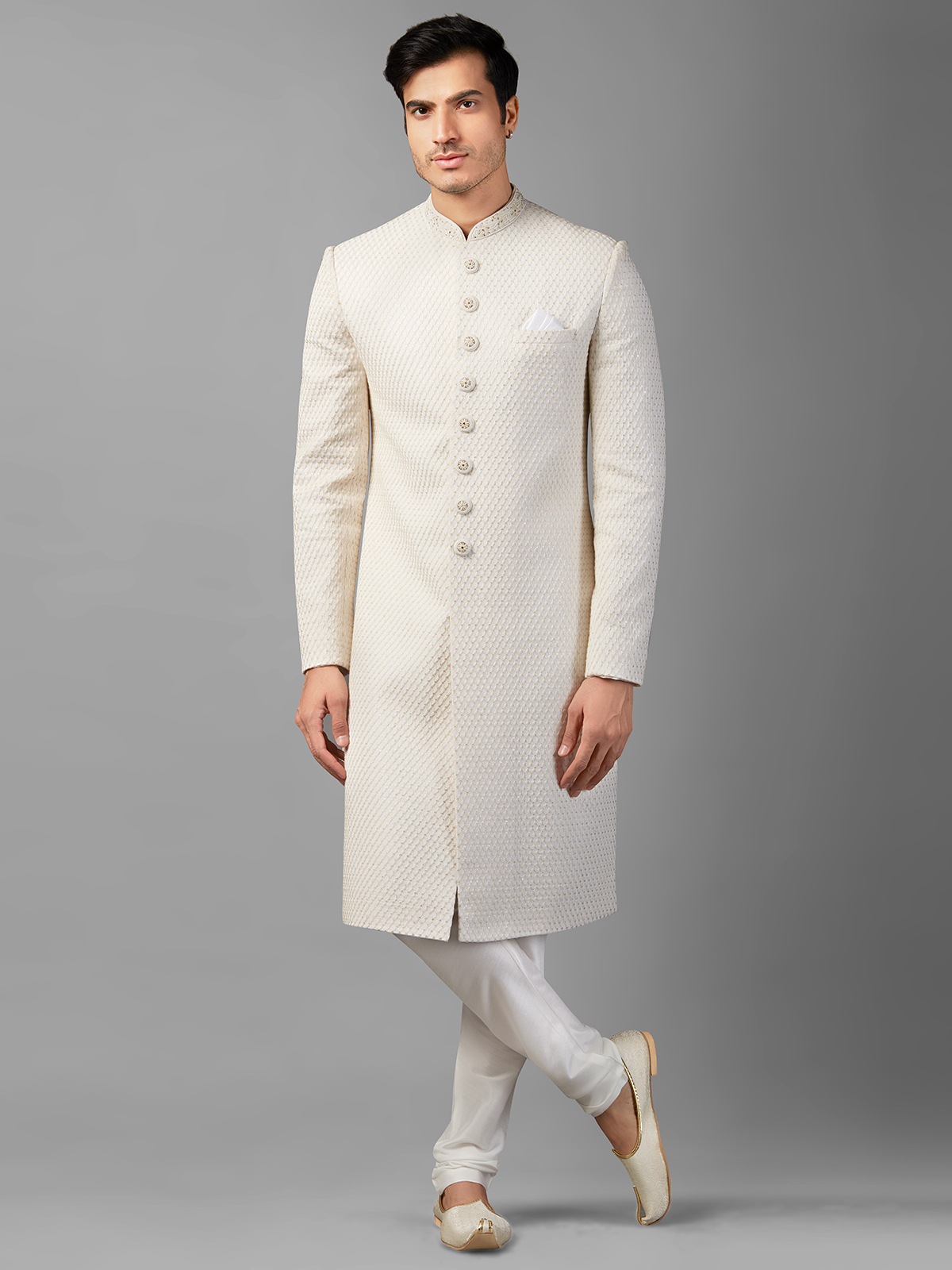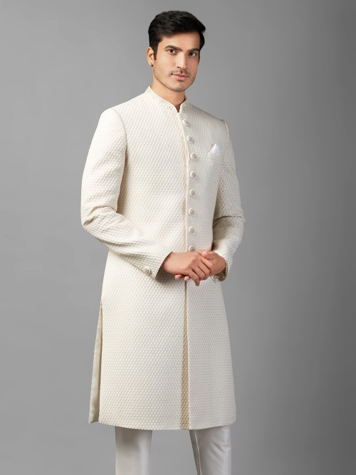 Stunning White Silk Sherwani