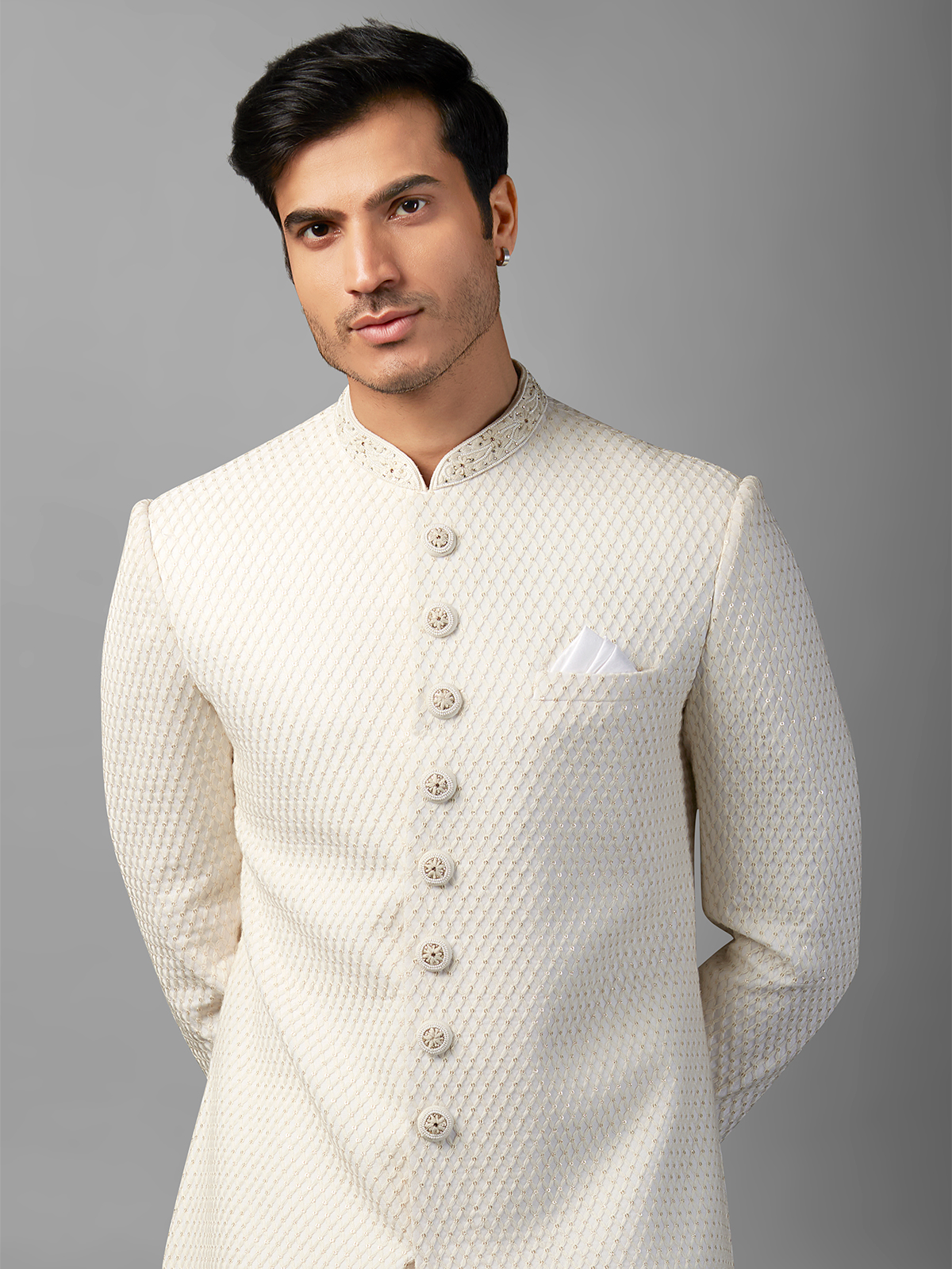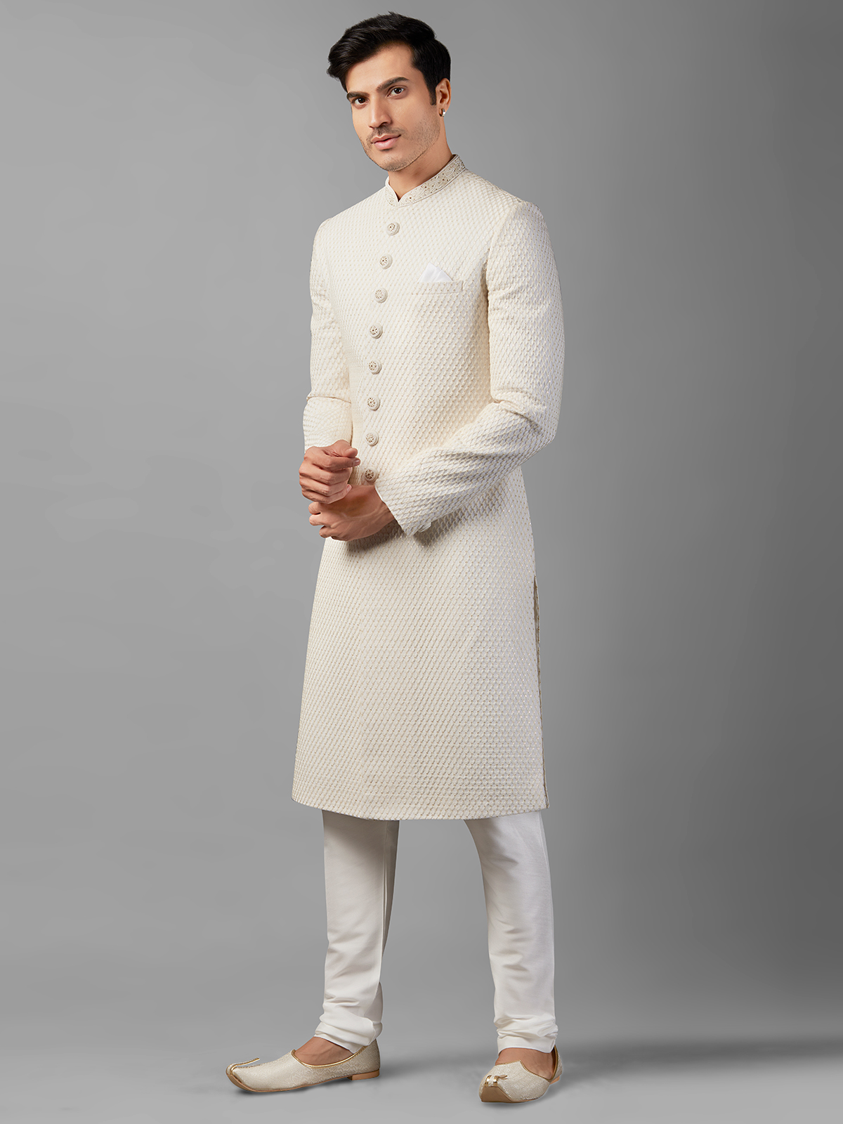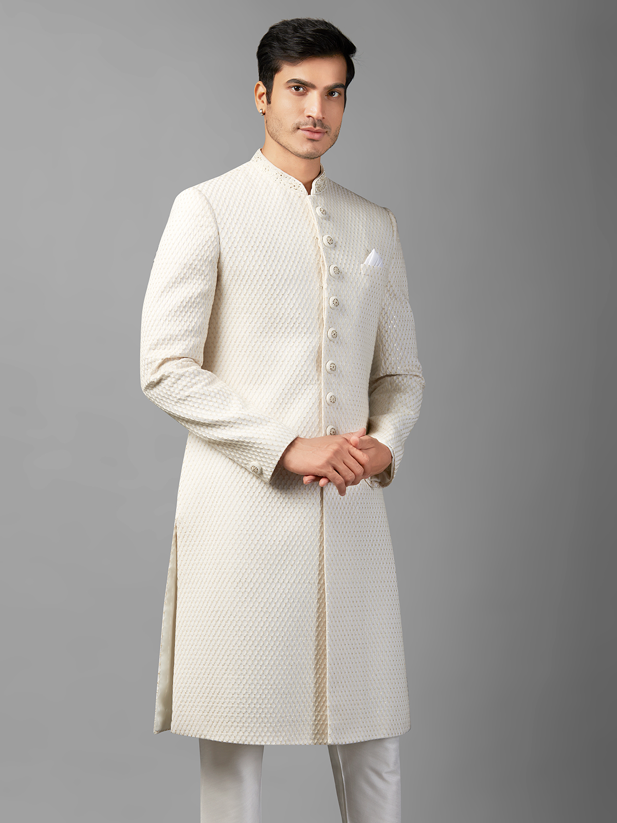 Stunning White Silk Sherwani