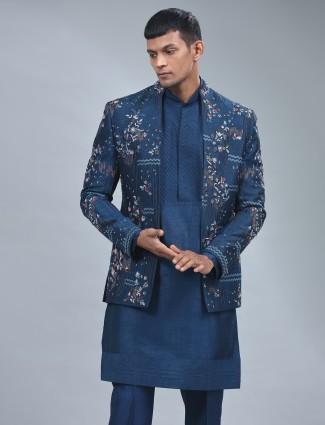 Stylish Navy Terry Rayon Indowestern