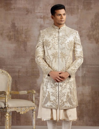 Gold Silk Peshwai Sherwani With Rich Craftsmanship