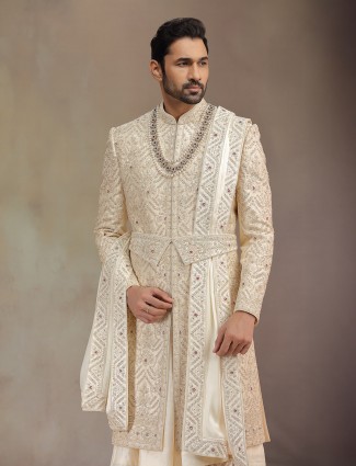 Golden Silk Peshwai Sherwani For Groom