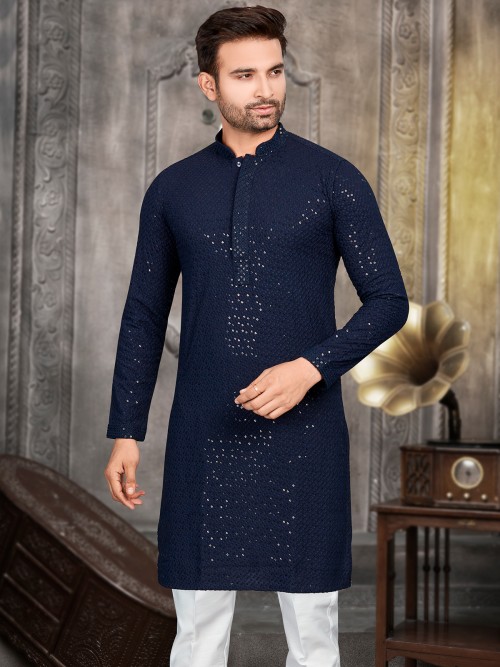 Classy Navy Cotton Festive Kurta