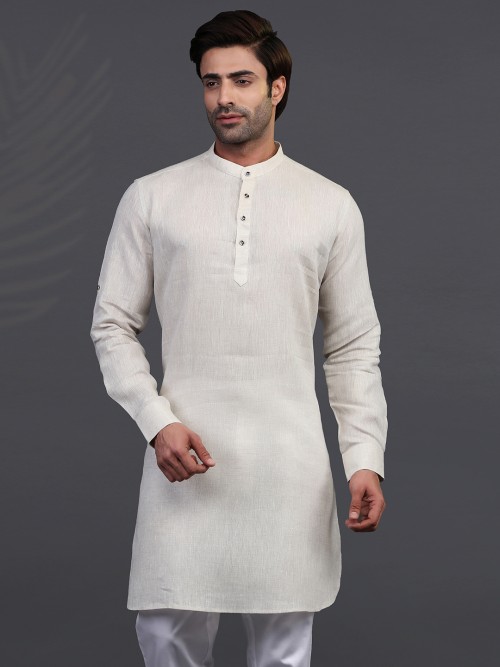 Cream Linen Kurta For Men
