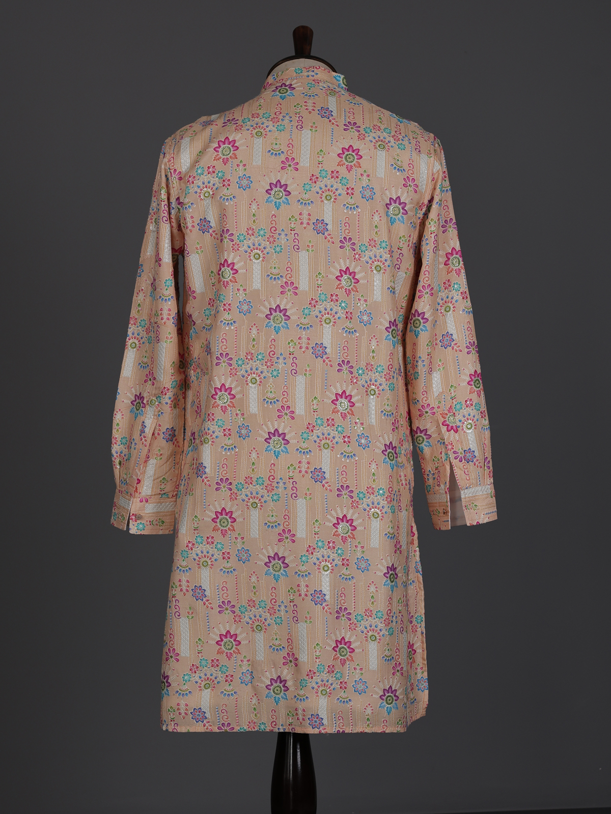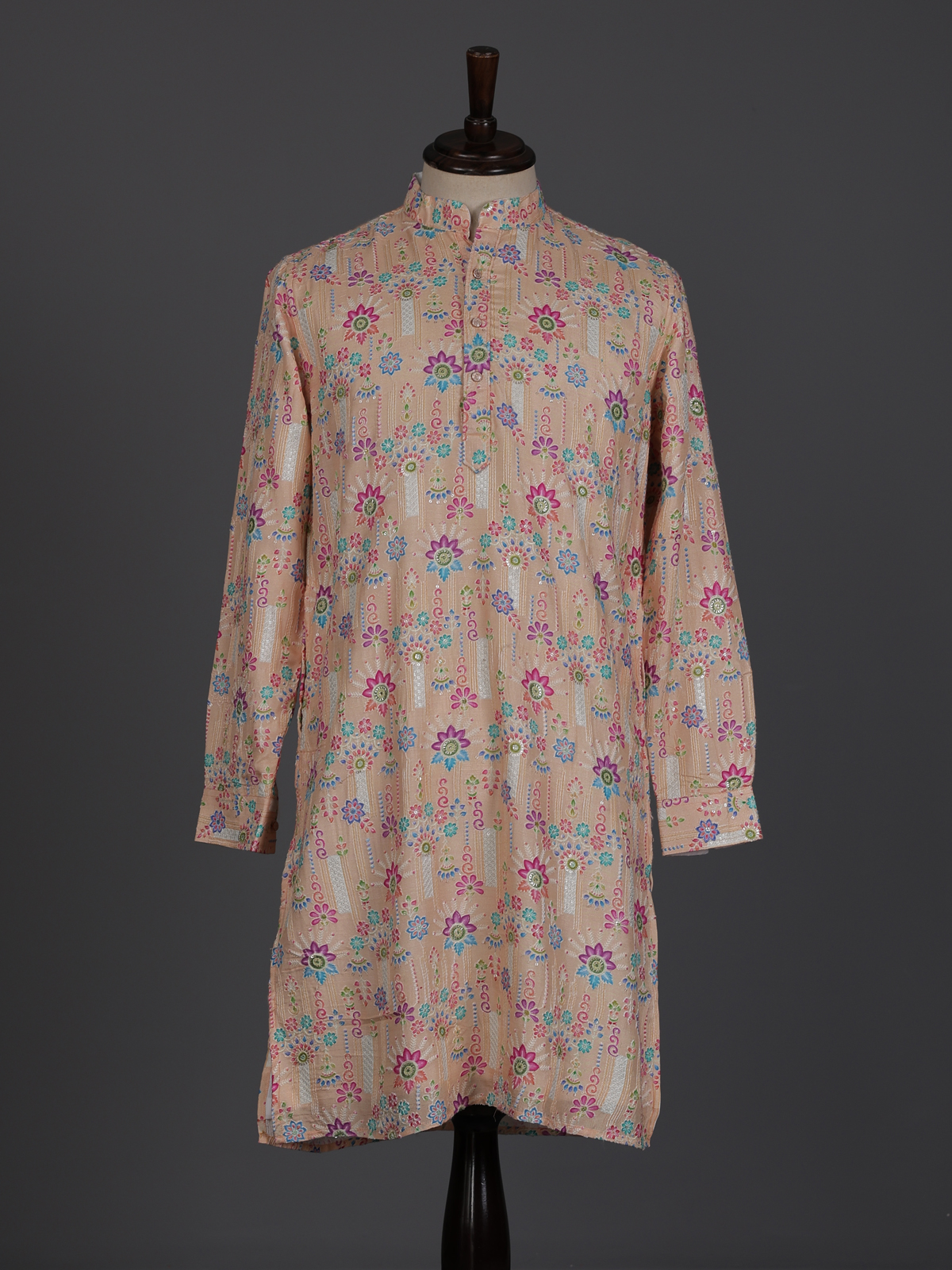Light Peach Linen Printed Thread And Sequins Festive Kurta