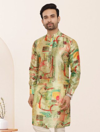 Multicolor Silk Printed Kurta With Delicate Sequins
