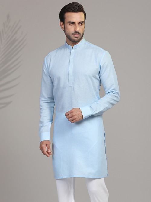 Sky Blue Cotton Kurta For Festive