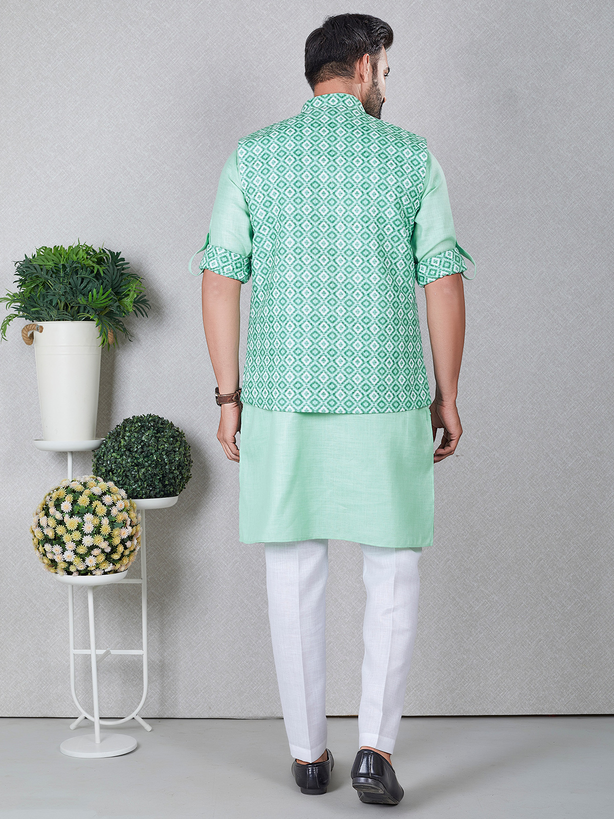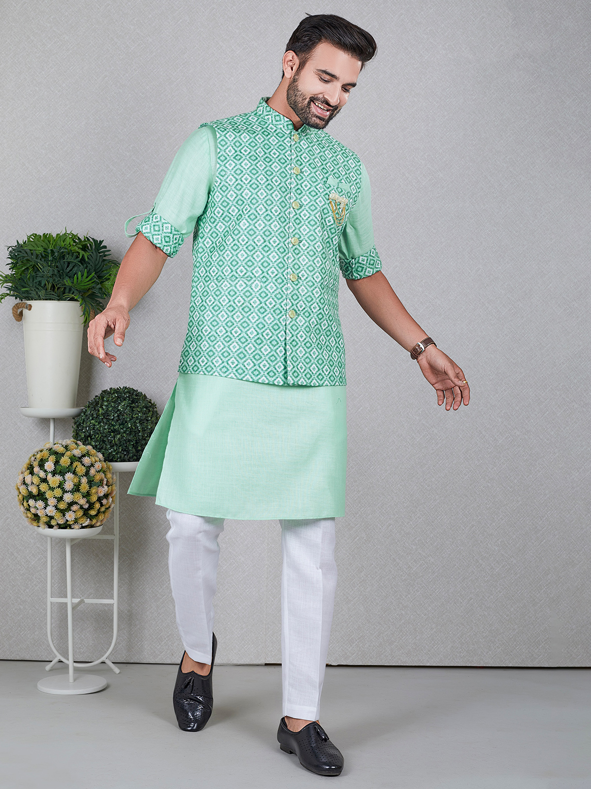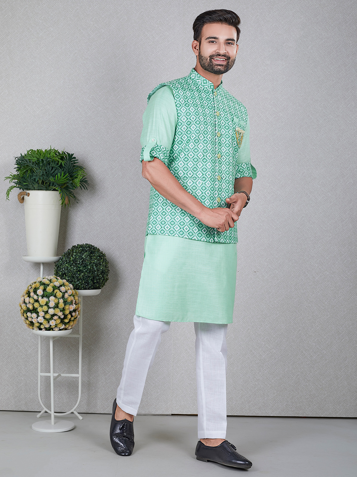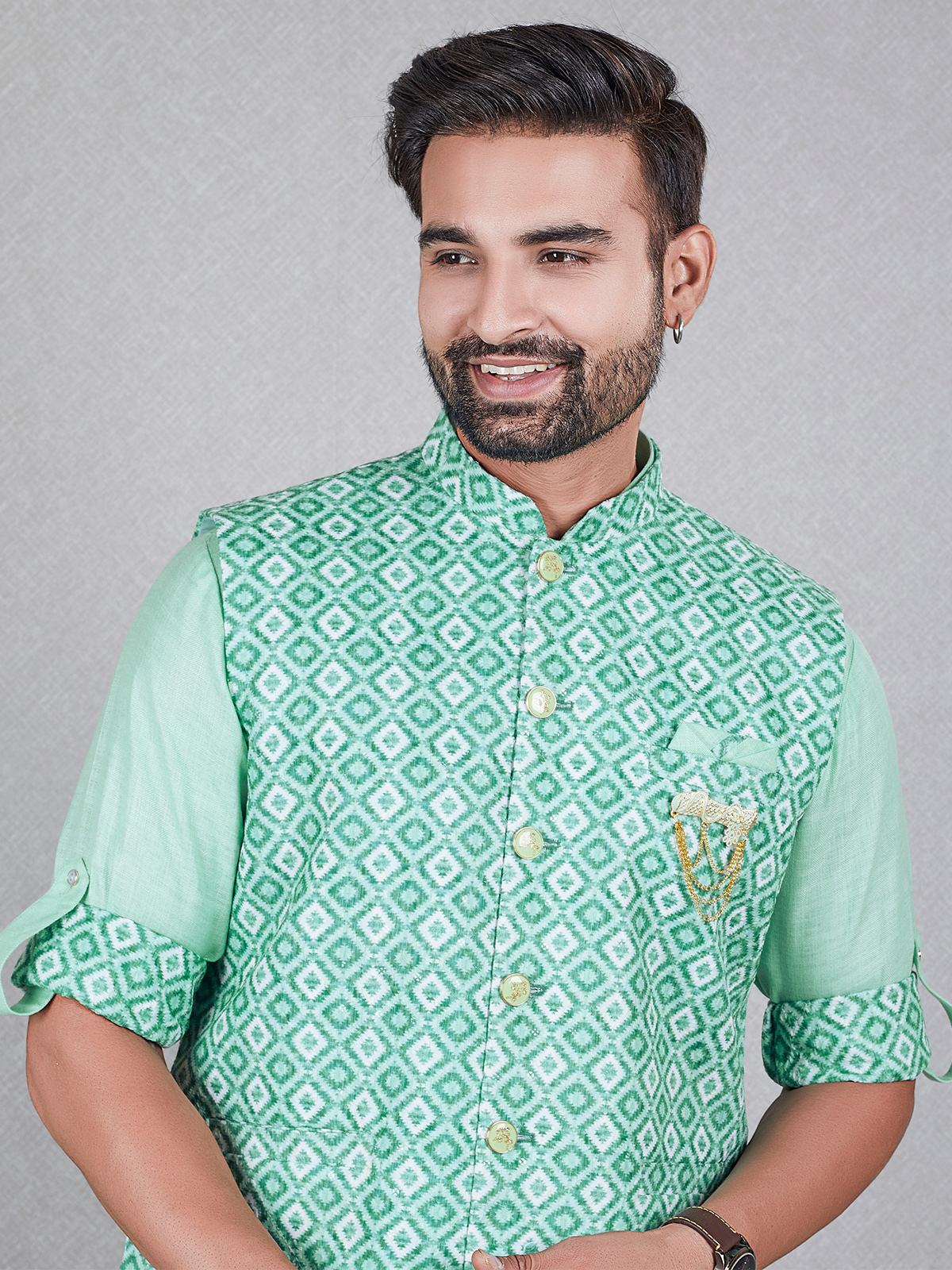 Latest Light Green Silk Waistcoat Set