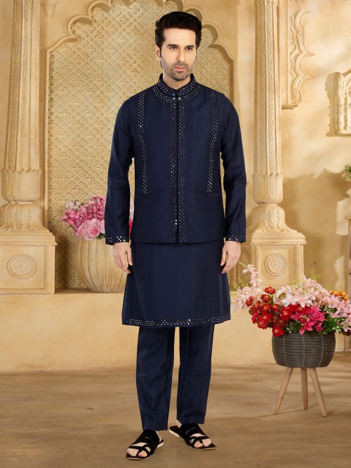 Latest Navy Silk Waiscoat Set