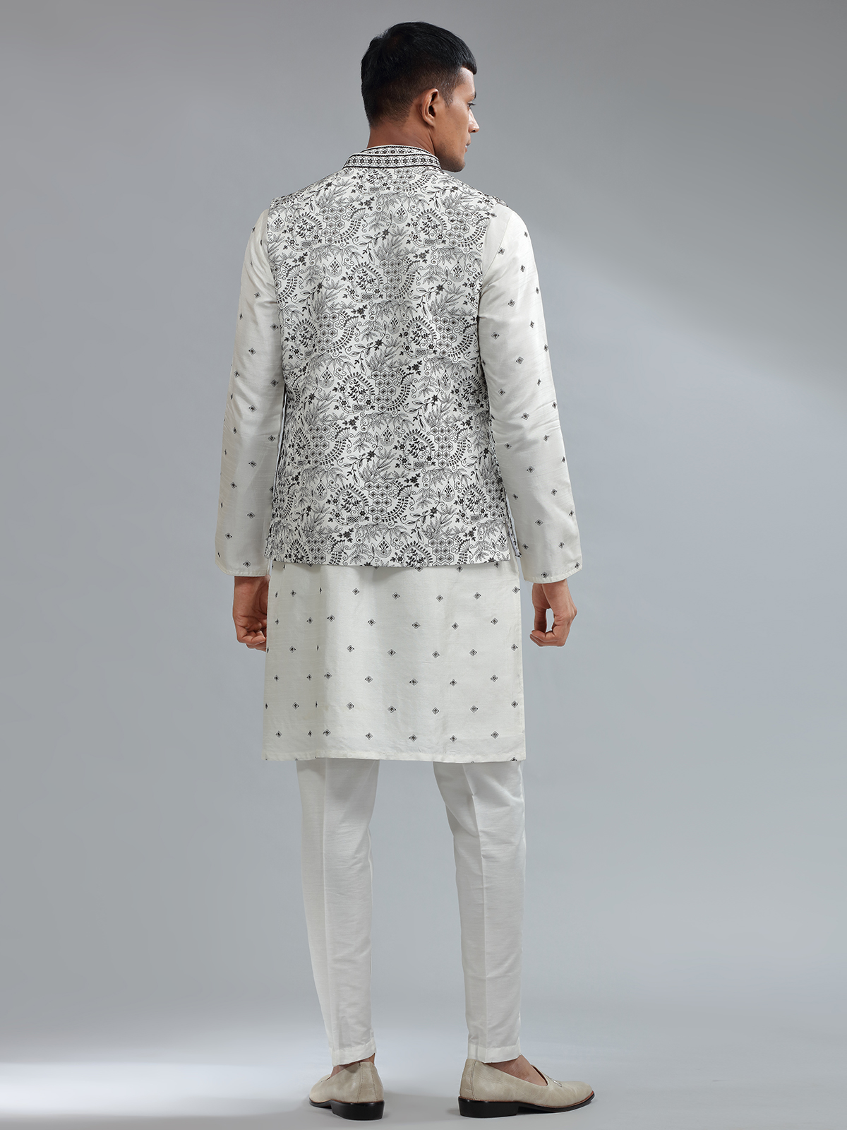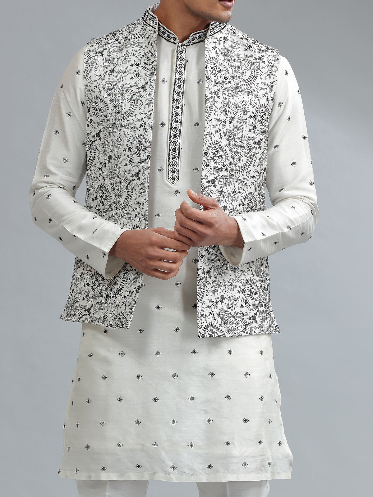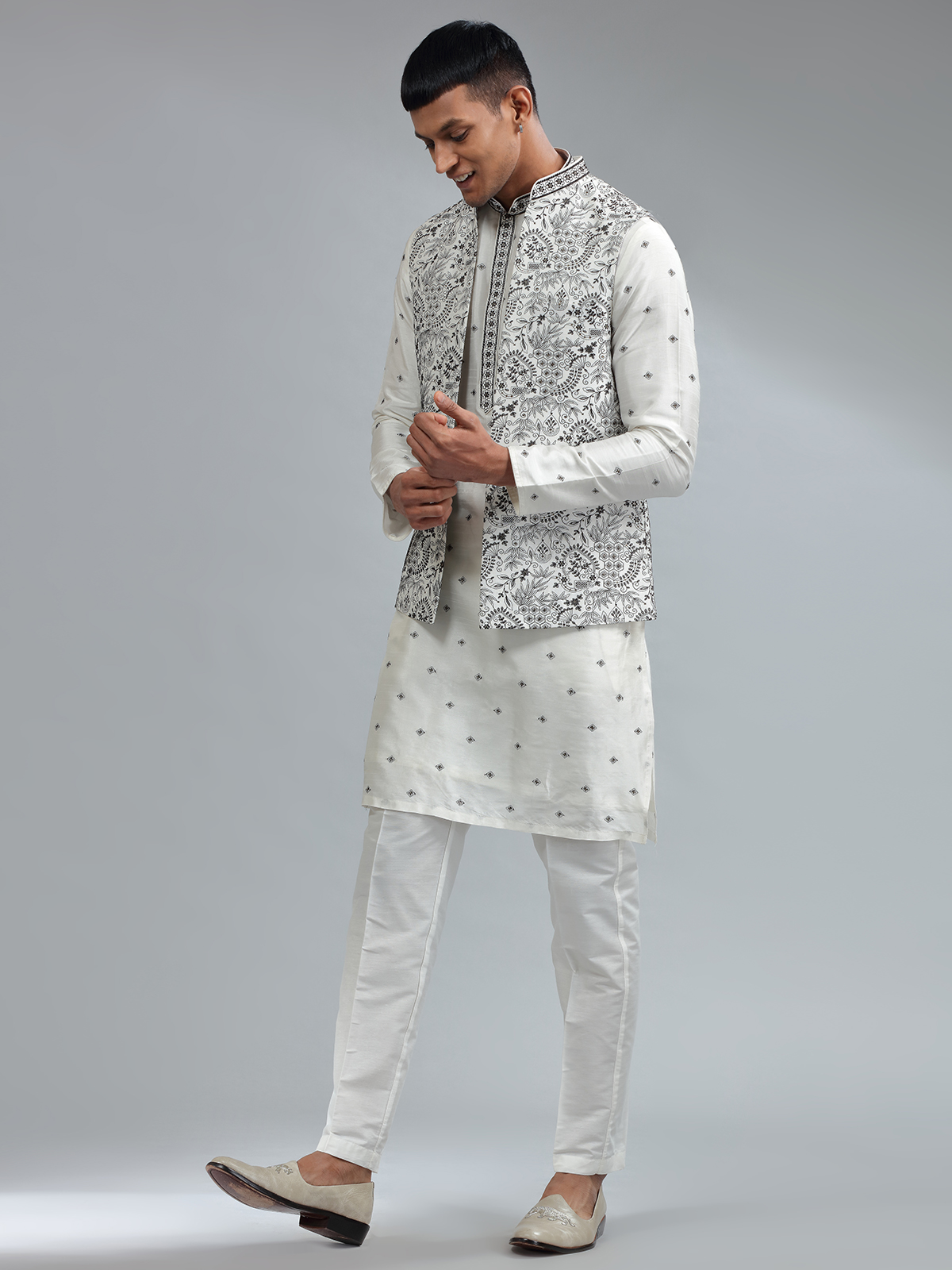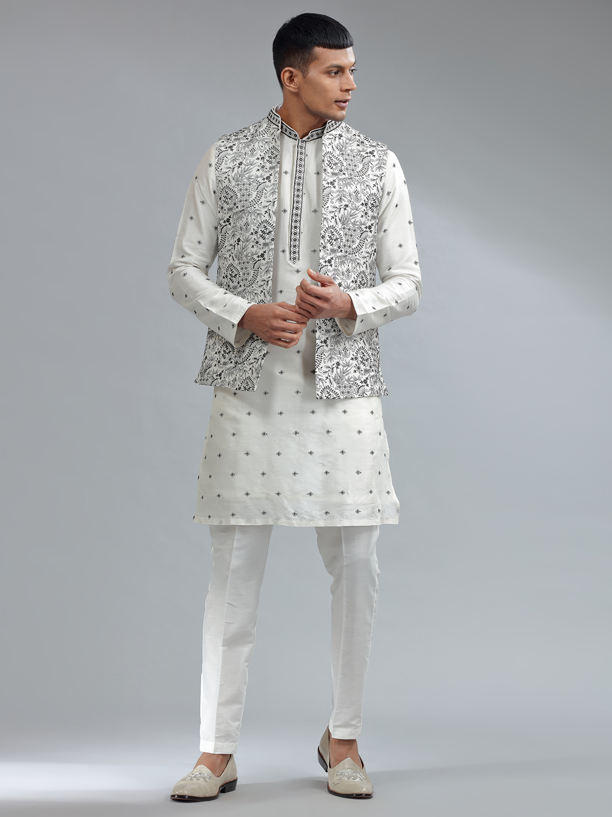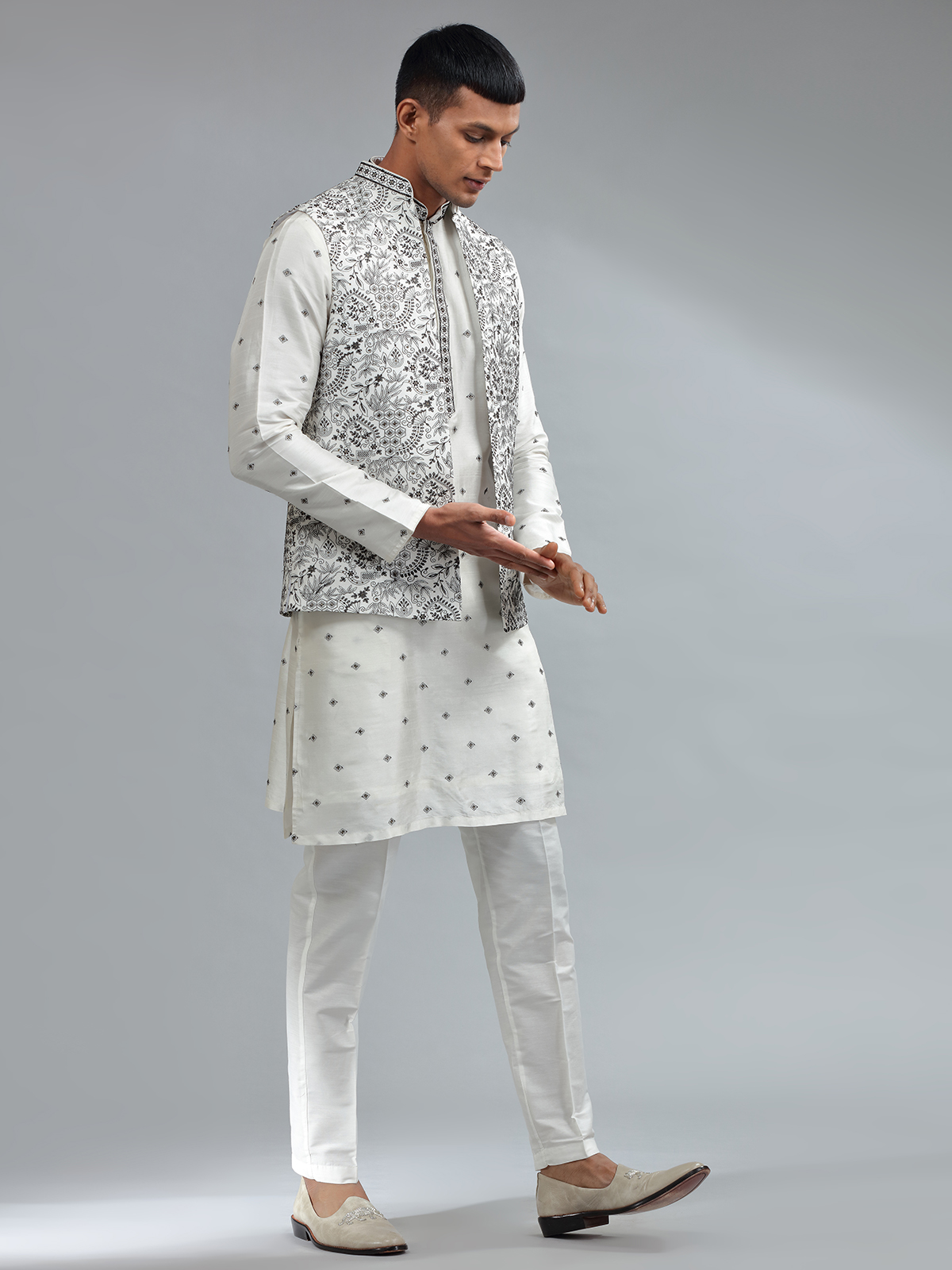 Explore wide range of trendy and stylish Indian ethnic wear this white silk waistcoat set. Crafted in embroidery and sequins work. It comes with a bottom.