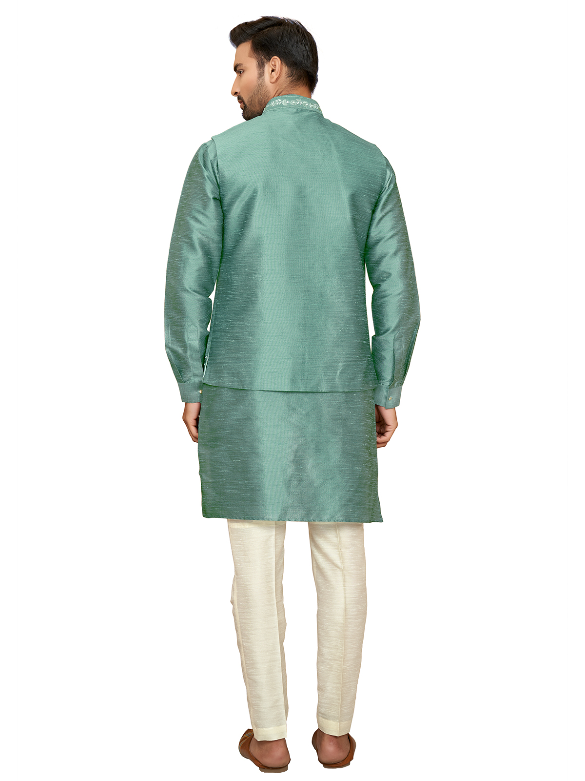 Sea Green Silk Waistcoat Set