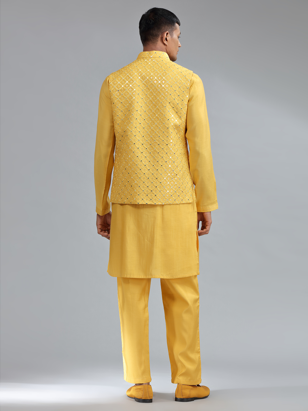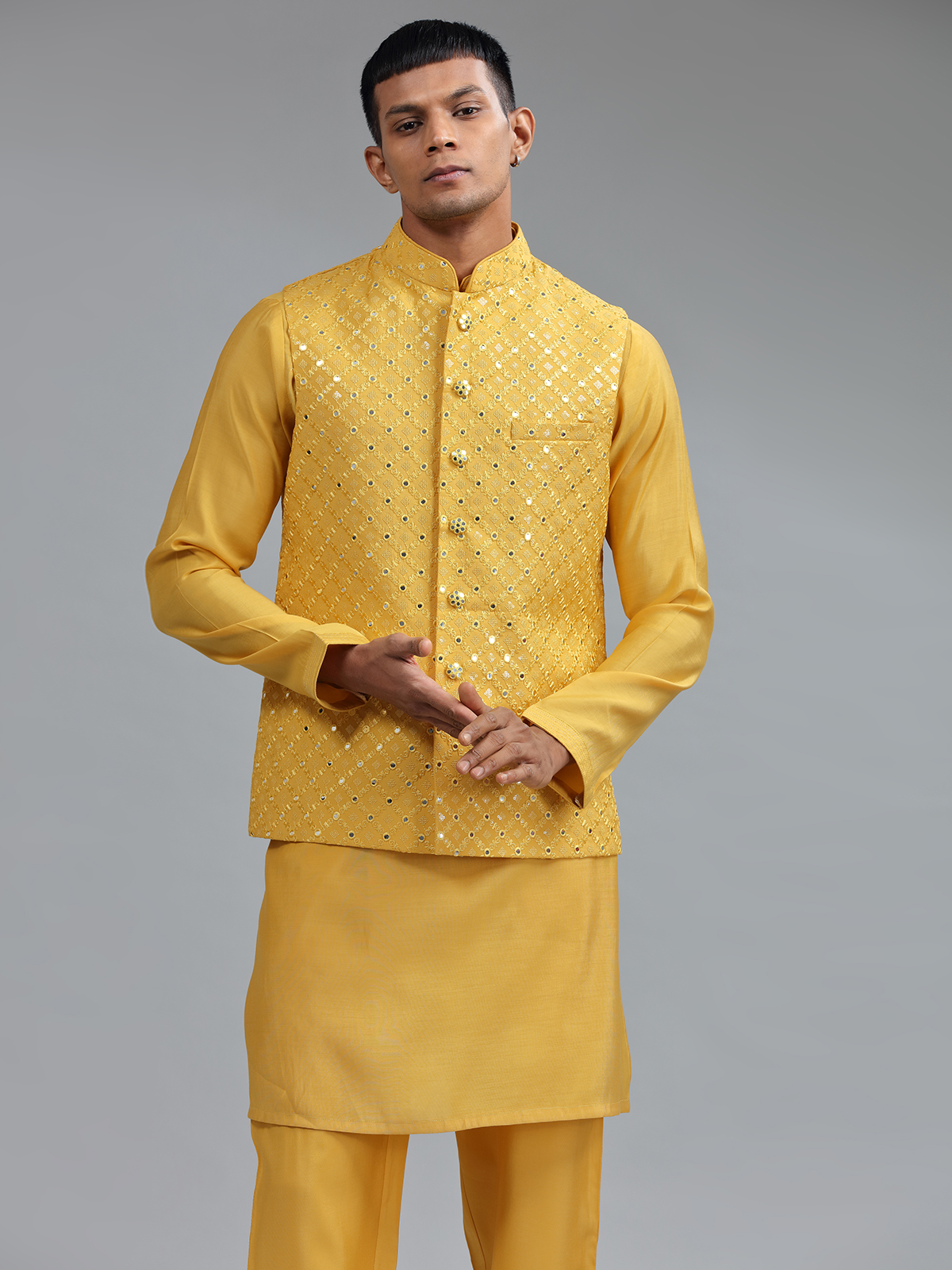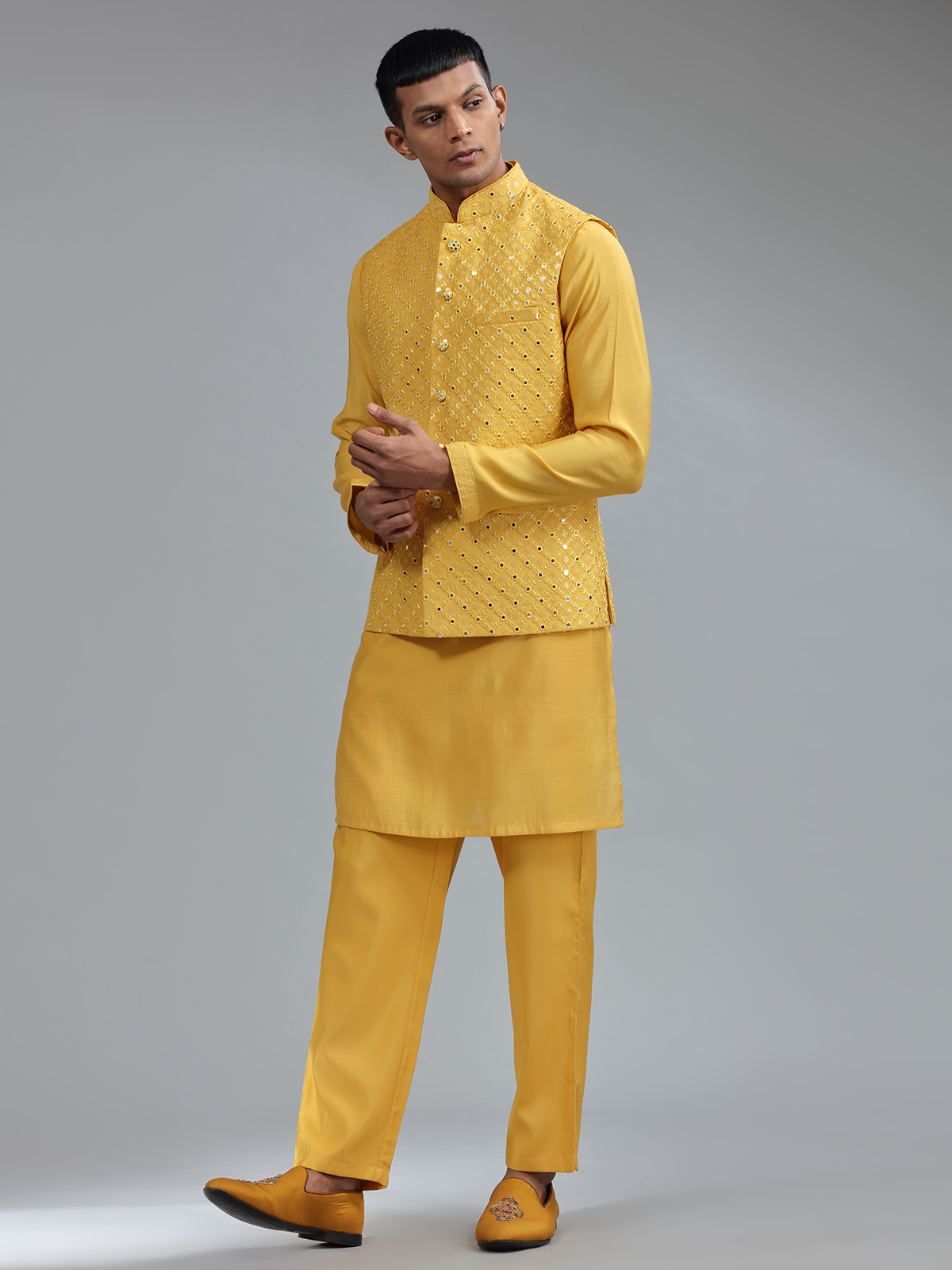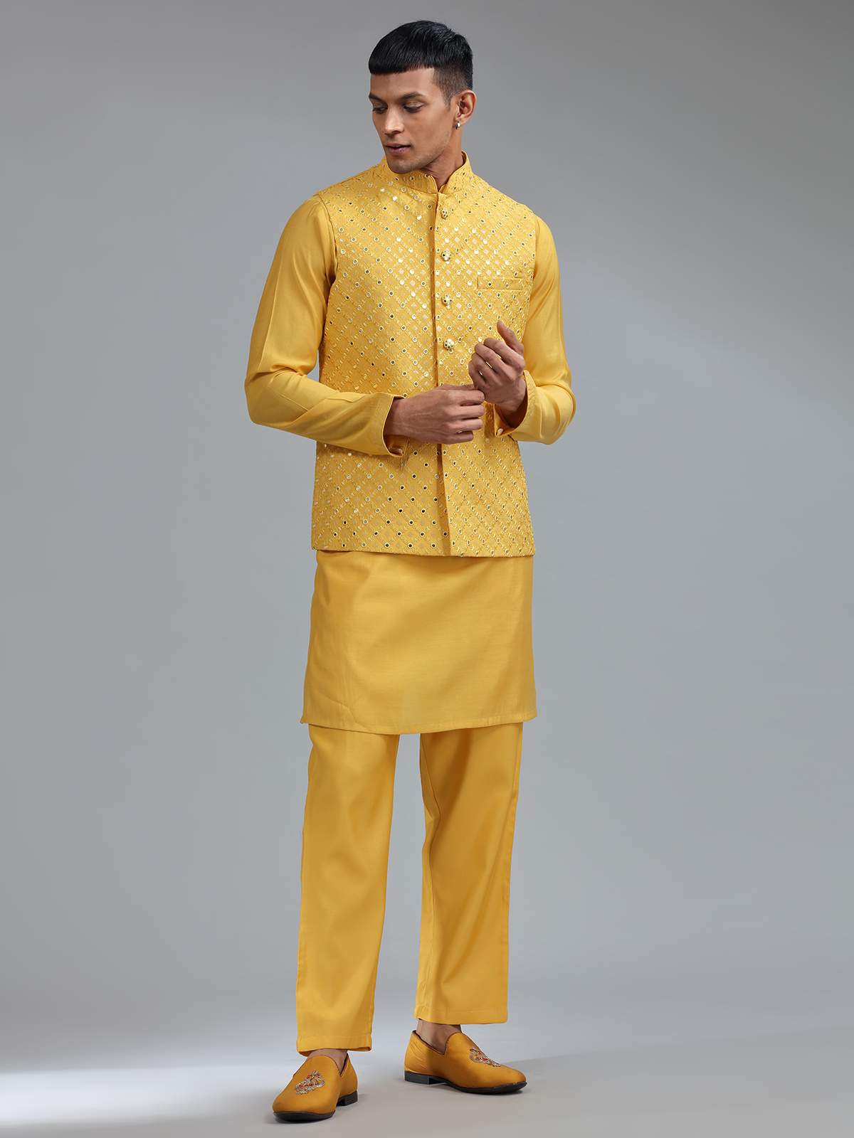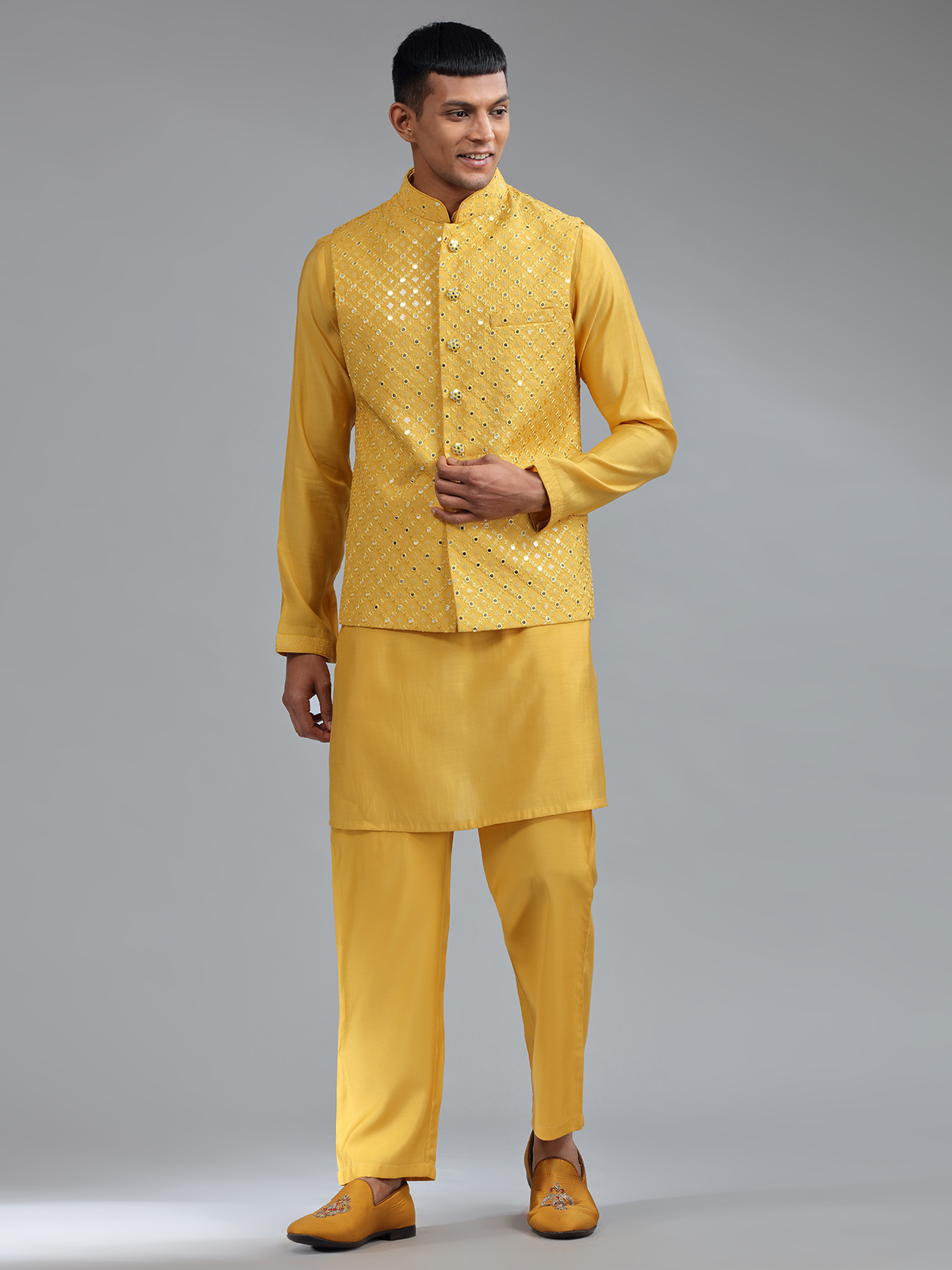 Smashing Mustard Yellow Silk Wedding Waistcost Set
