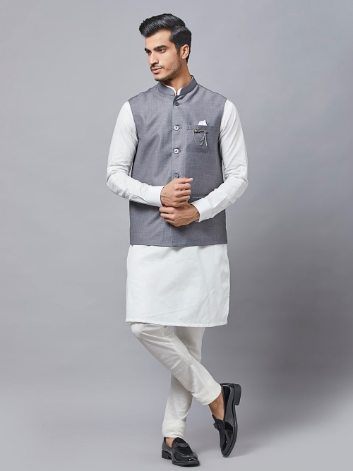 Solid Grey Cotton Festive Wear Waistcoat Set