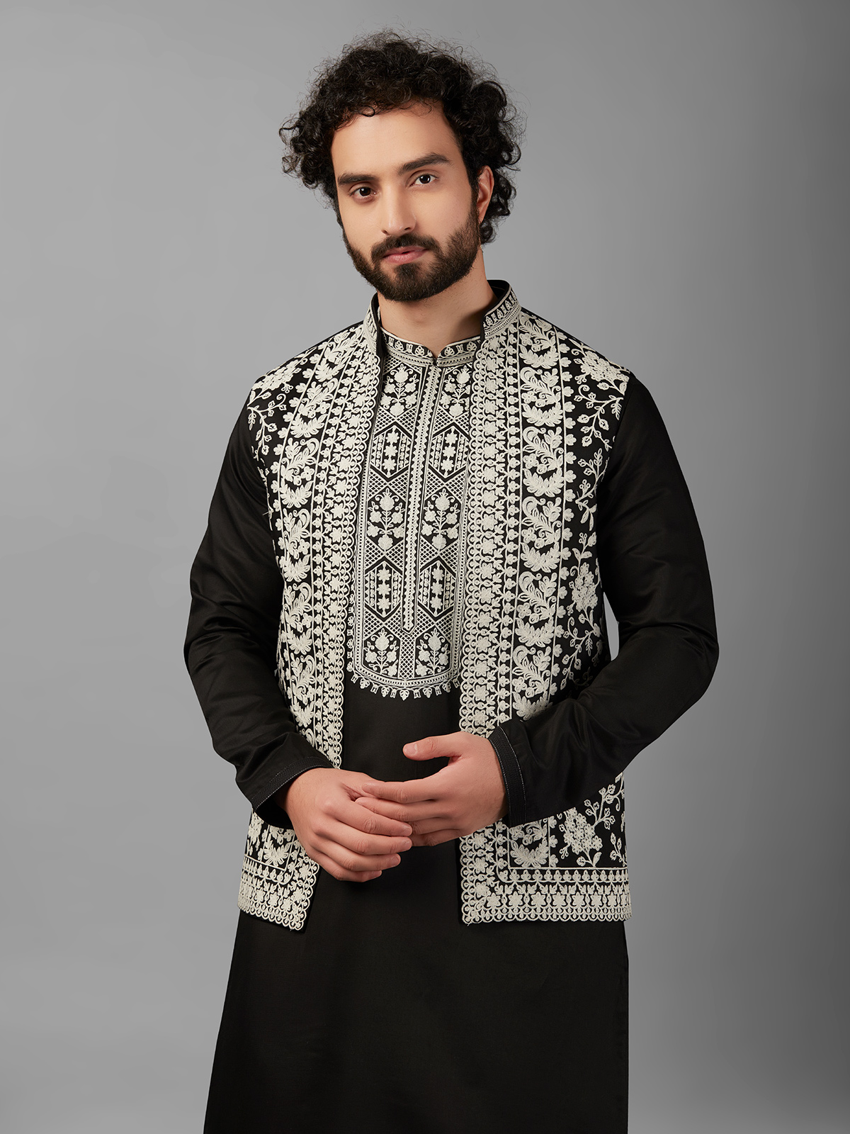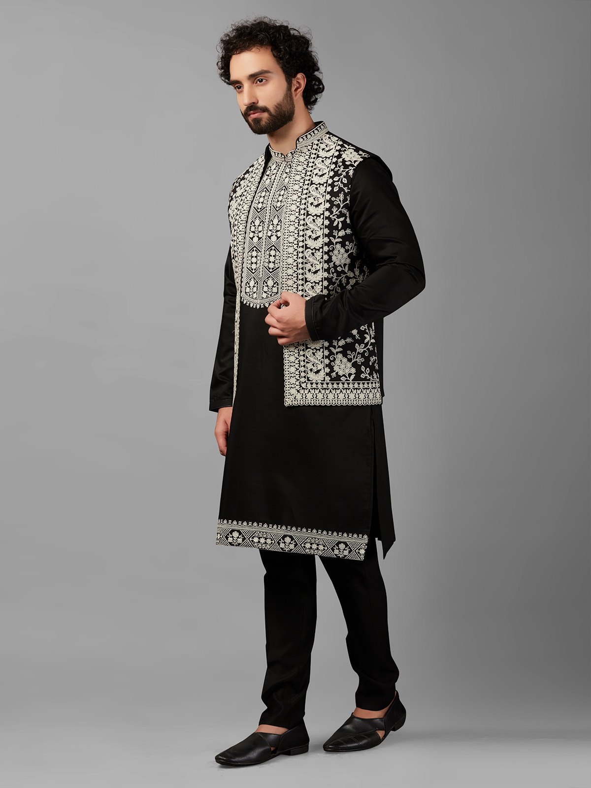 Stunning Silk Black Waistcoat Set