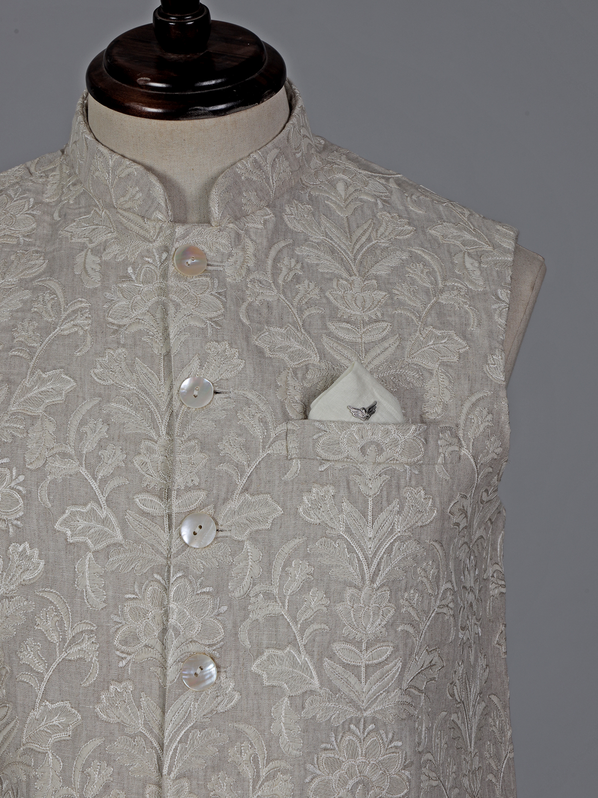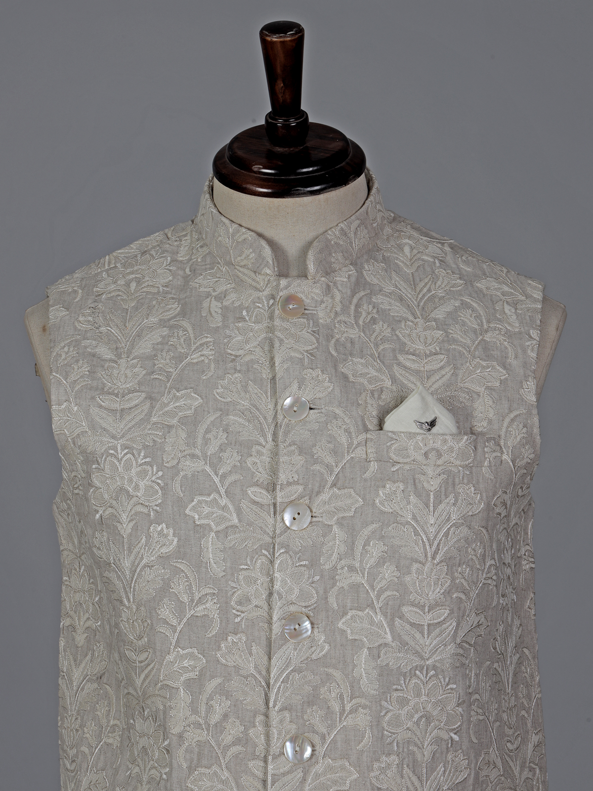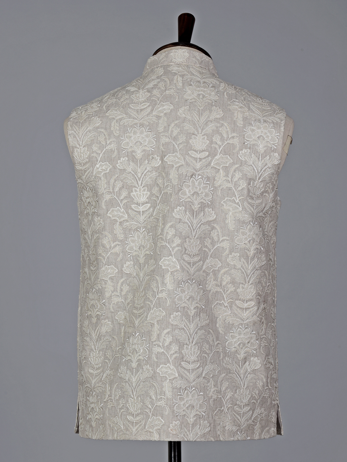 Cream Brocade Silk Embroidered Waistcoat In Heritage Style