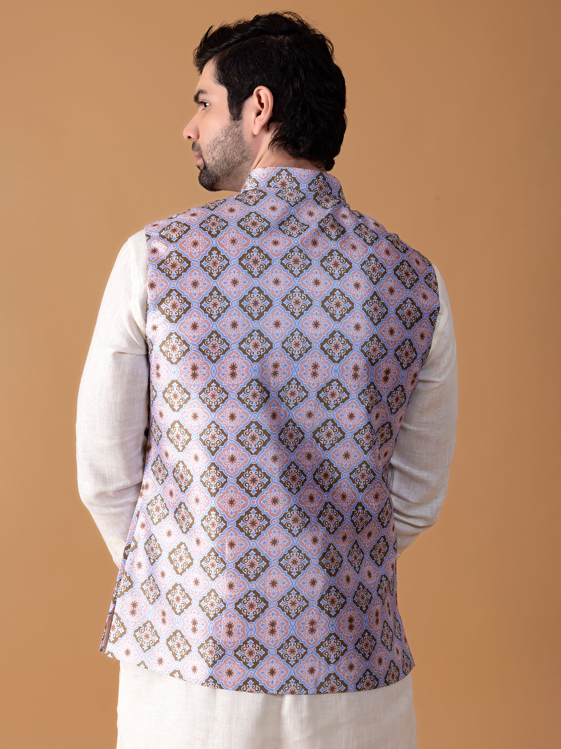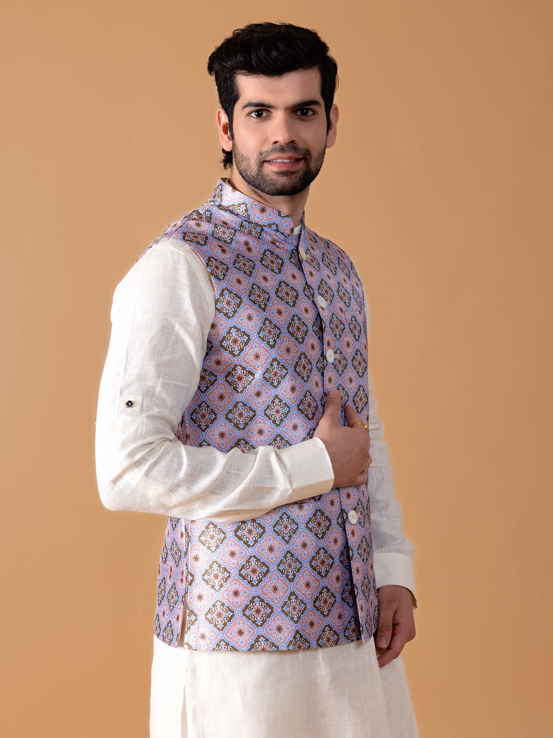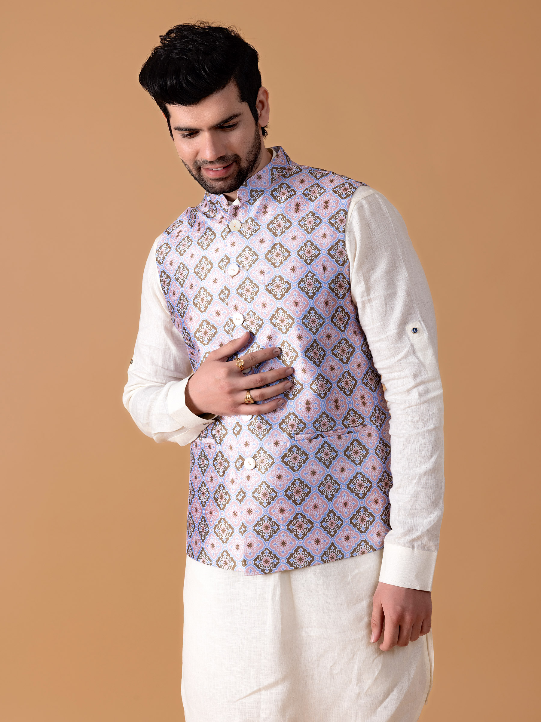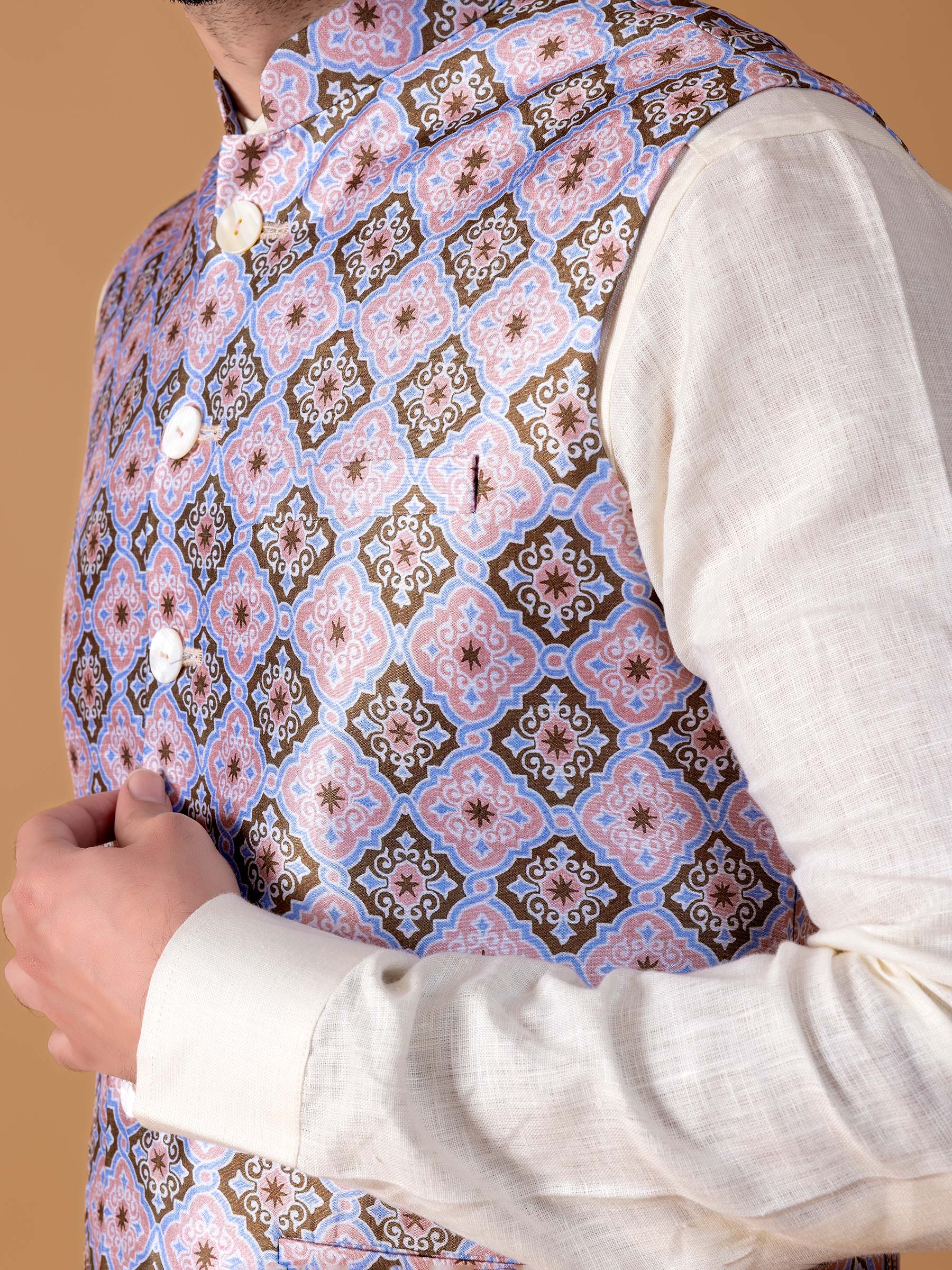 Light Blue Silk Printed Waistcoat