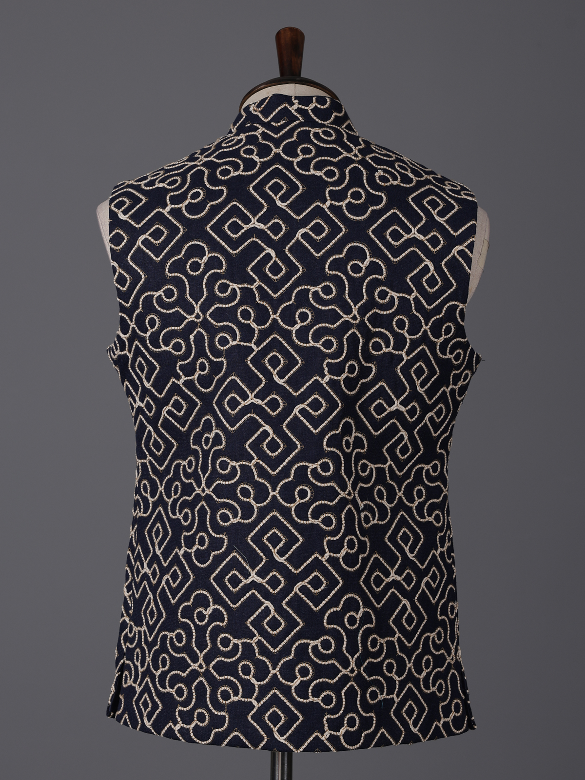 Navy Blue Cotton Thread Work Wedding Festive Waistcoat