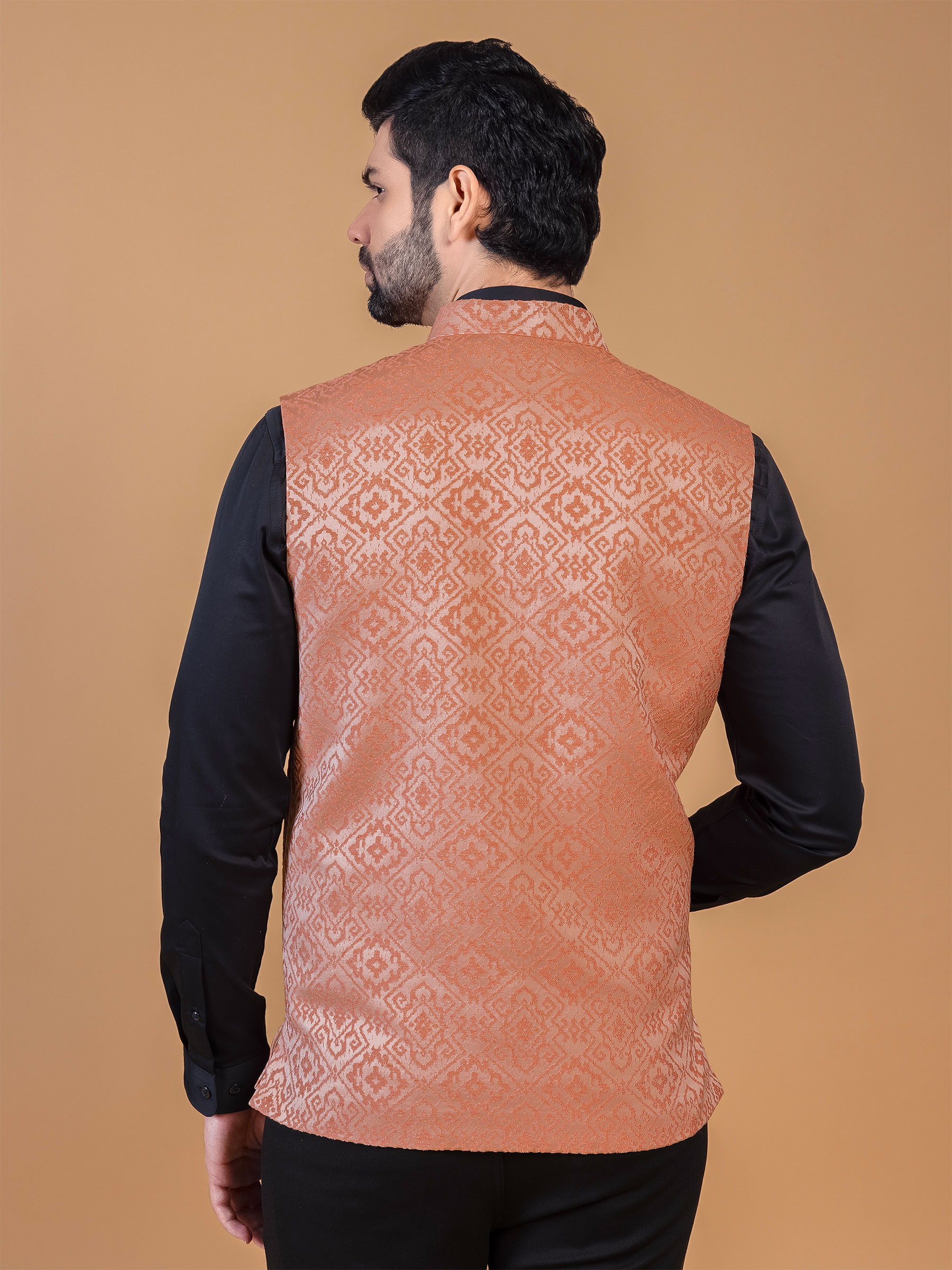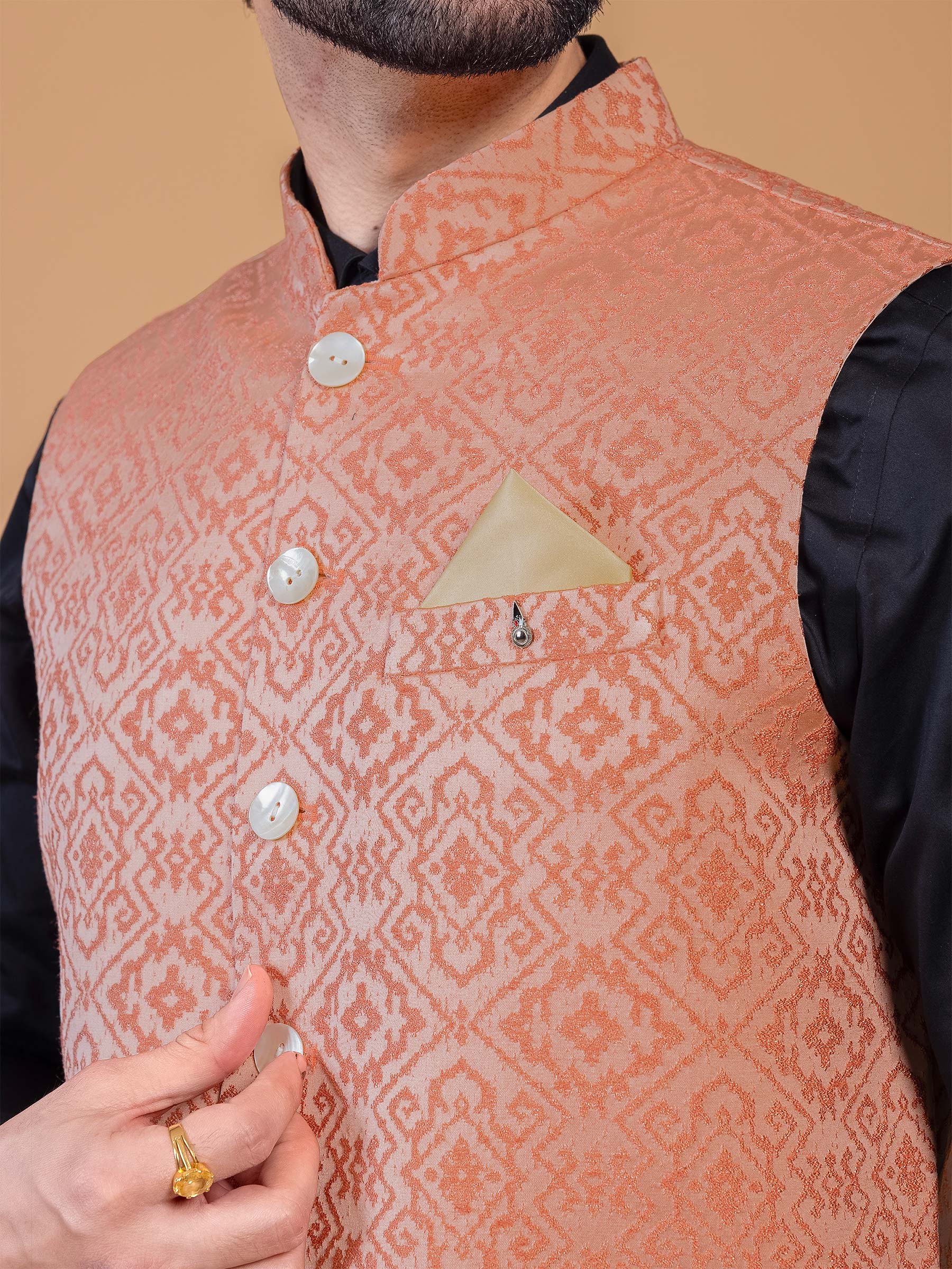 Peach Silk Waistcoat For Festive