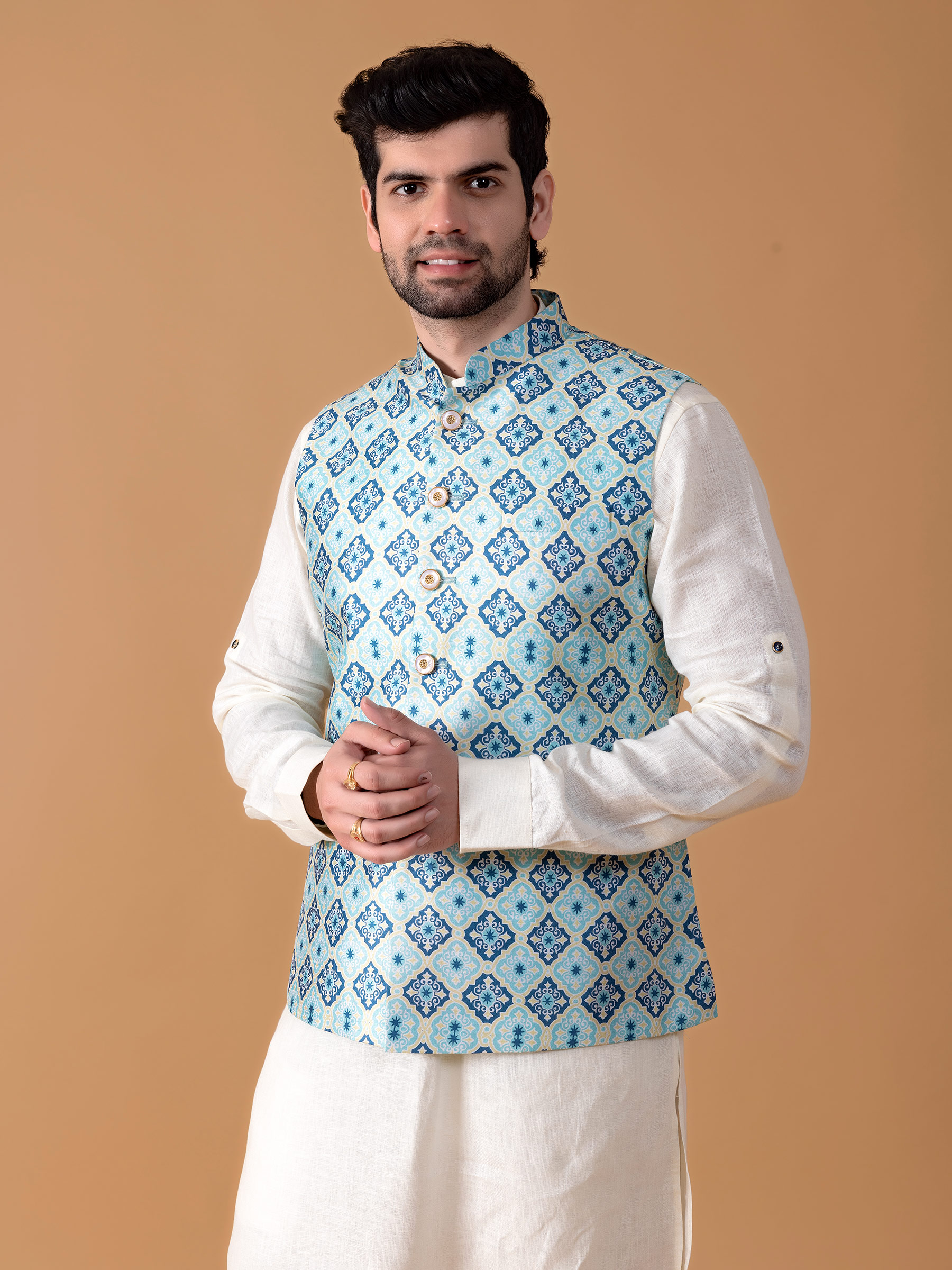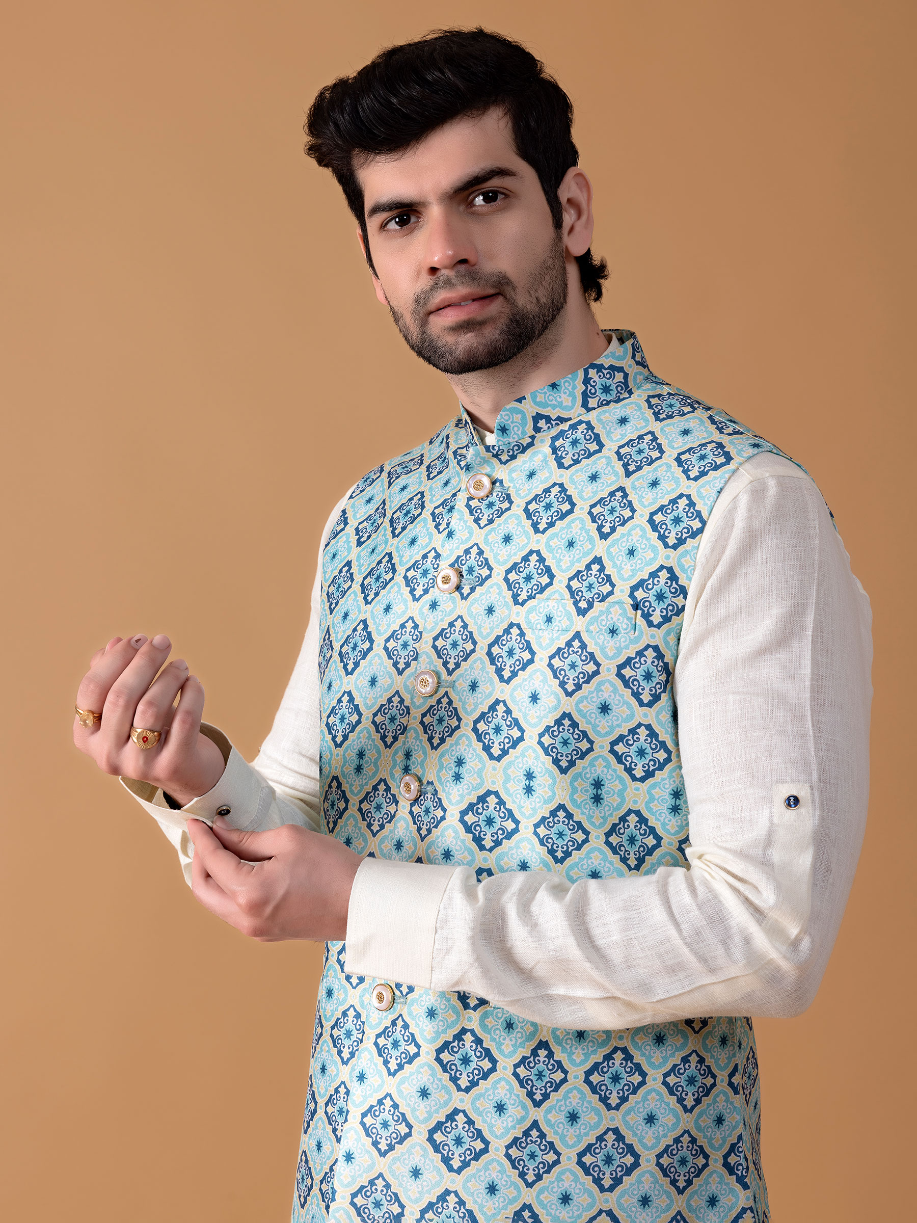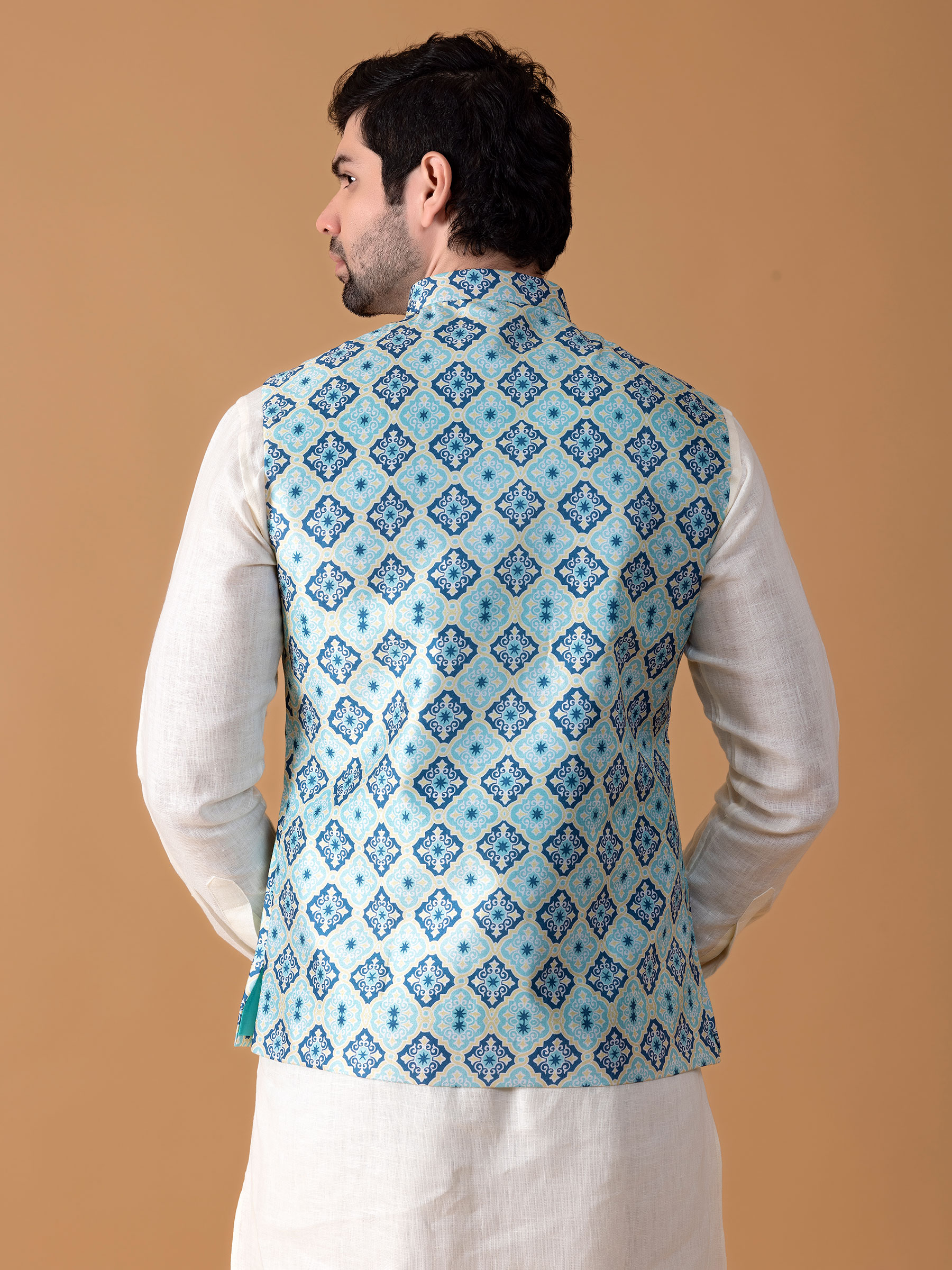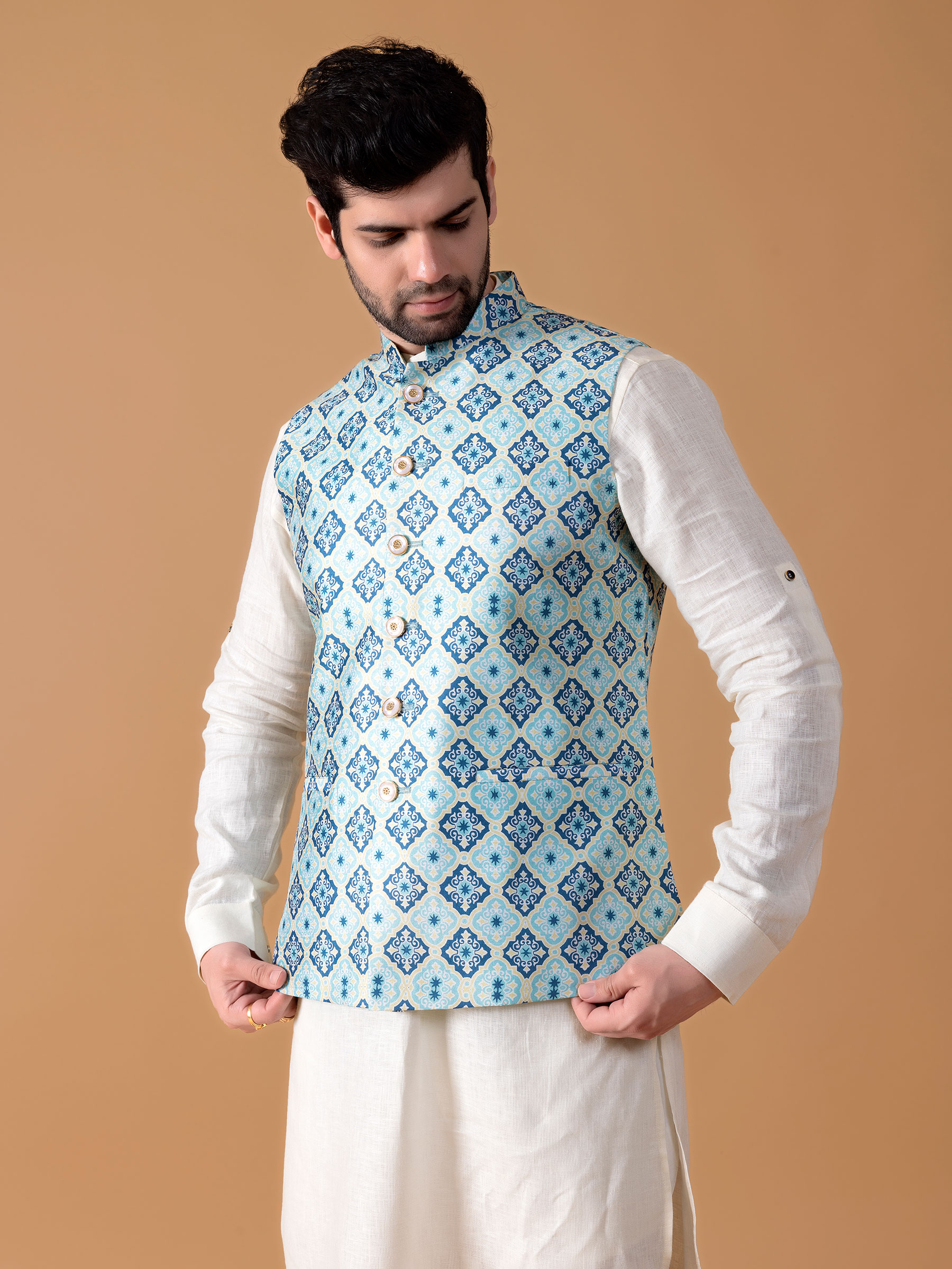 Step into refined style with our luxurious mint green silk waistcoat. Tailored with precision, it features a mandarin collar, sleeveless pattern and three welt pockets, providing a versatile and stylish option for various occasions.