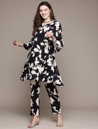 Black Printed Co-ord Set In Linen
