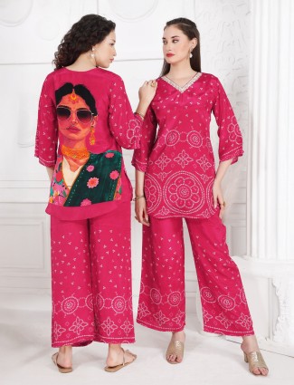 Elegant Pink Silk Co-ord Palazzo Outfit