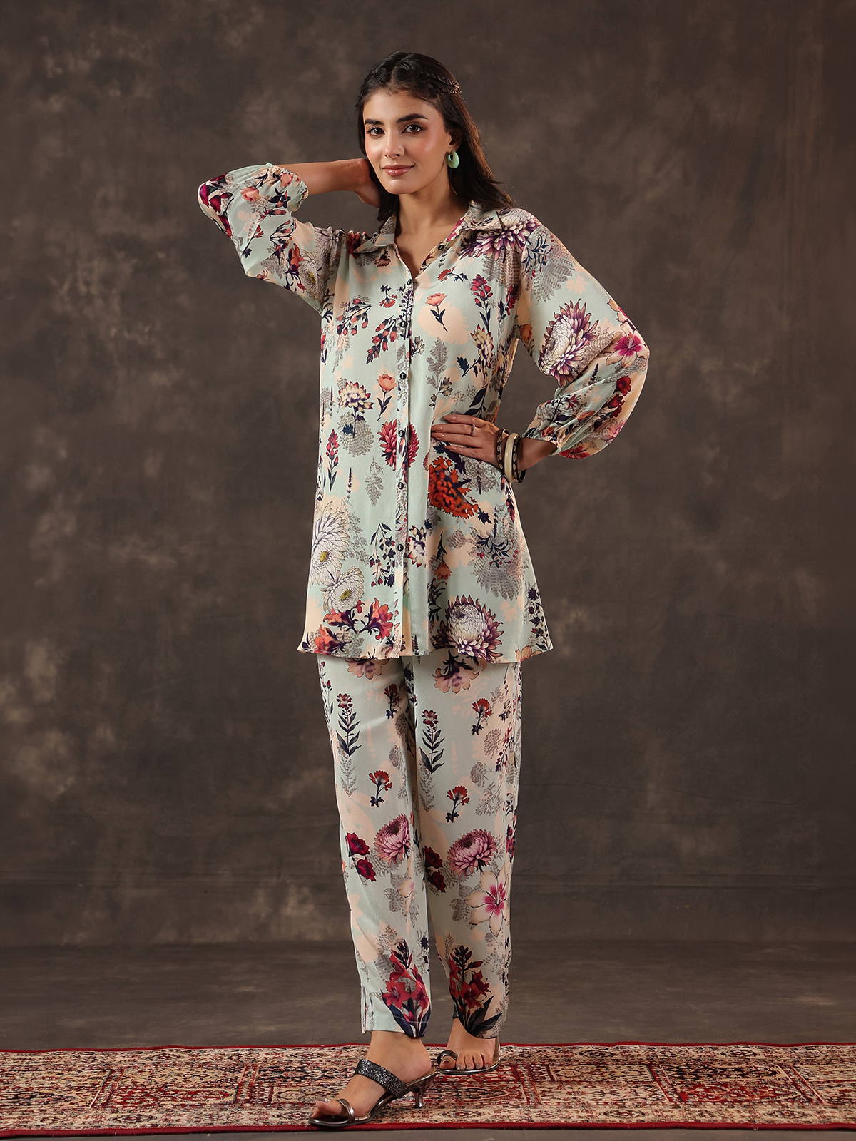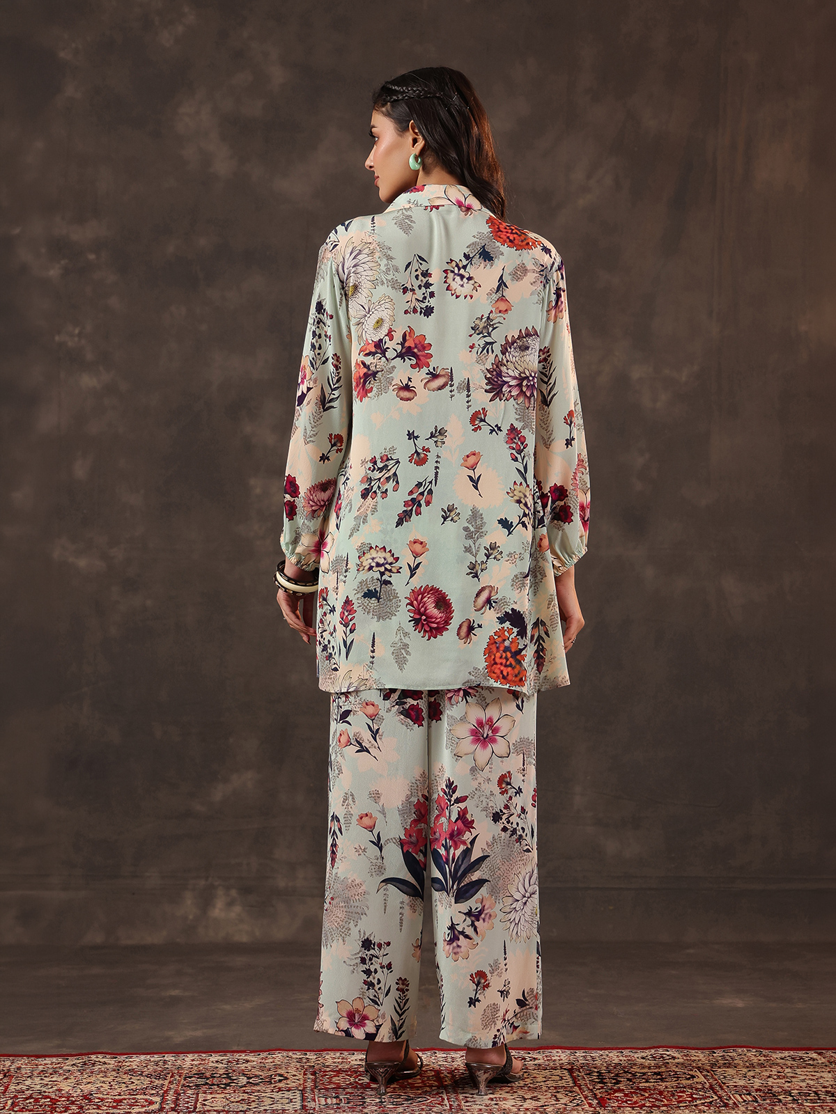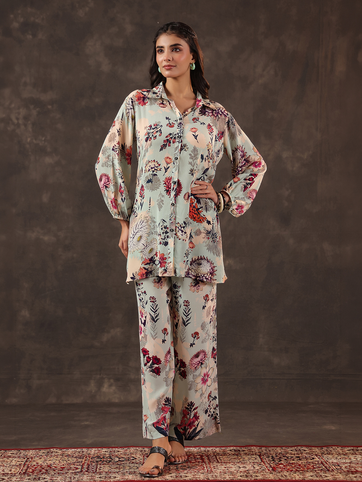 Mint Green Viscose Crepe Printed Women Co Ord Palazzo Set