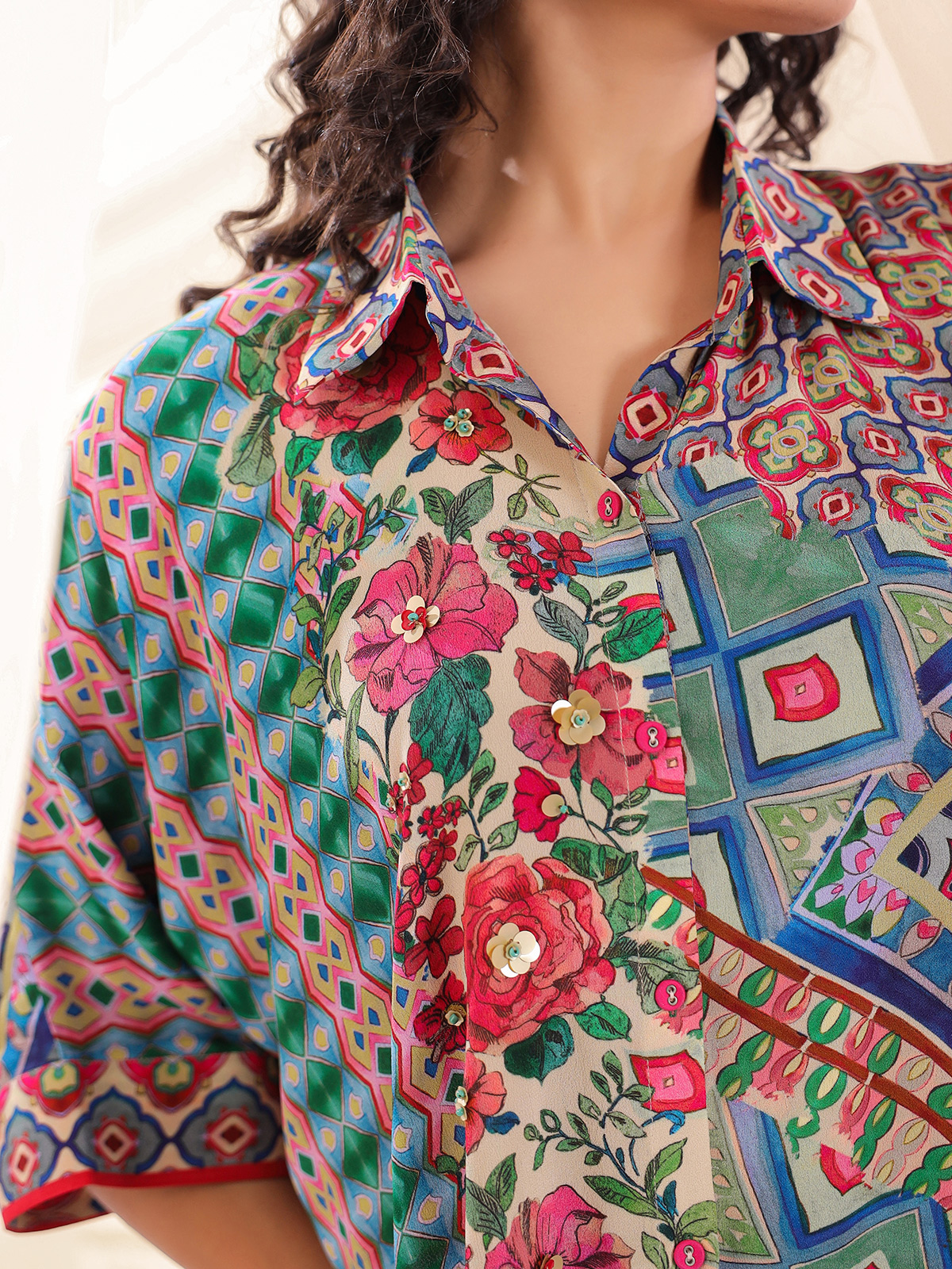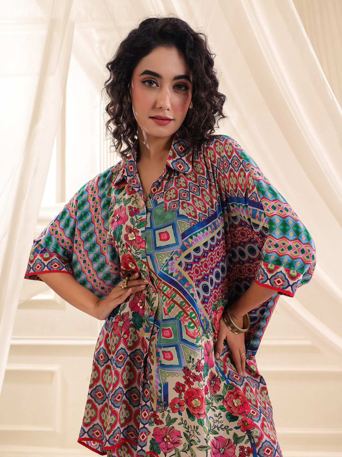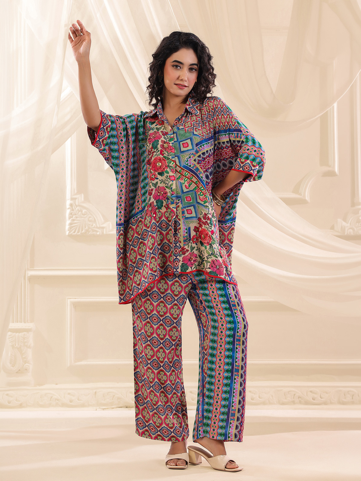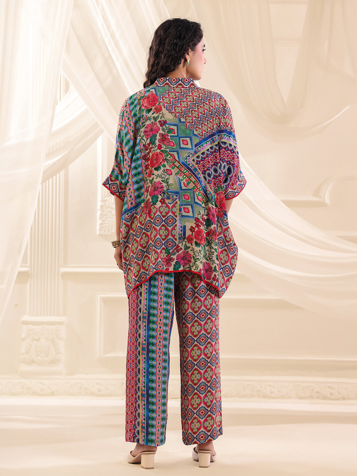 Multicolor Viscose Crepe Printed Festive Co Ord Set