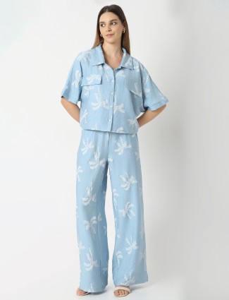 Sky Blue Linen Cotton Printed Co-Ord Set