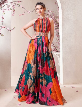 Printed Silk Multicolor Gown In For Women
