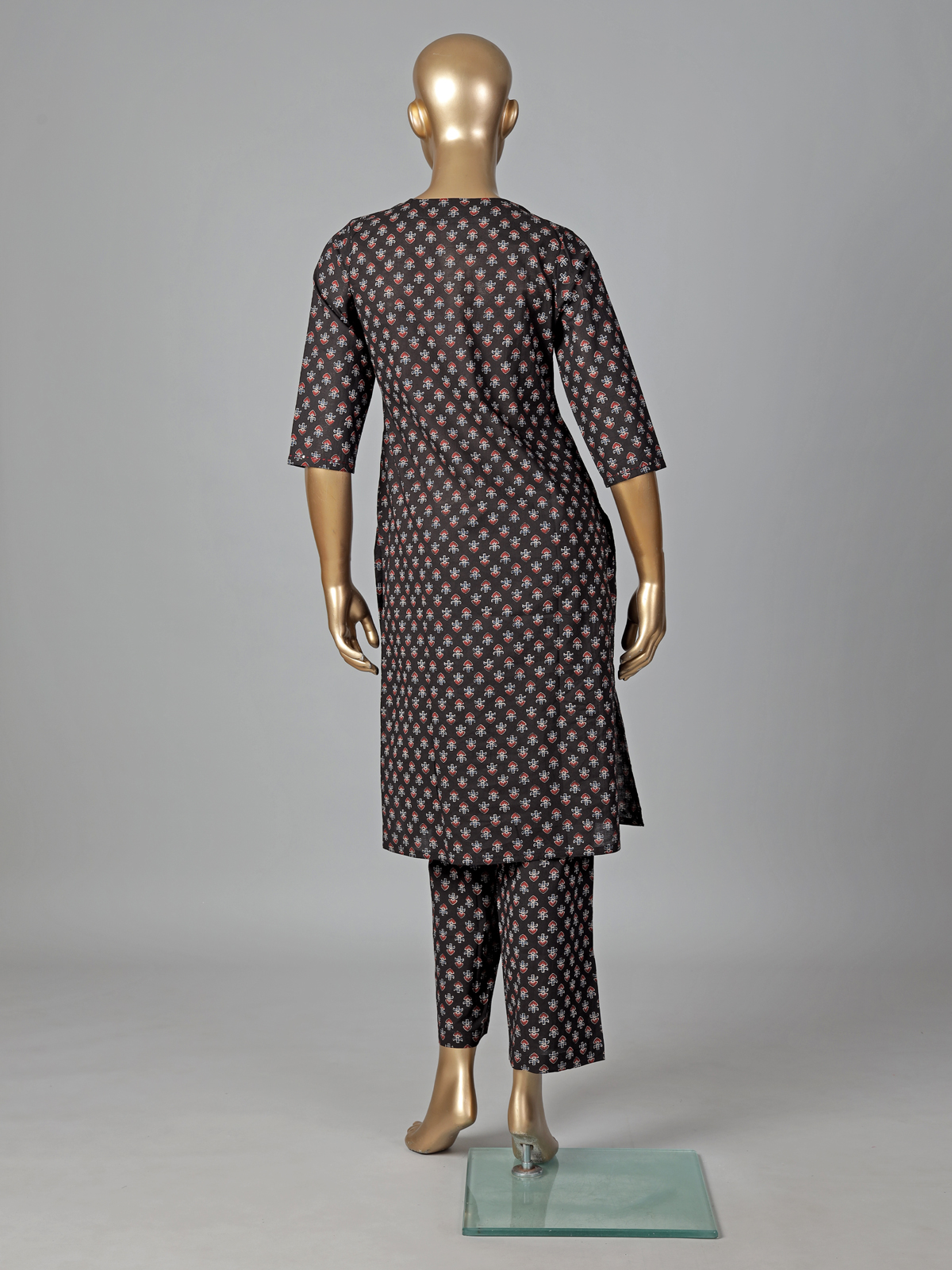 Black Cotton Printed Straight Cut Kurti Set Everyday Wear