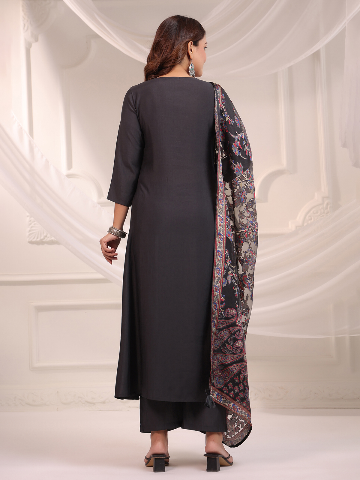 Black Plain Cotton Silk Kurti Set With Printed Dupatta